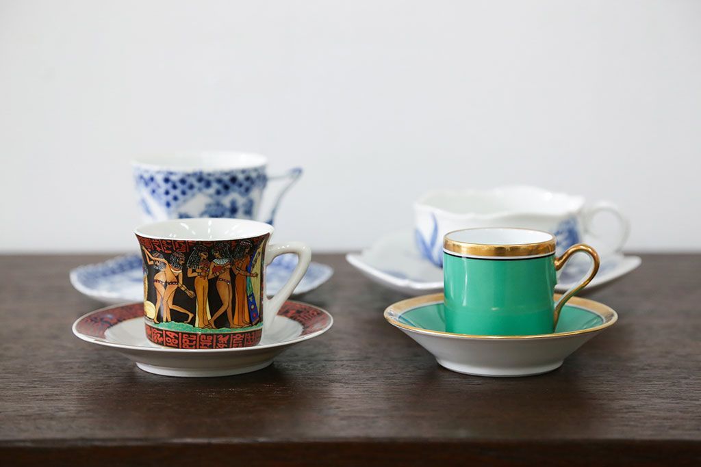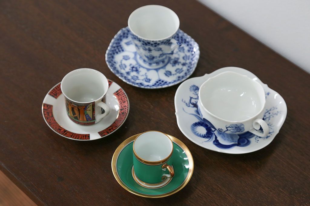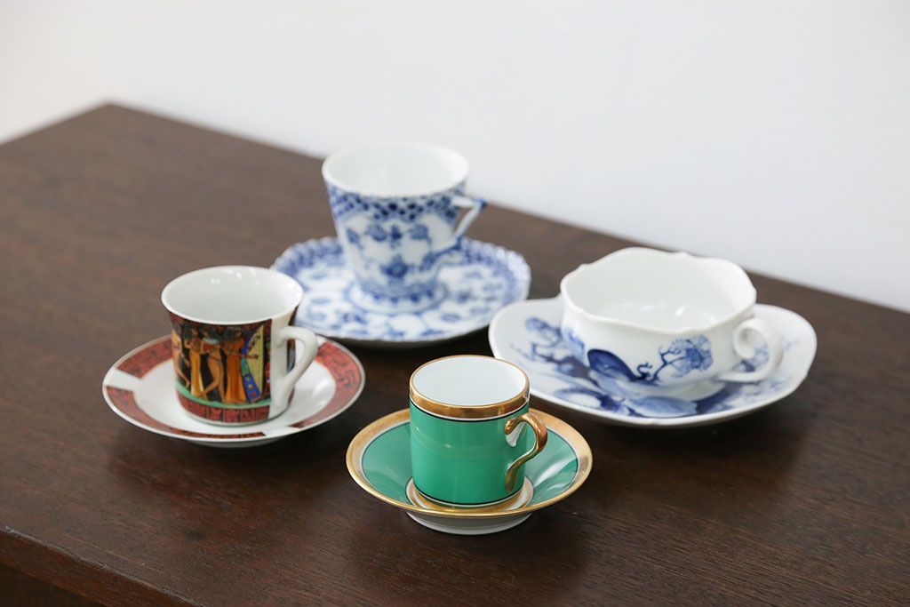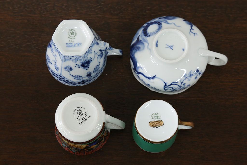 アンティーク雑貨 ロイヤルコペンハーゲン(Royal Copenhagen)・マイセンなどのカップ&ソーサー4種類セット(リモージュ・リチャード・ジノリ)