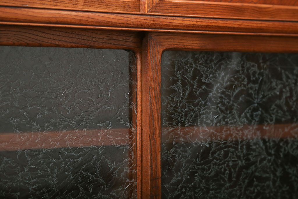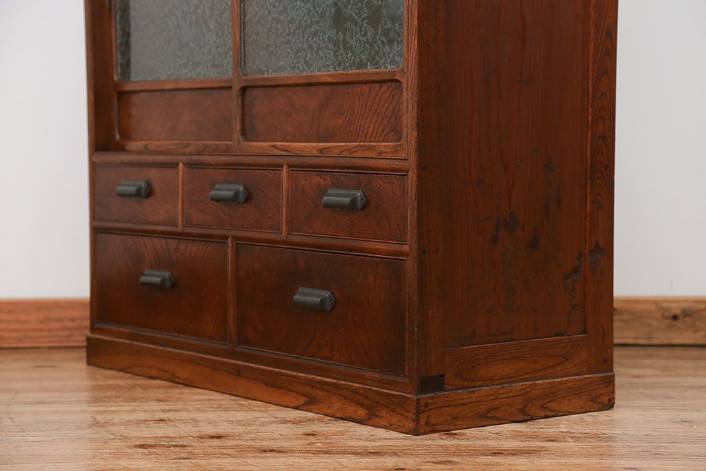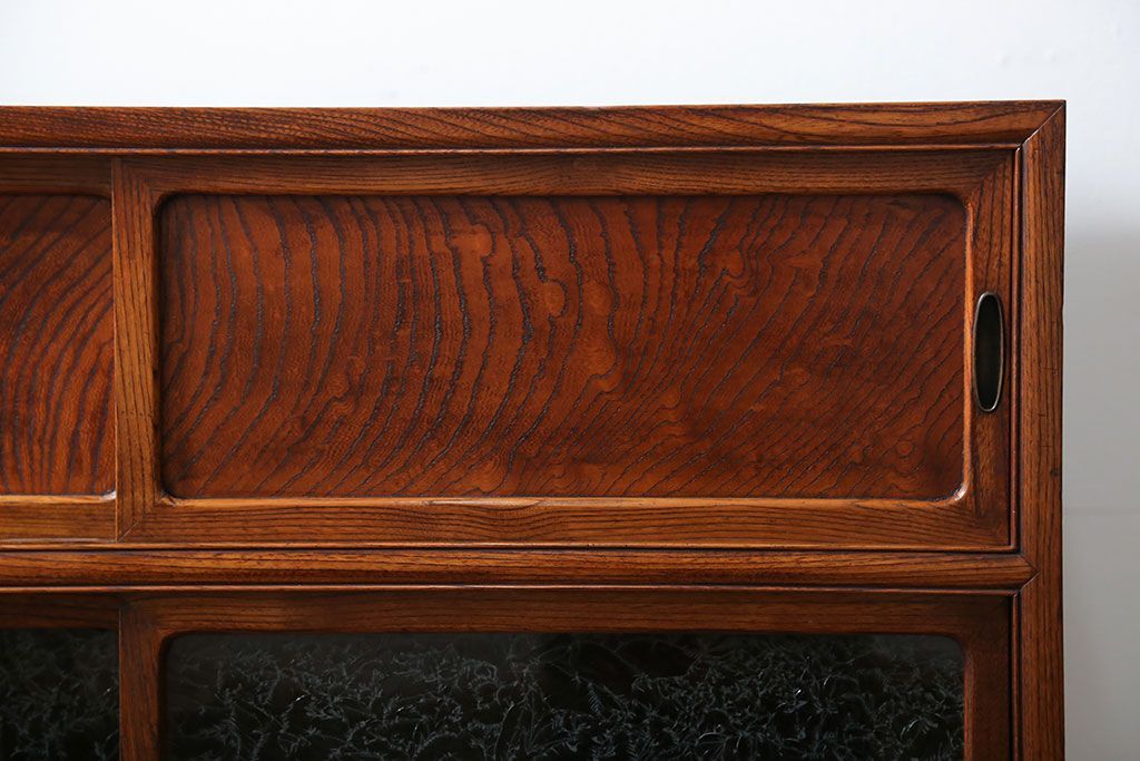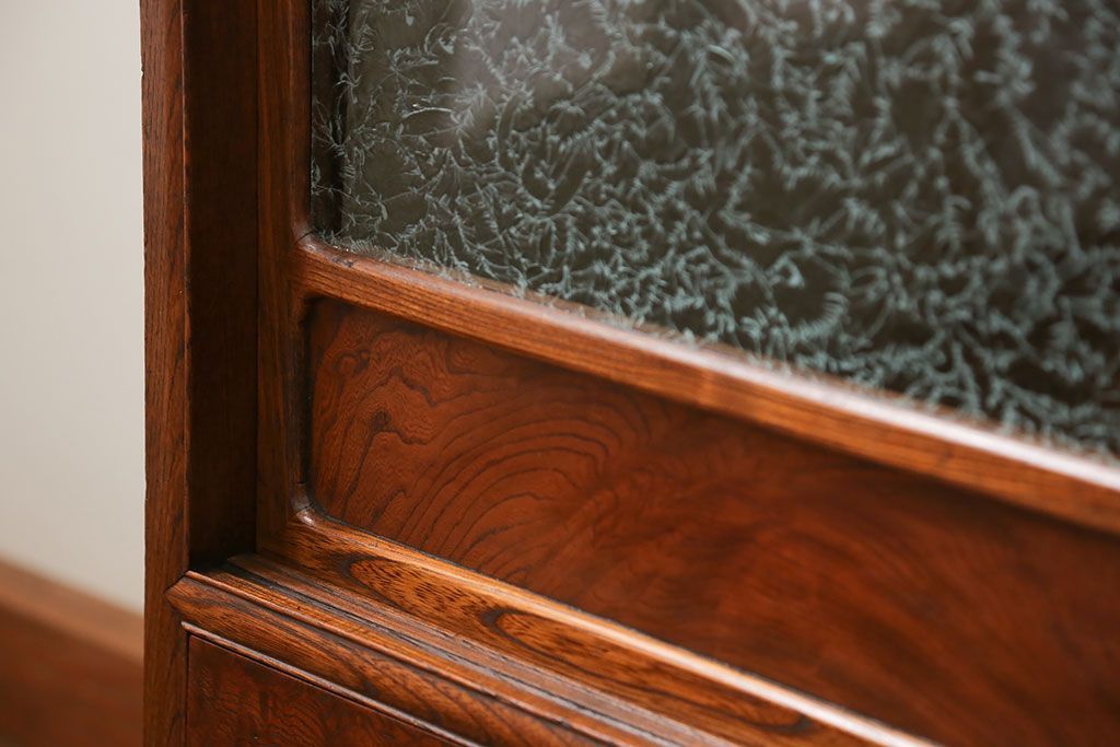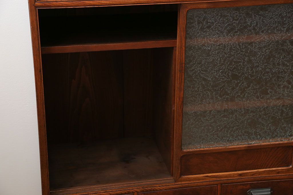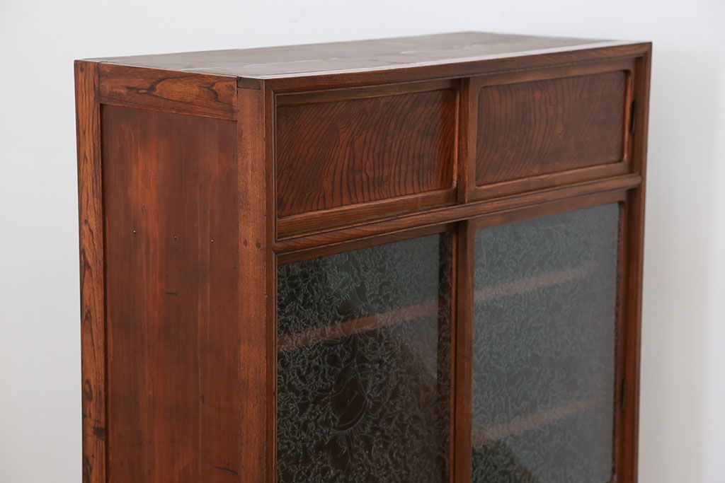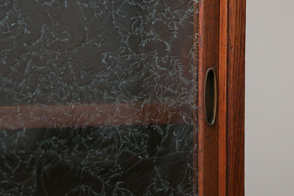 アンティーク家具 古民具・骨董 前面欅材の結霜ガラス茶箪笥(収納棚)