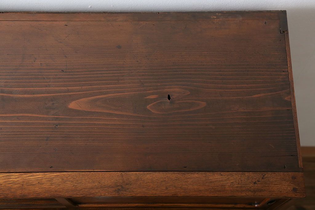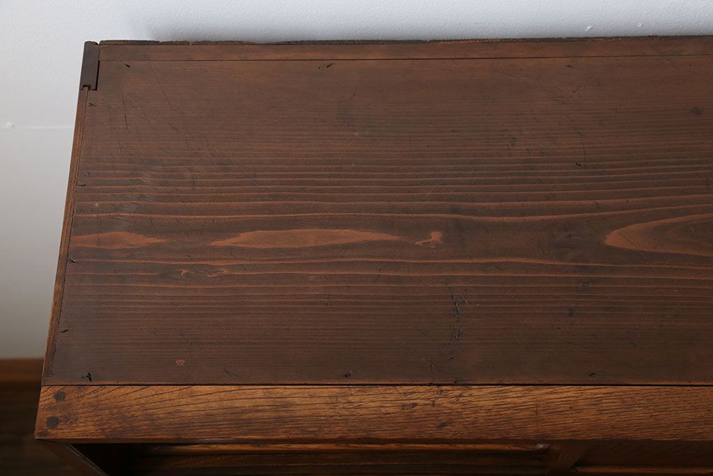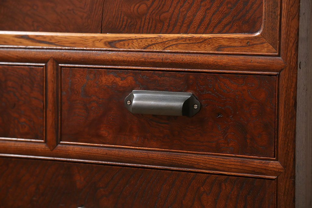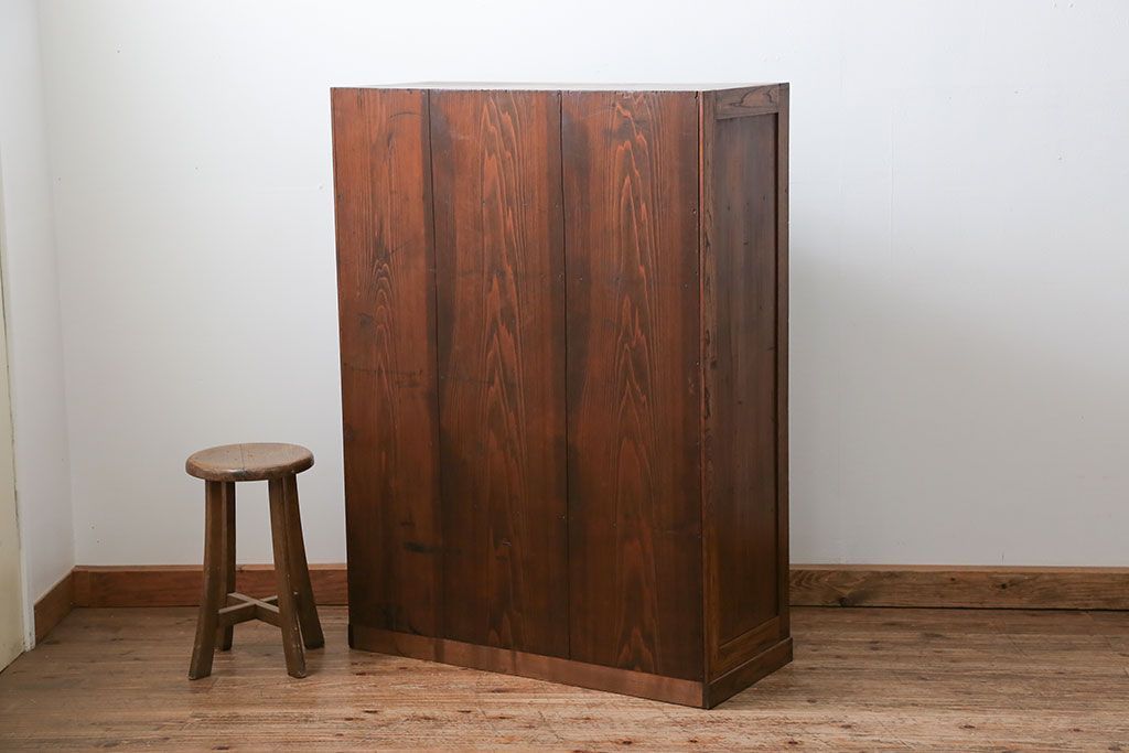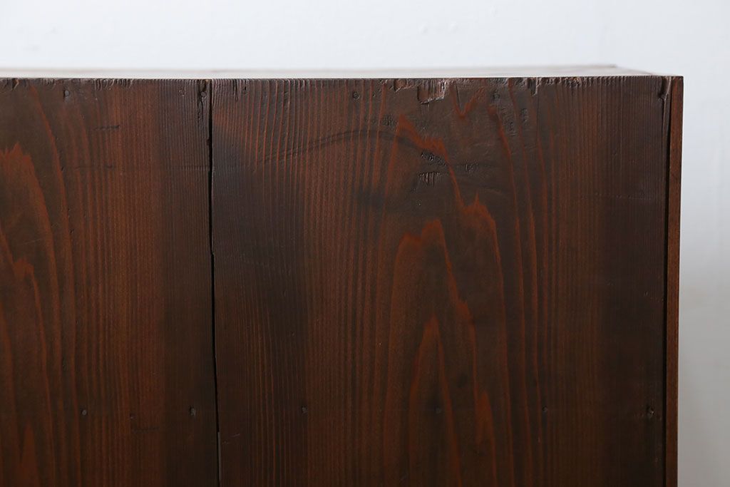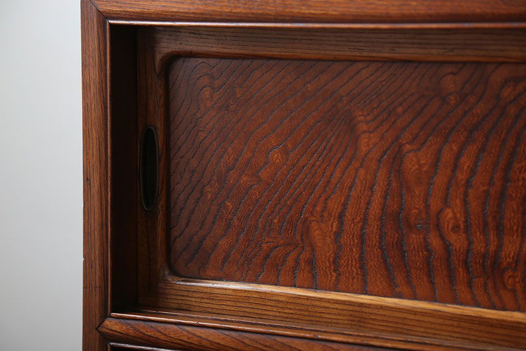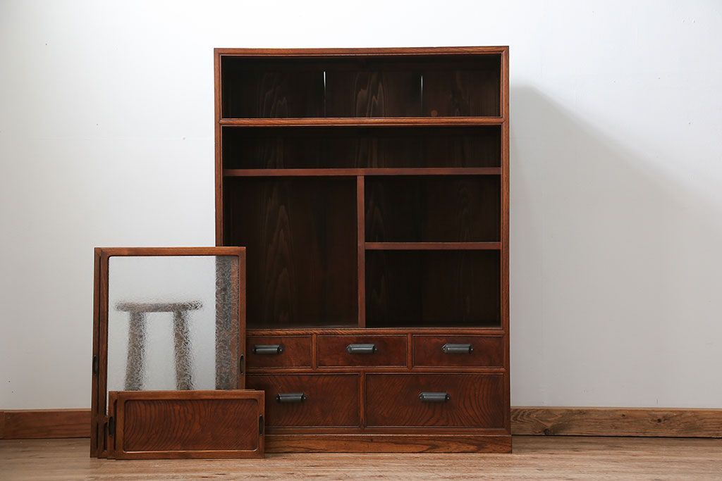 アンティーク家具 古民具・骨董 前面欅材の結霜ガラス茶箪笥(収納棚)
