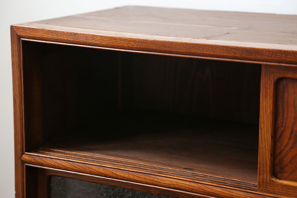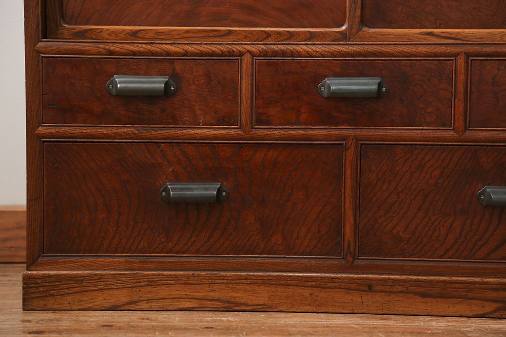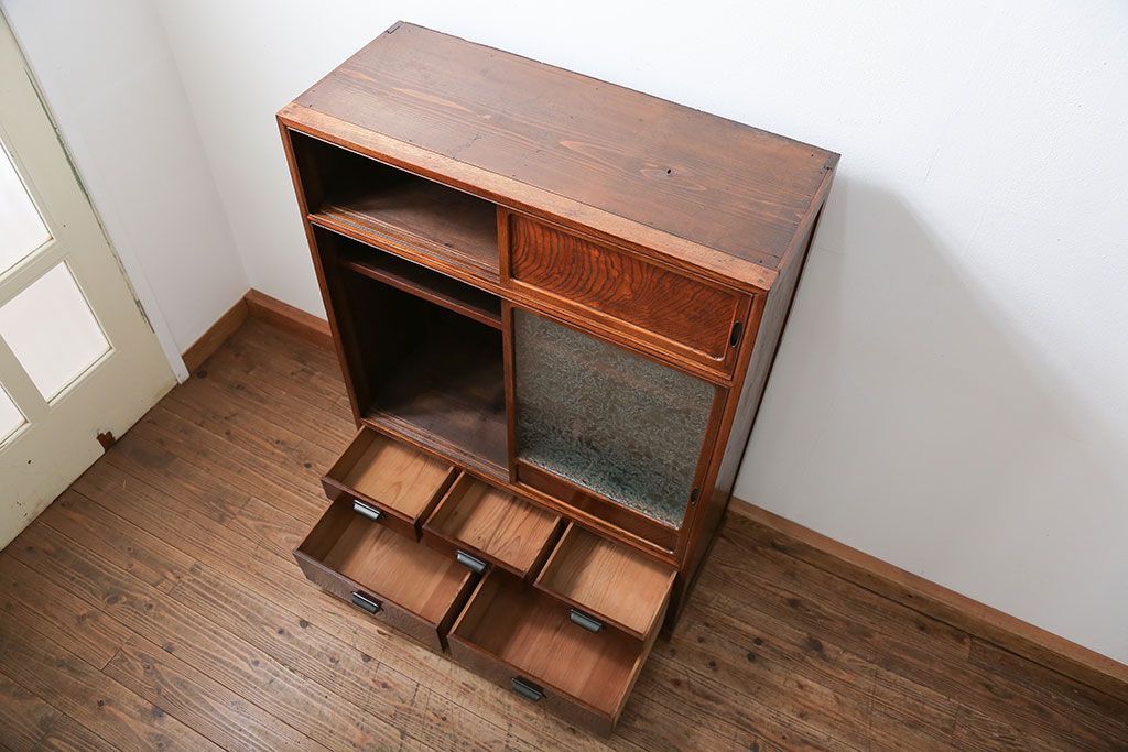 古民具・骨董 前面欅材の結霜ガラス茶箪笥(収納棚)です。