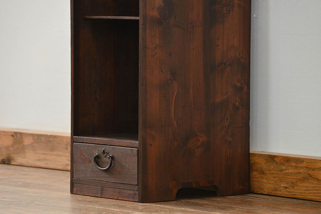 ラフジュ工房> オープンラック・シェルフ> ディスプレイラック > アンティーク家具 古民具・骨董 古い木の引き出し付き書棚(1)(本棚)