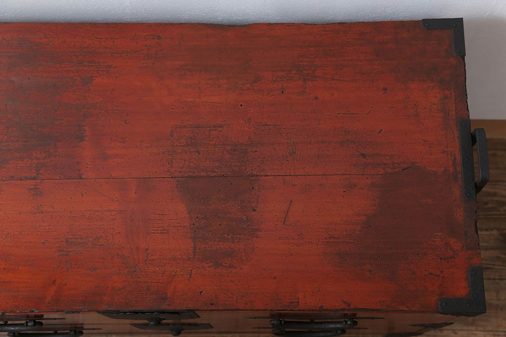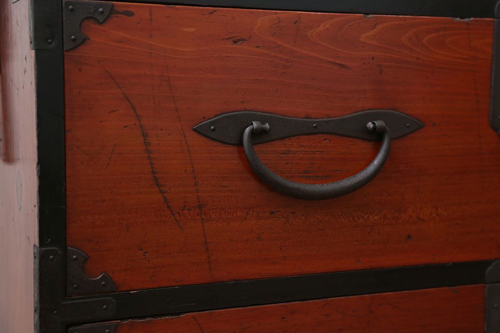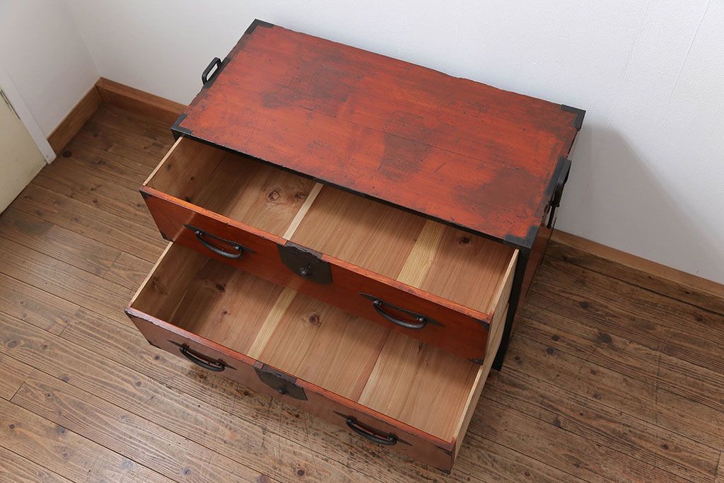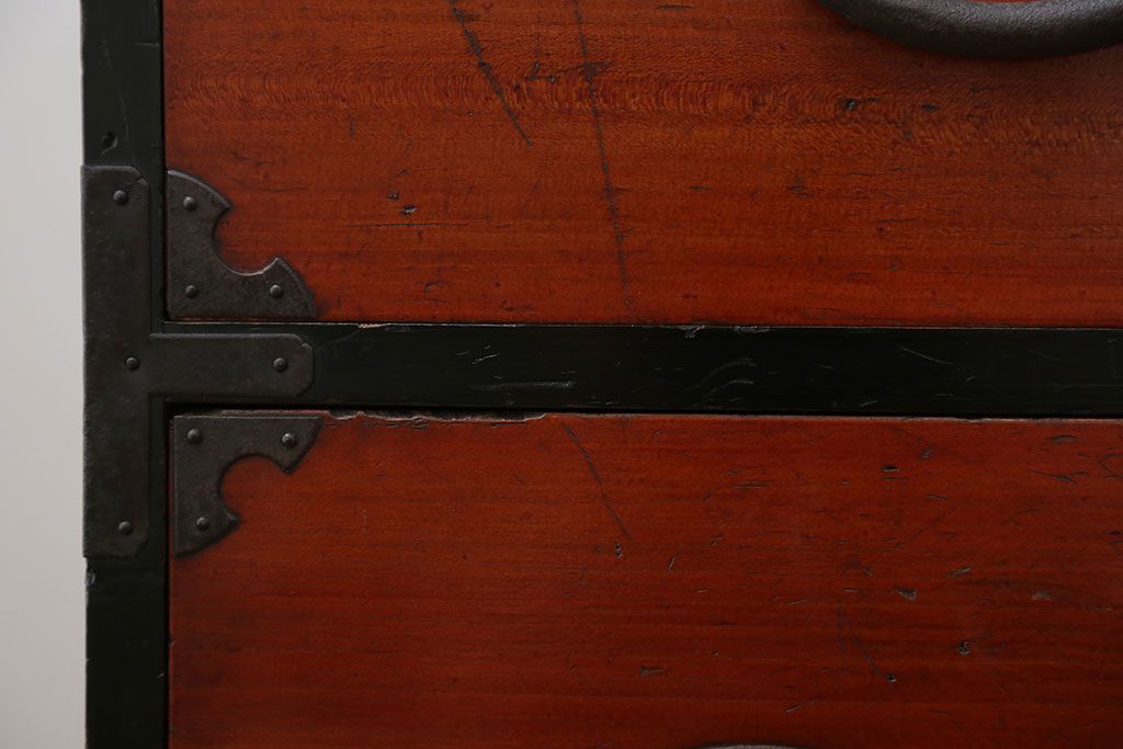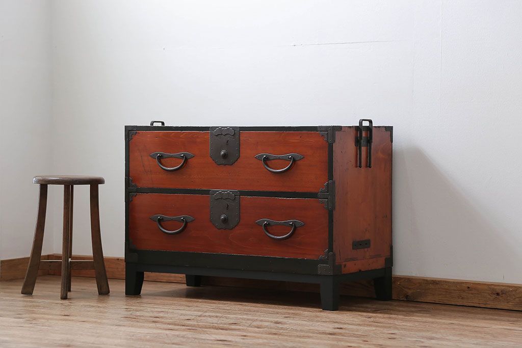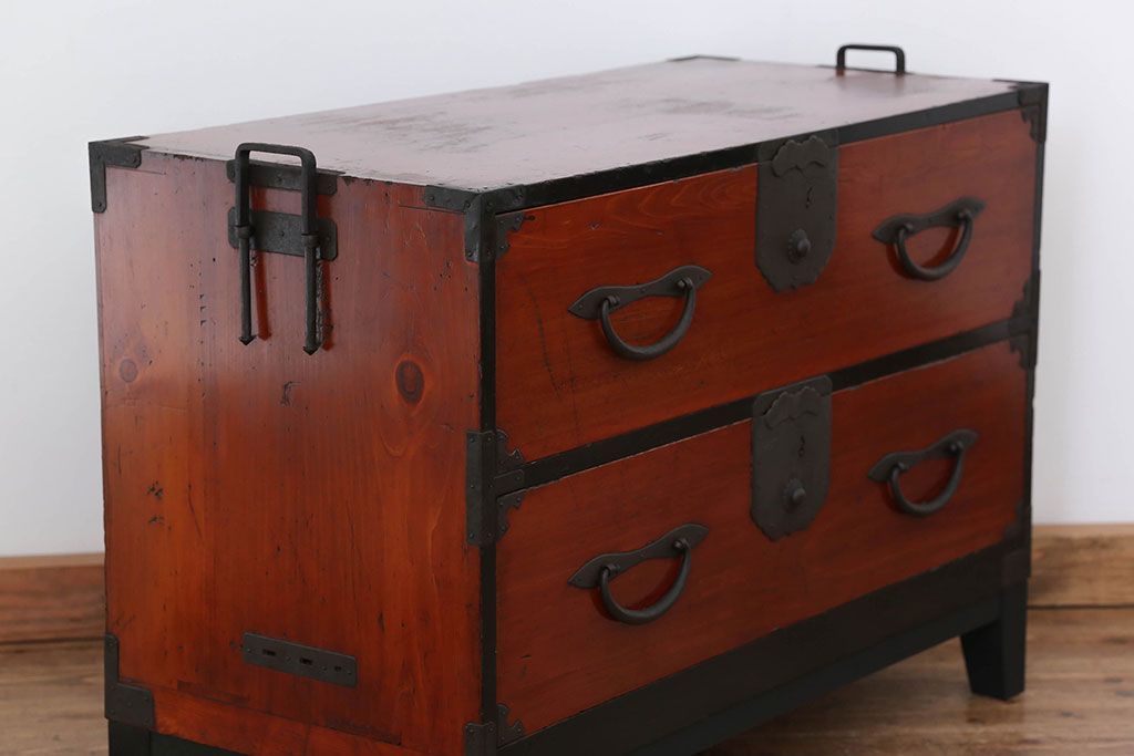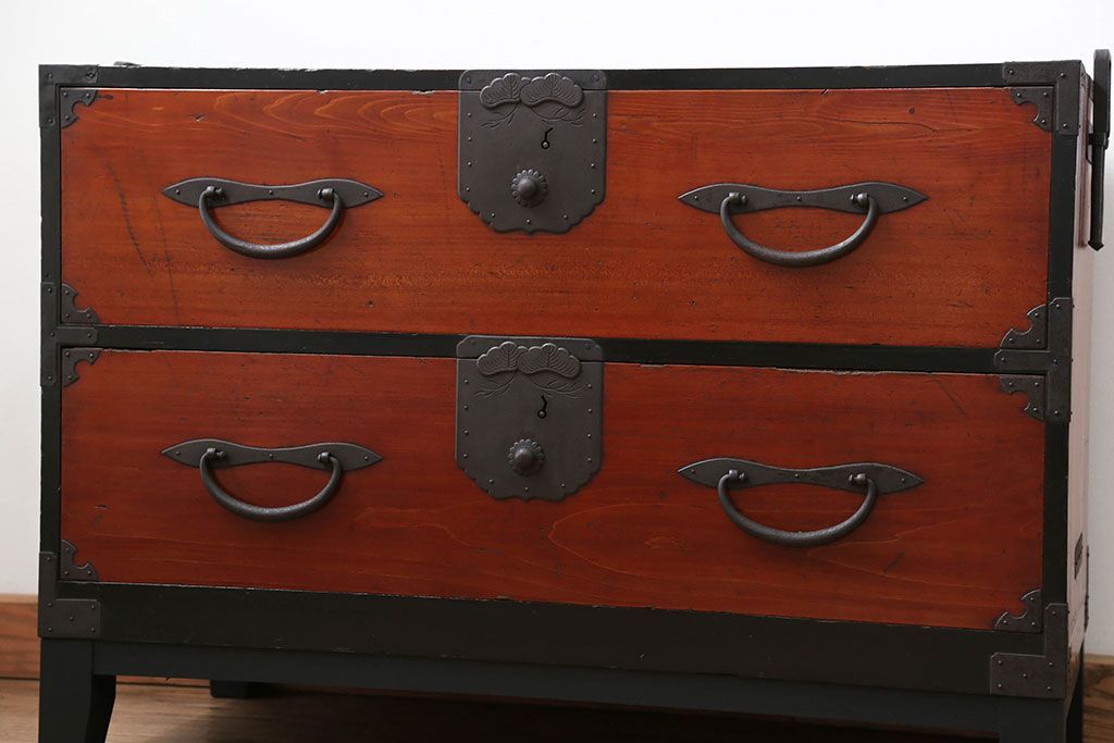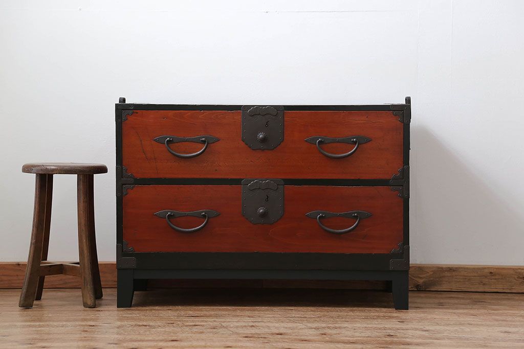 和箪笥> 衣装箪笥 > アンティーク家具 古民具・骨董 脚付き二本松箪笥ローチェスト(1)(時代箪笥ローボード)
