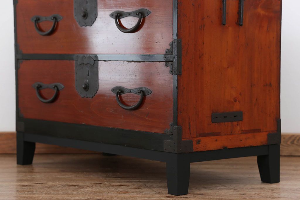 古民具・骨董 脚付き二本松箪笥ローチェスト(1)(時代箪笥ローボード)です。