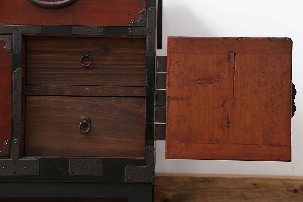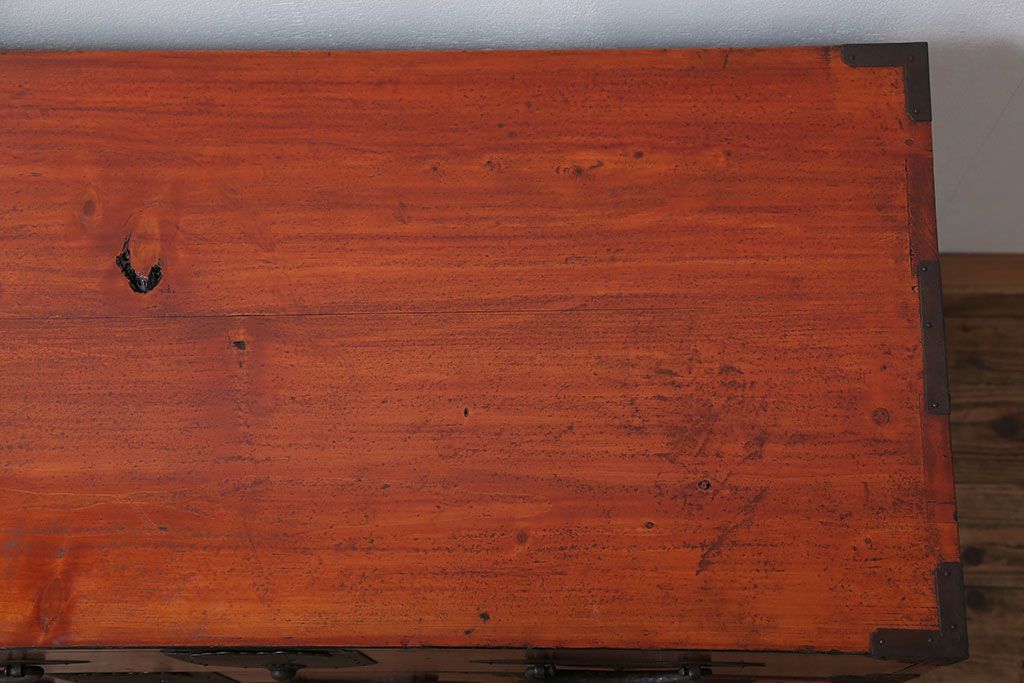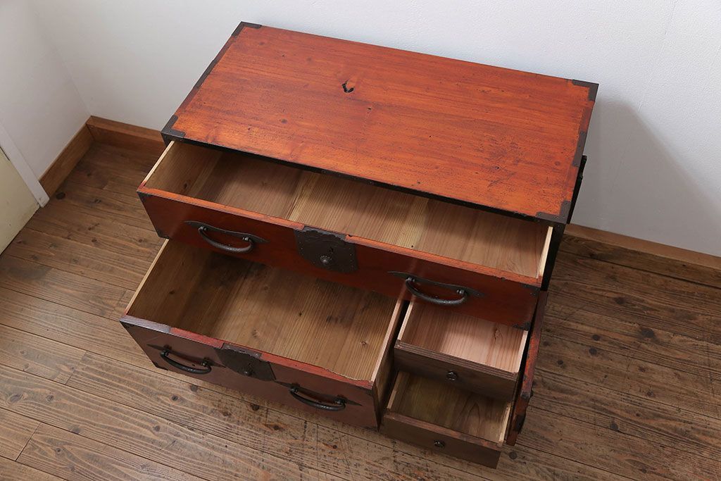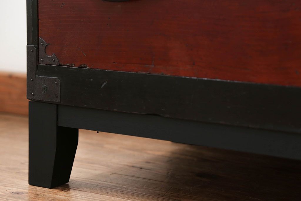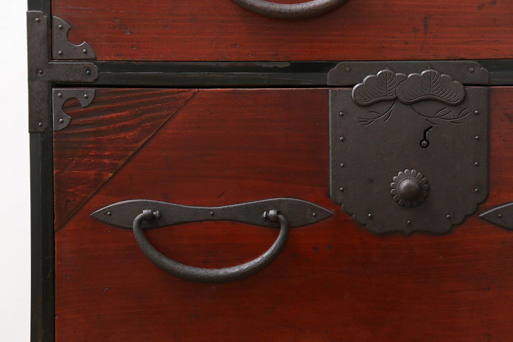 和箪笥> 衣装箪笥 > アンティーク家具 古民具・骨董 脚付き二本松箪笥ローチェスト(2)(時代箪笥ローボード)