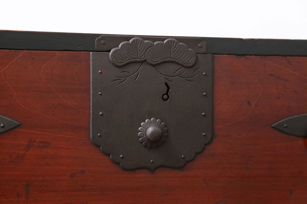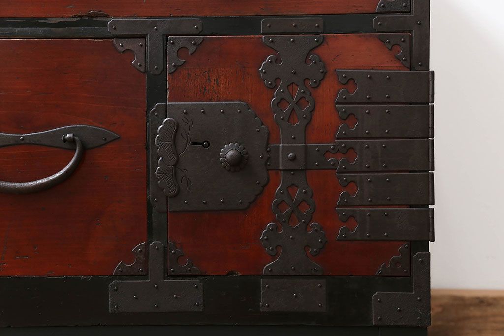 骨董・美術品 > アンティーク家具 古民具・骨董 脚付き二本松箪笥ローチェスト(2)(時代箪笥ローボード)