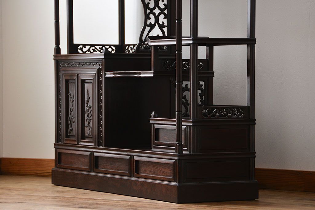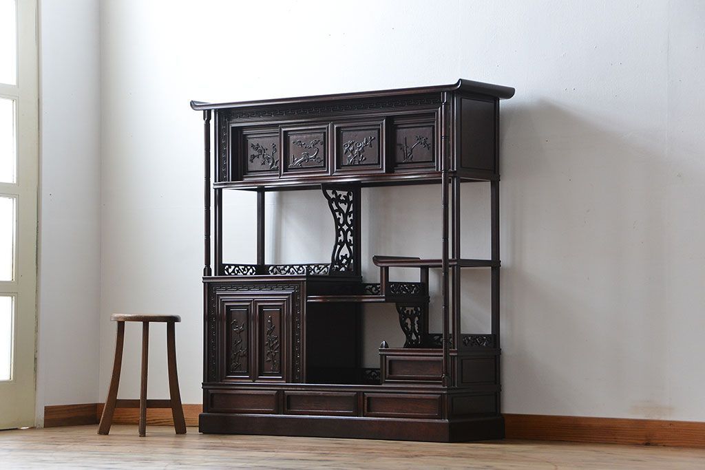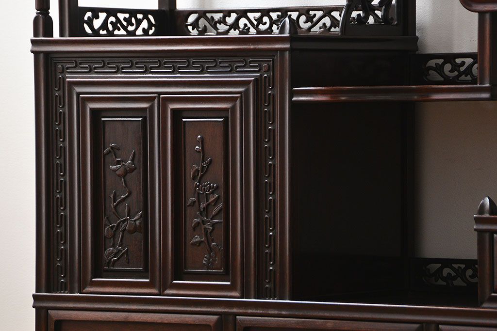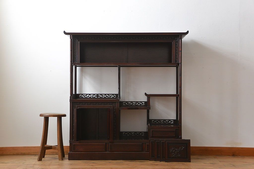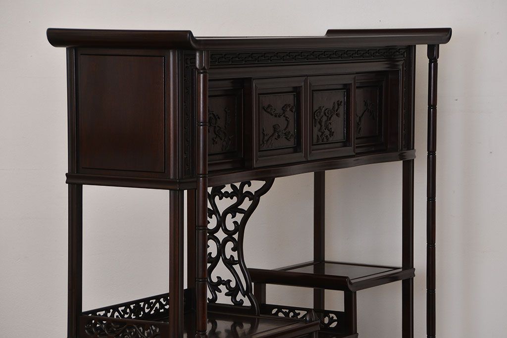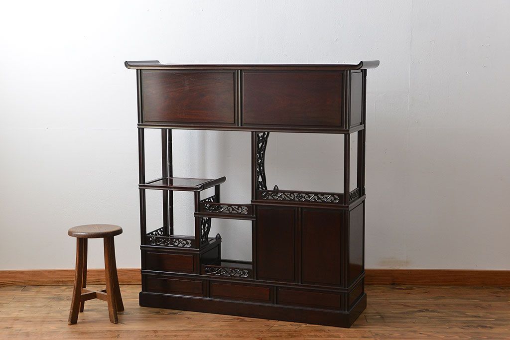 アンティーク家具 1970年頃 唐木製の高級飾り棚(茶棚、茶箪笥)