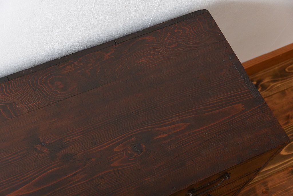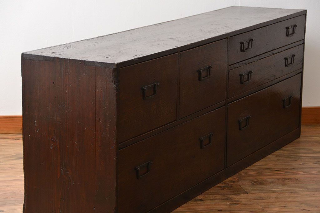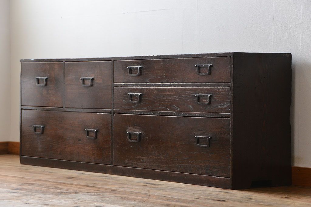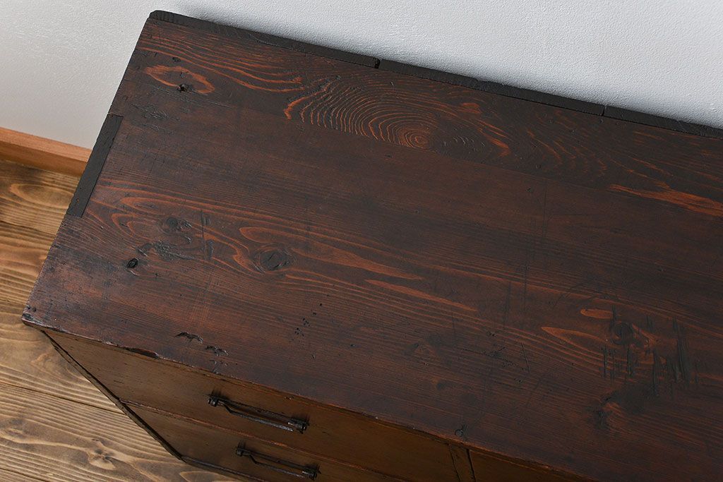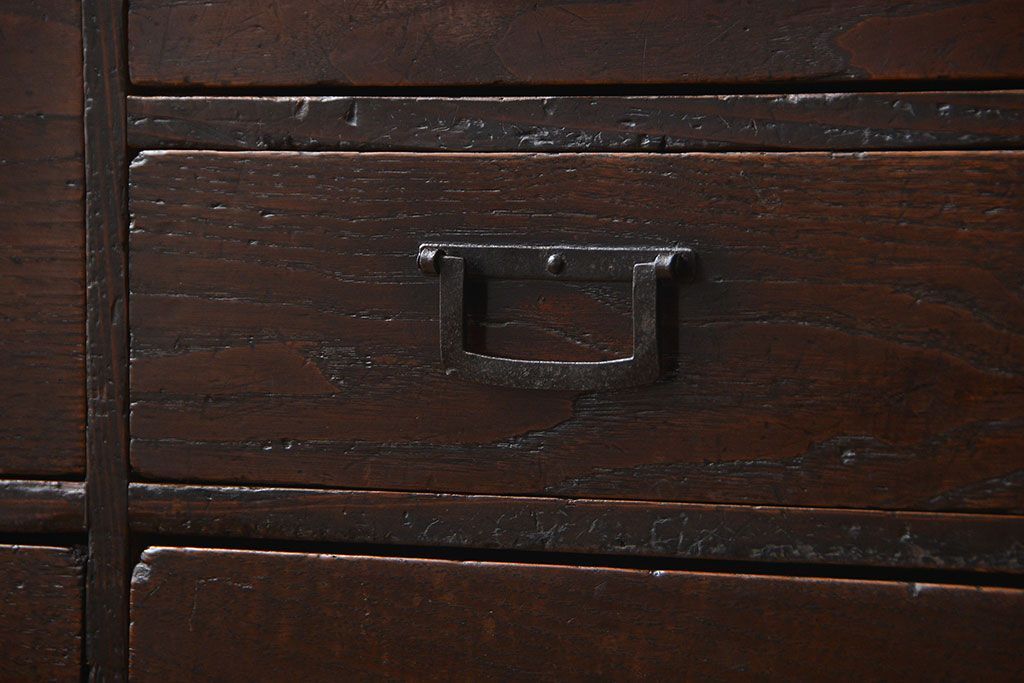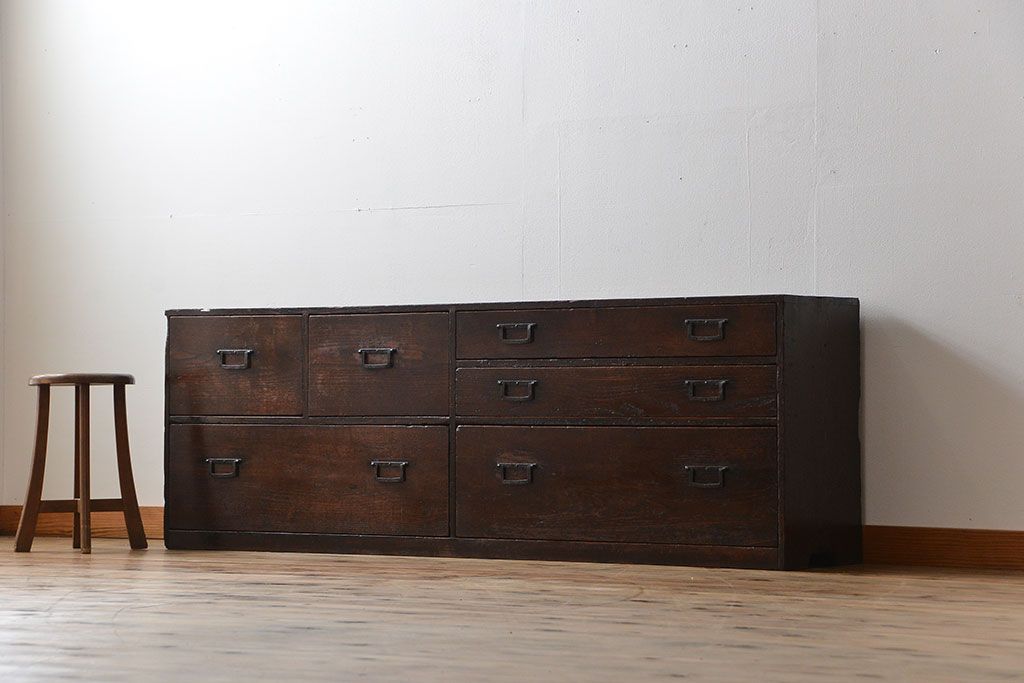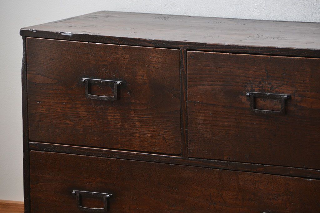 アンティーク家具 古民具・骨董 味わい深い前面栗材ローチェスト(時代箪笥、テレビボード)