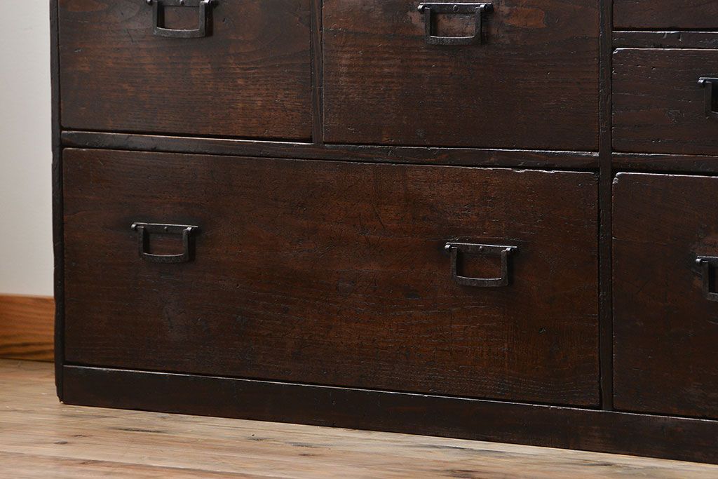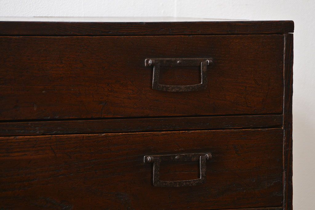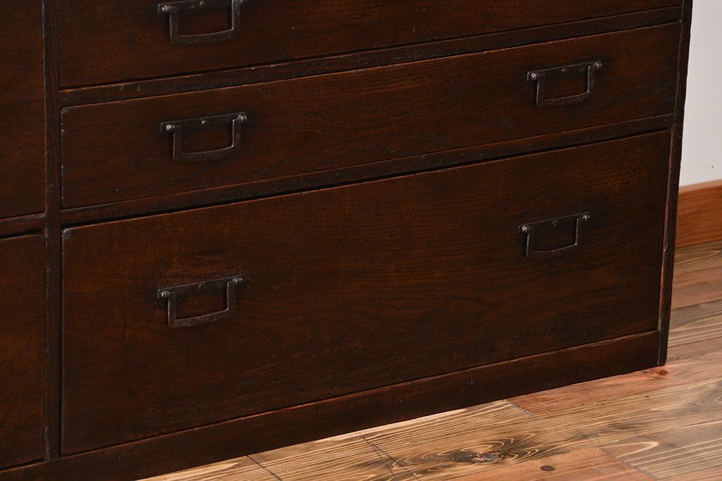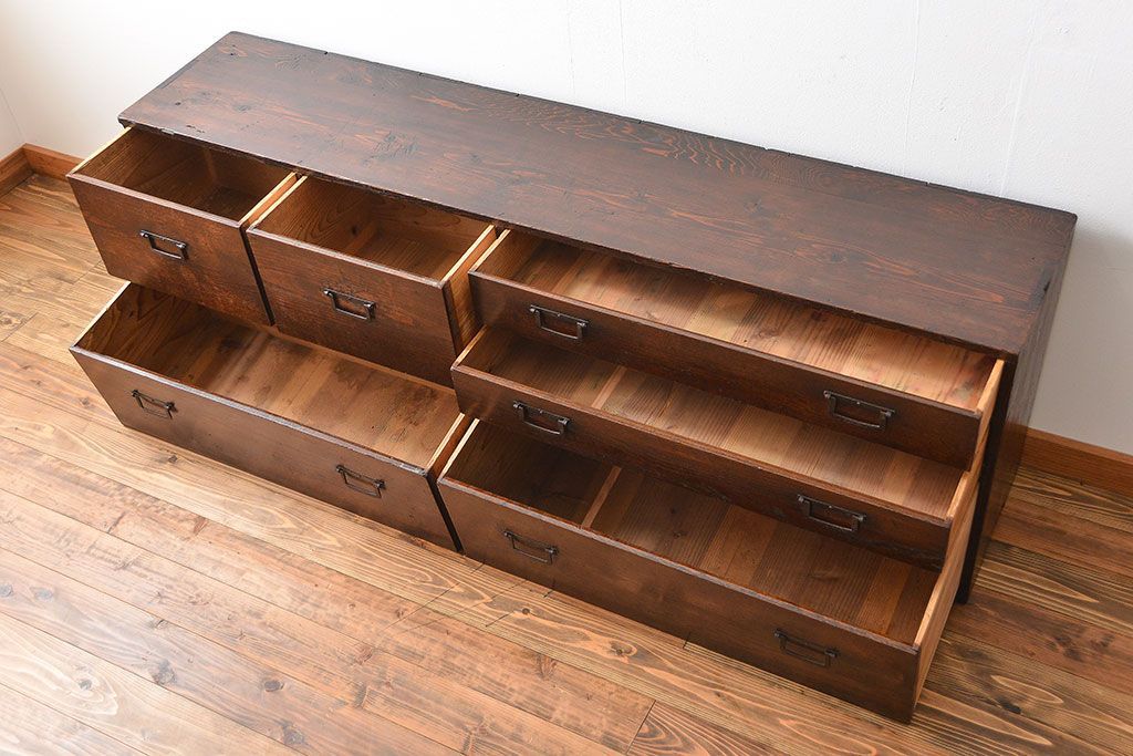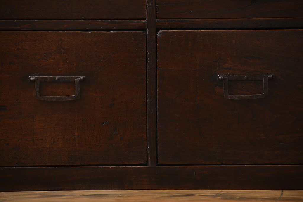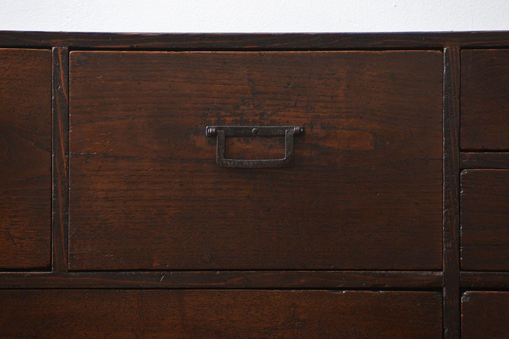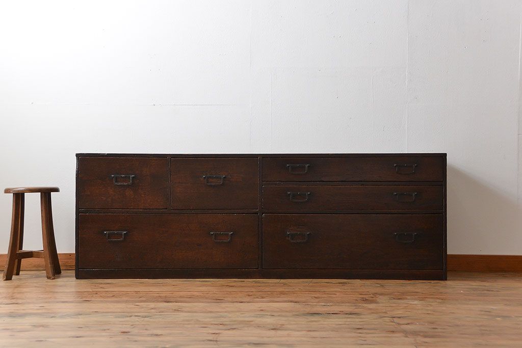 アンティーク家具 古民具・骨董 味わい深い前面栗材ローチェスト(時代箪笥、テレビボード)