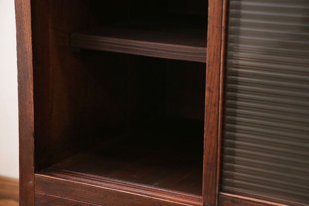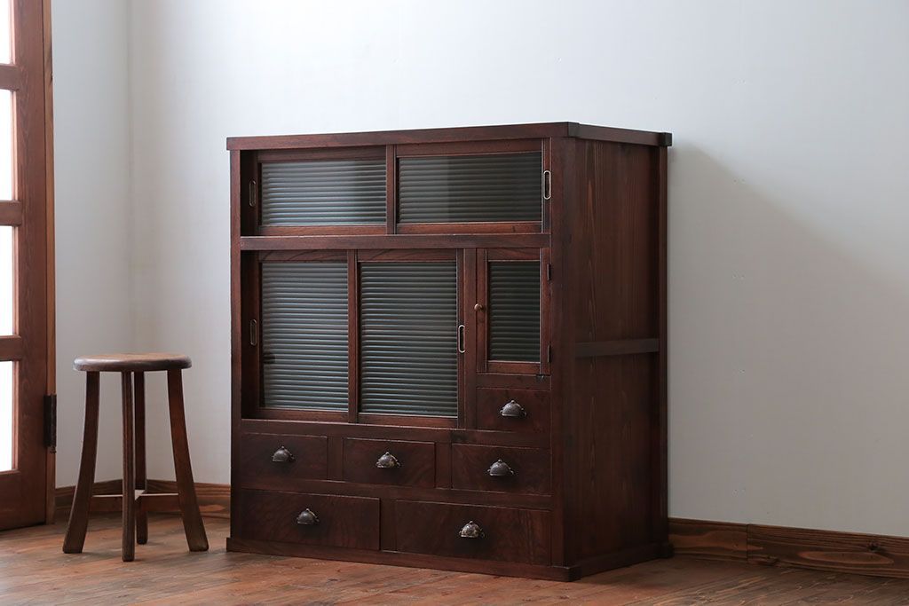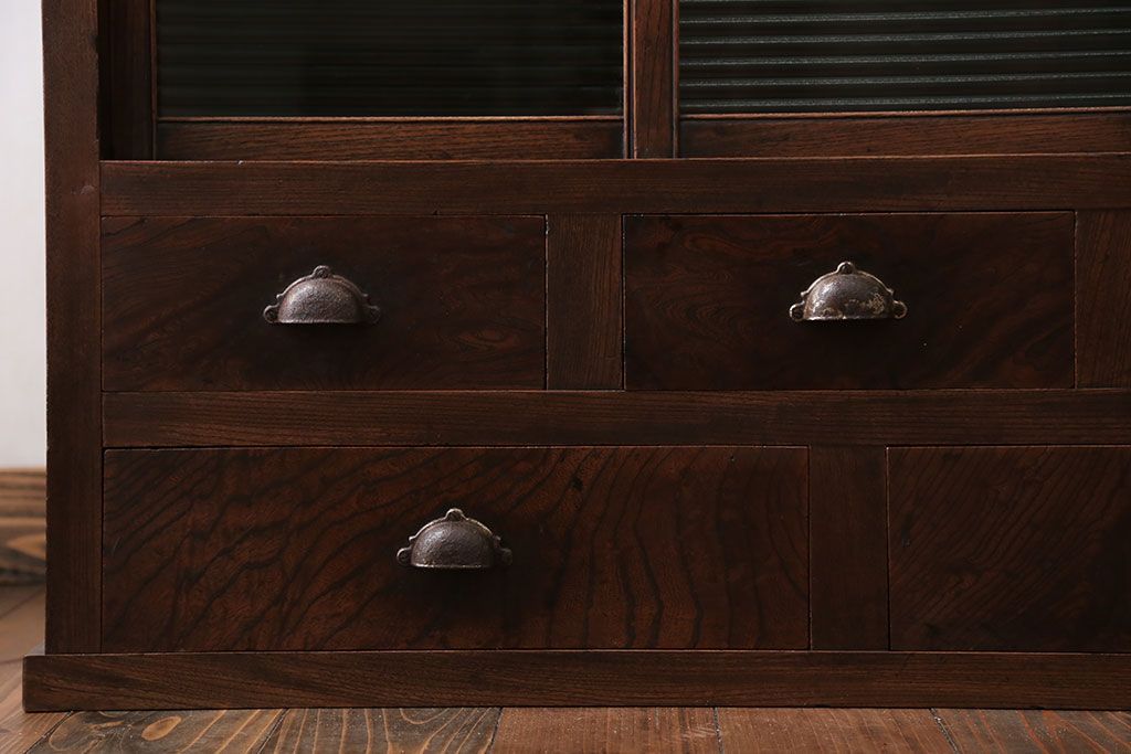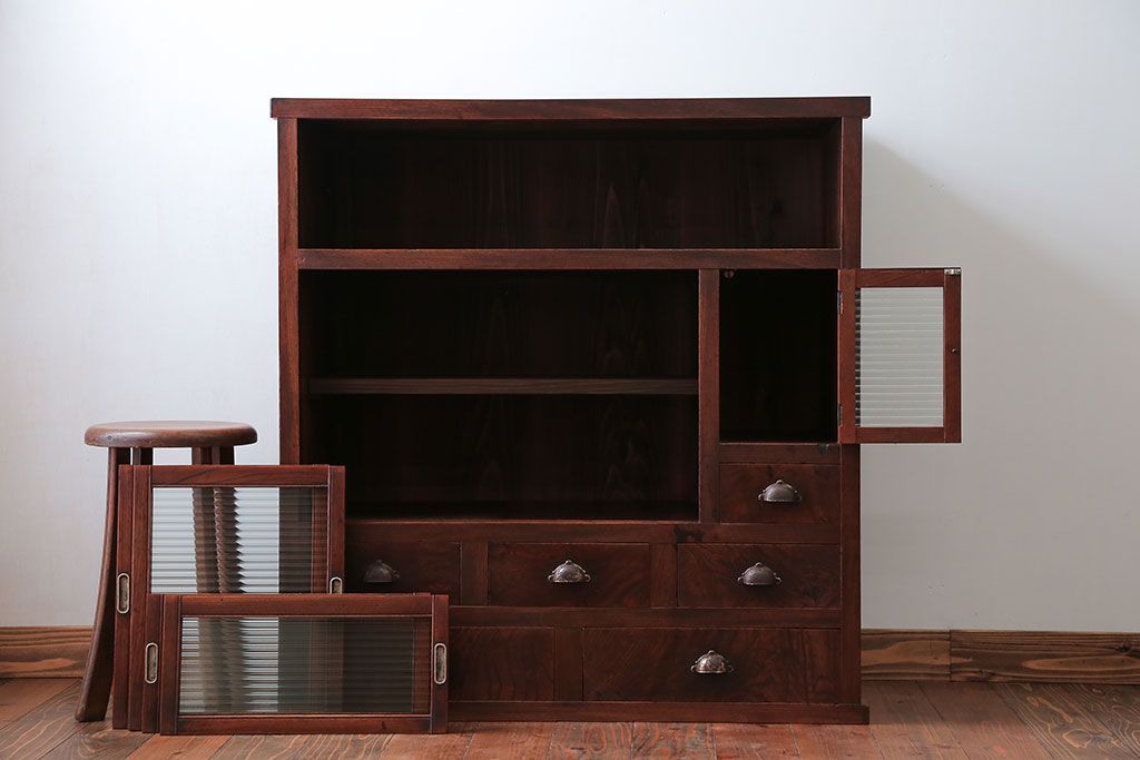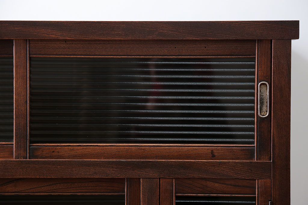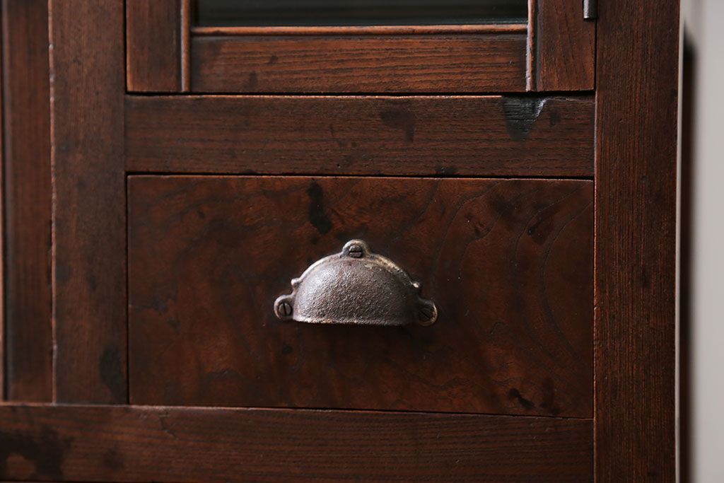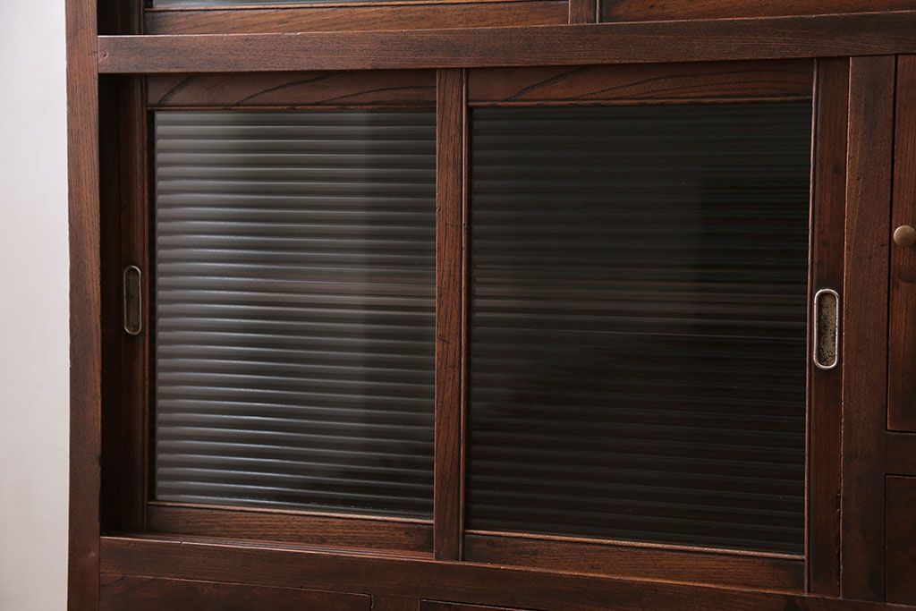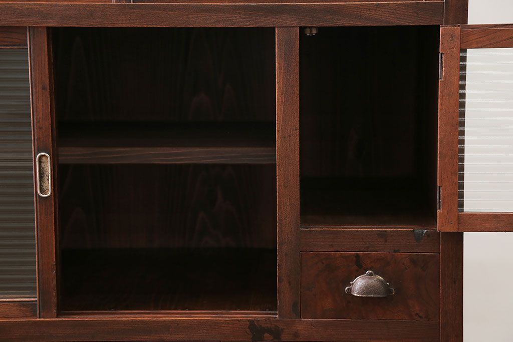アンティーク モールガラス入りの小振りな食器棚(収納棚、茶箪笥)です。