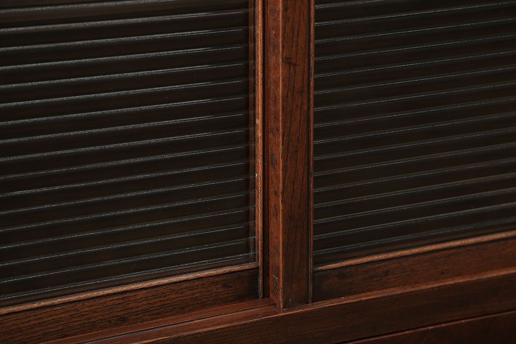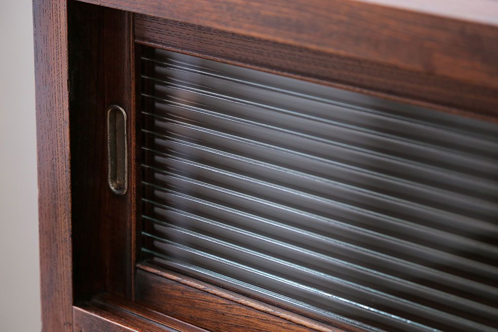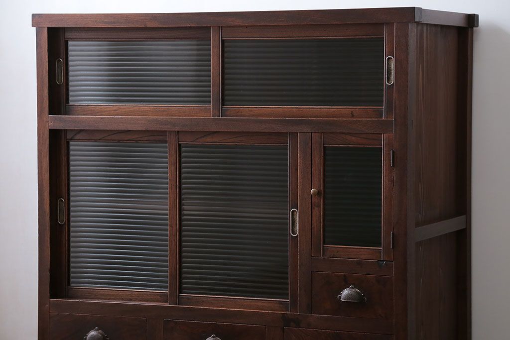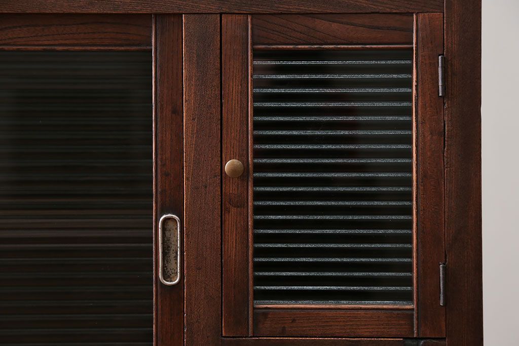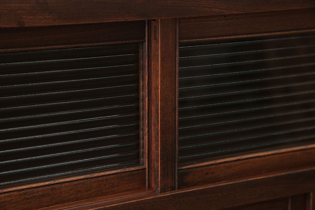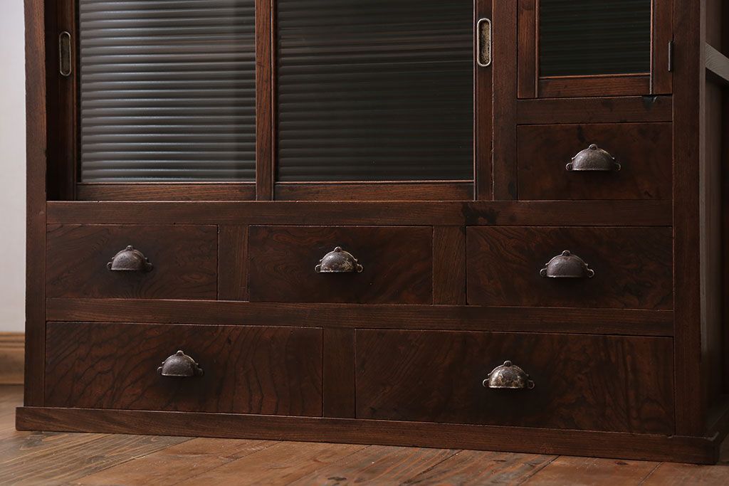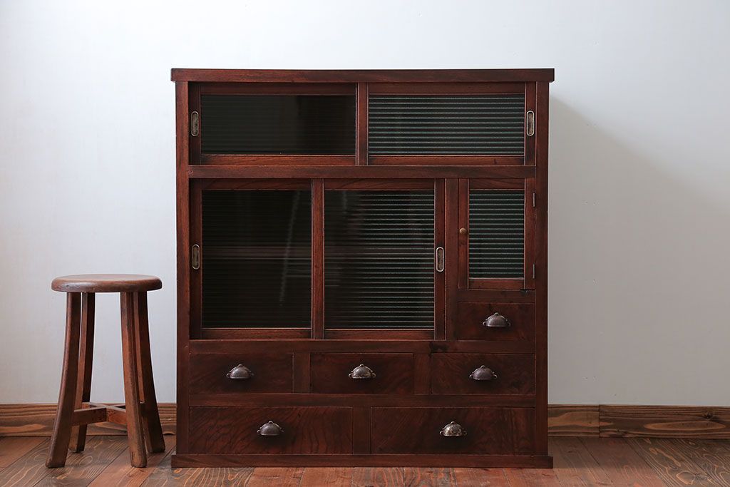 アンティーク モールガラス入りの小振りな食器棚(収納棚、茶箪笥)です。