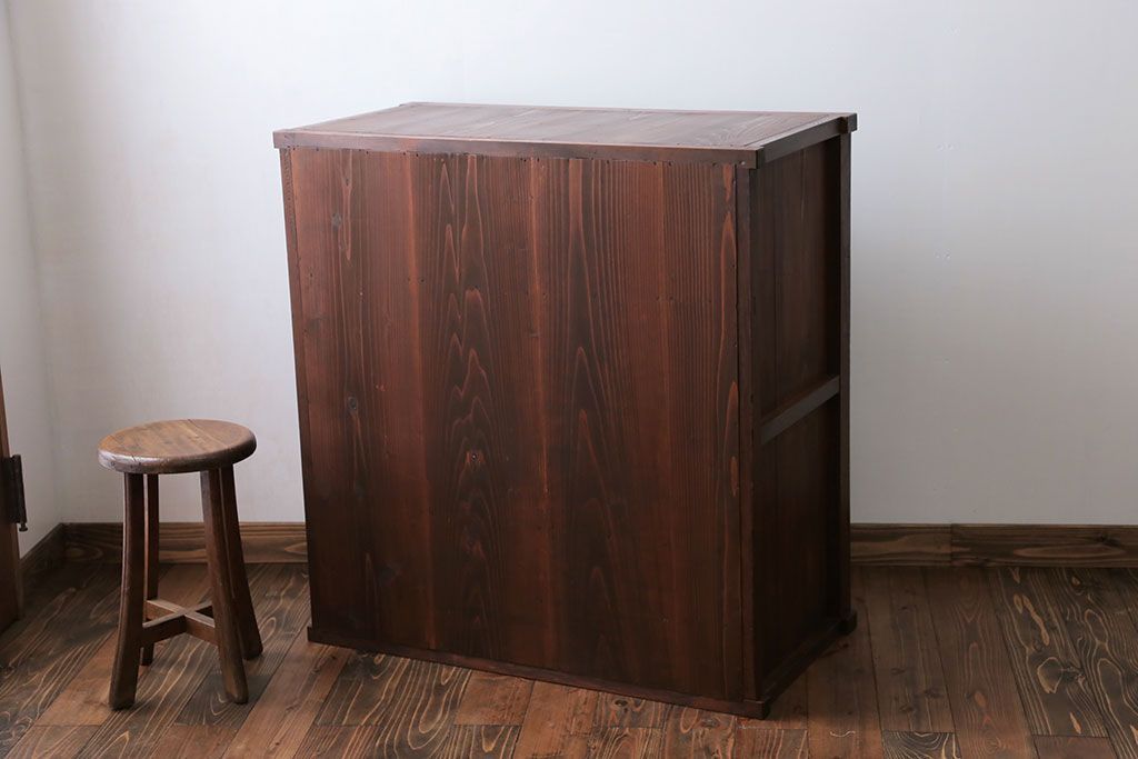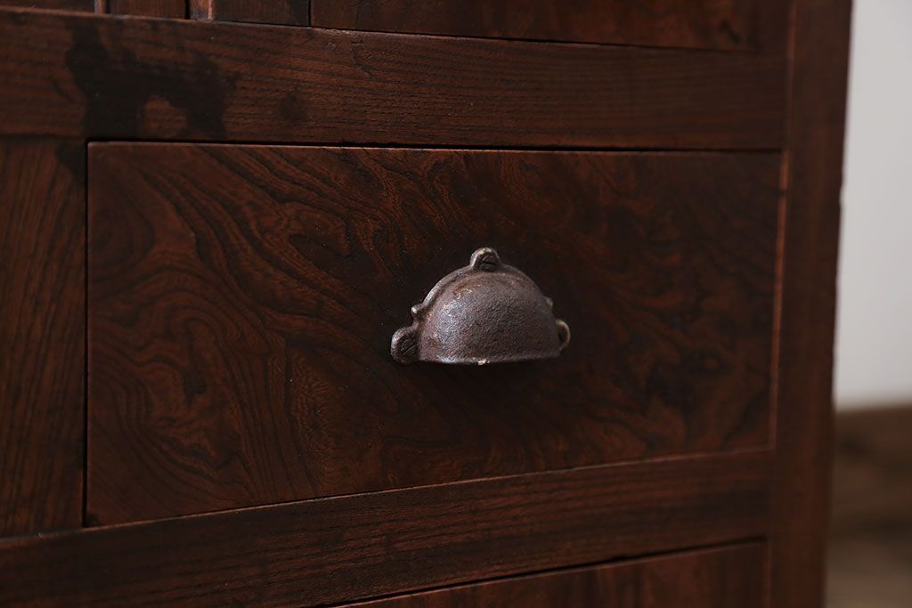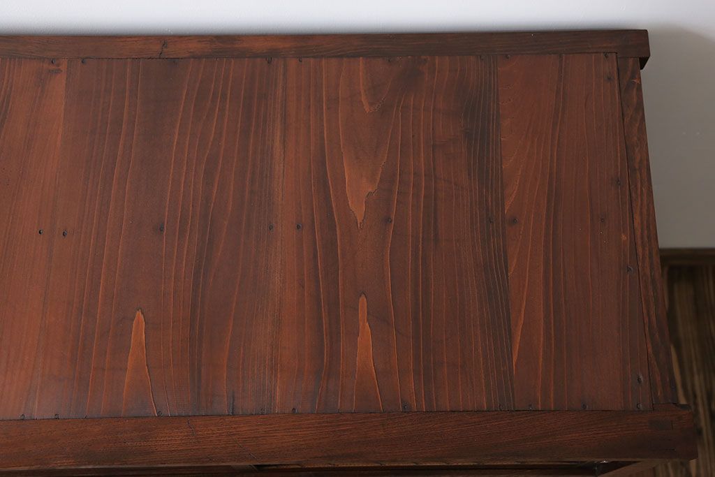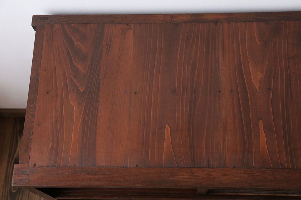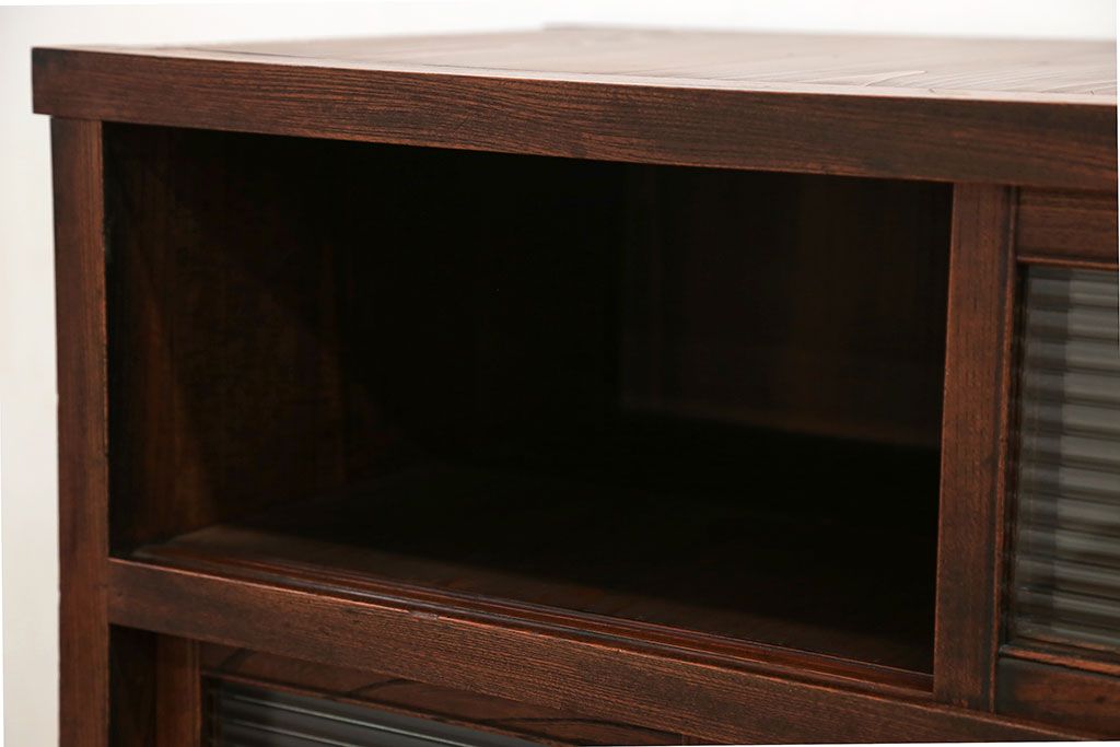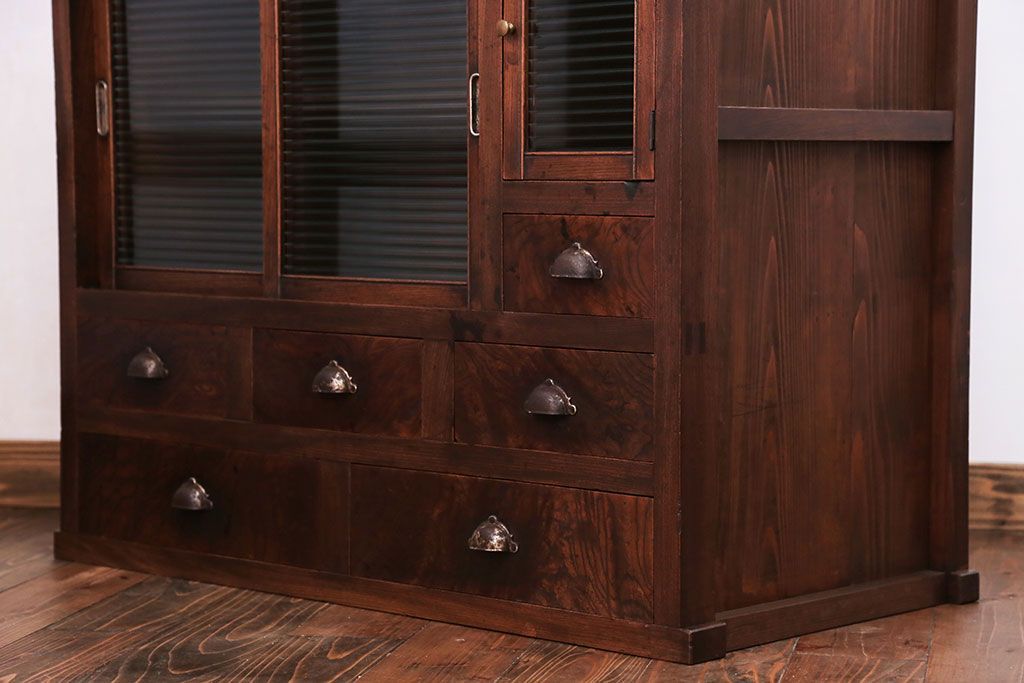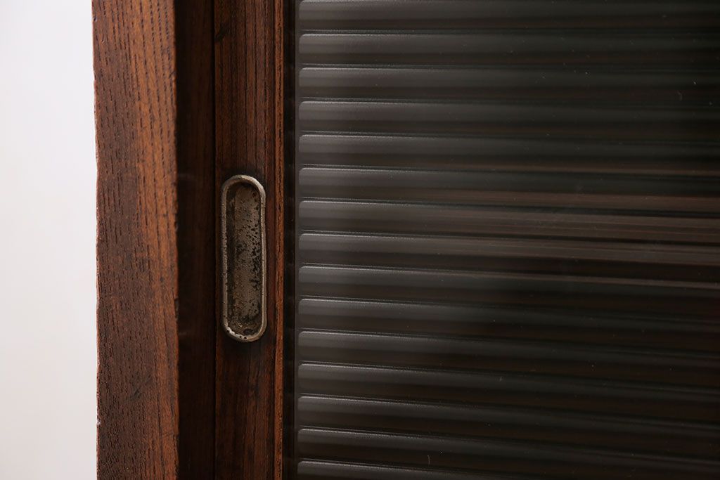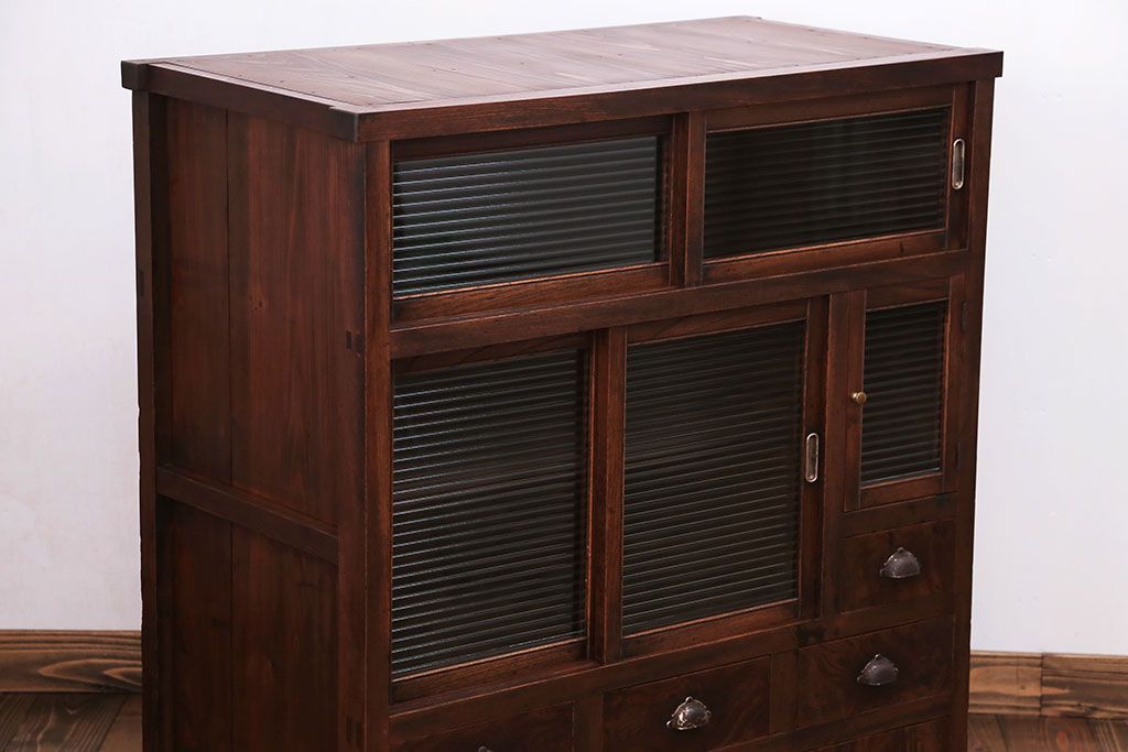アンティーク モールガラス入りの小振りな食器棚(収納棚、茶箪笥)です。