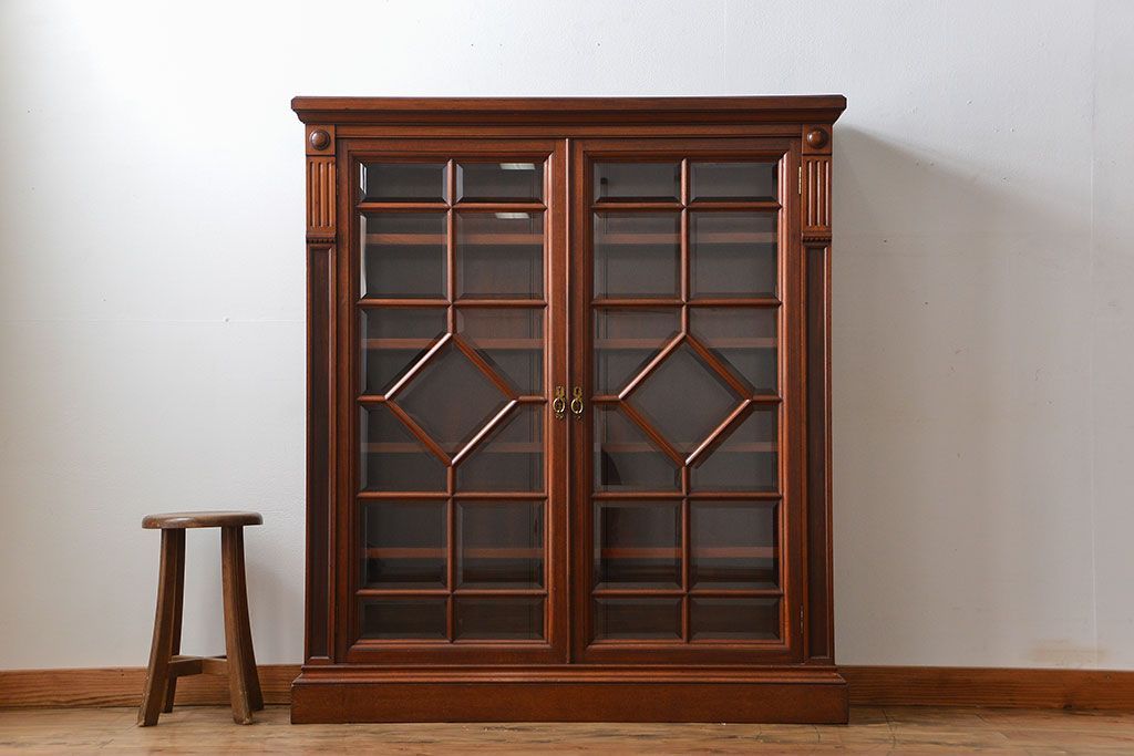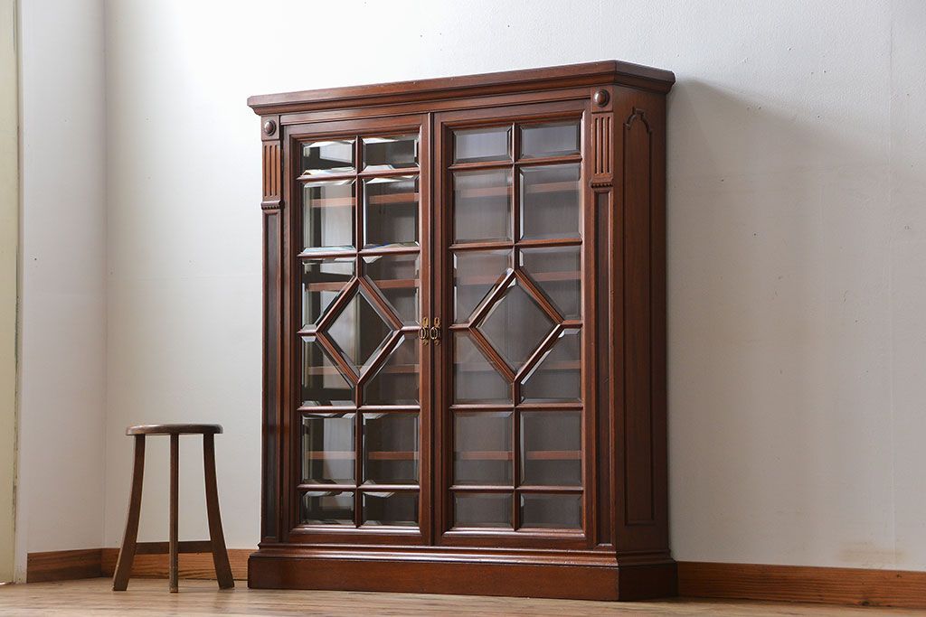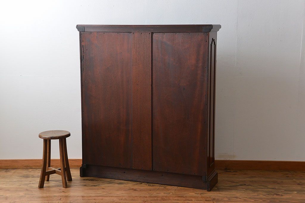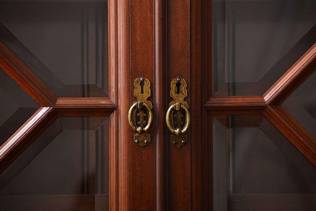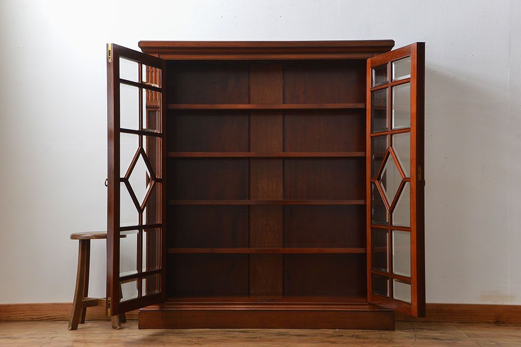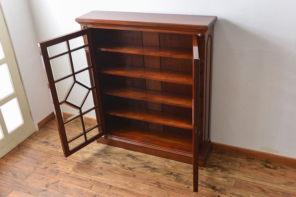 アンティーク家具 イギリスアンティーク マホガニー材!極めて上質な薄型ブックケース(カップボード、キャビネット)
