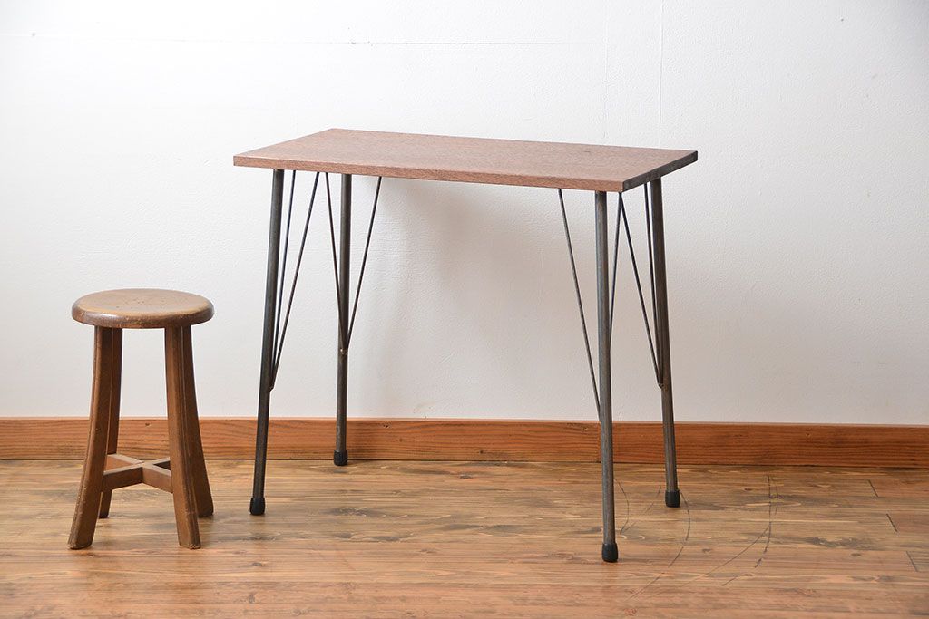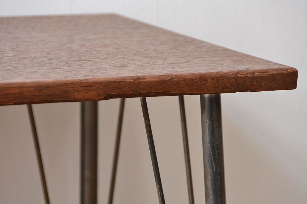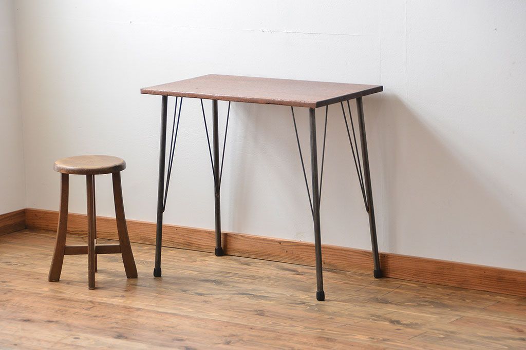 アンティーク家具 アンティーク 天板一枚板 古材を使った鉄脚テーブル(1)(作業台、机)