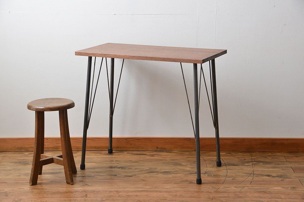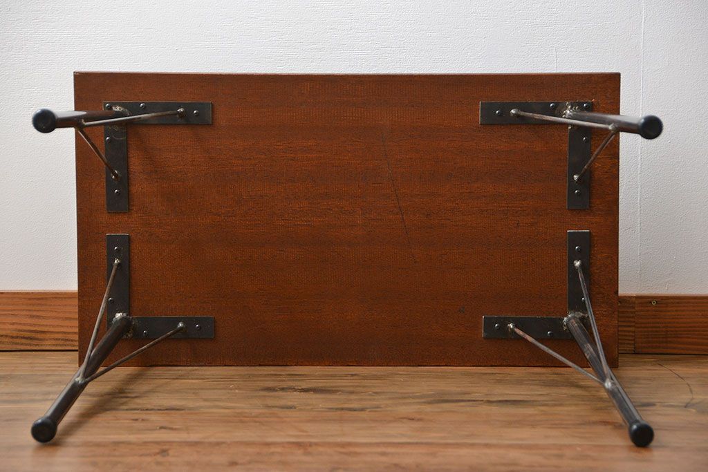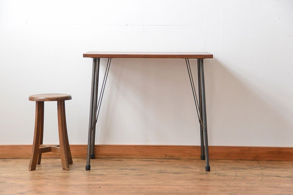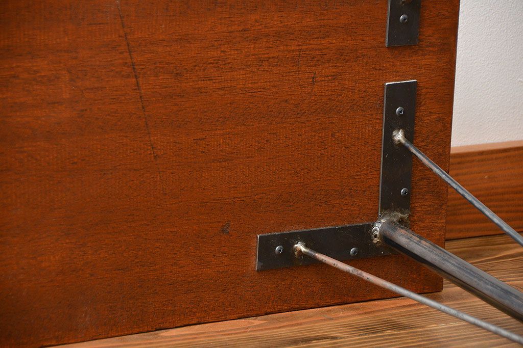 アンティーク家具 アンティーク 天板一枚板 古材を使った鉄脚テーブル(3)