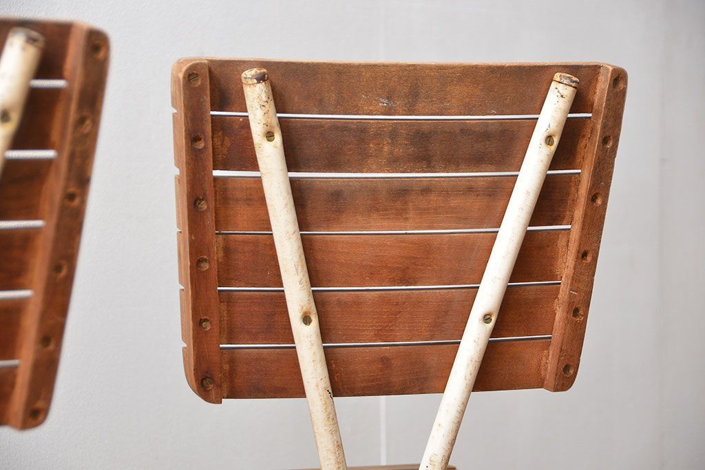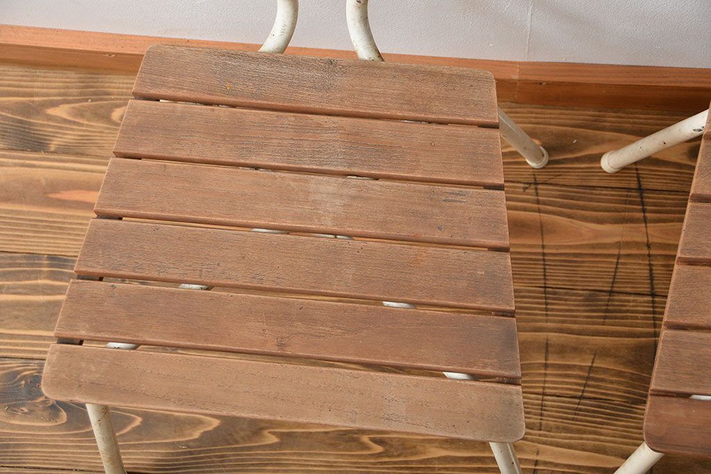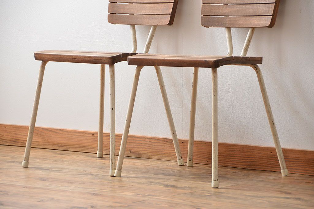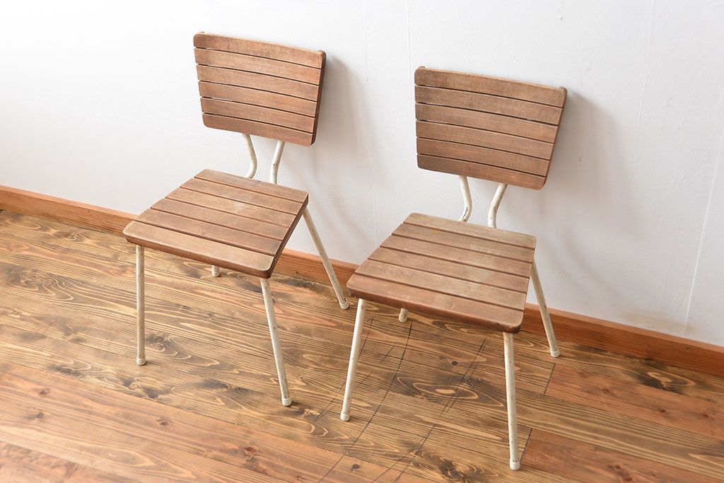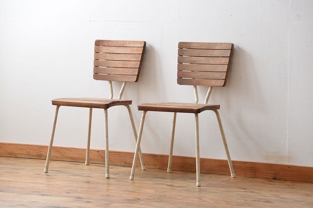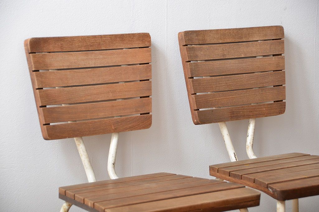 アンティーク家具 イギリスアンティーク ペンキのはげたガーデンチェア2脚セット(1)(椅子、イス)