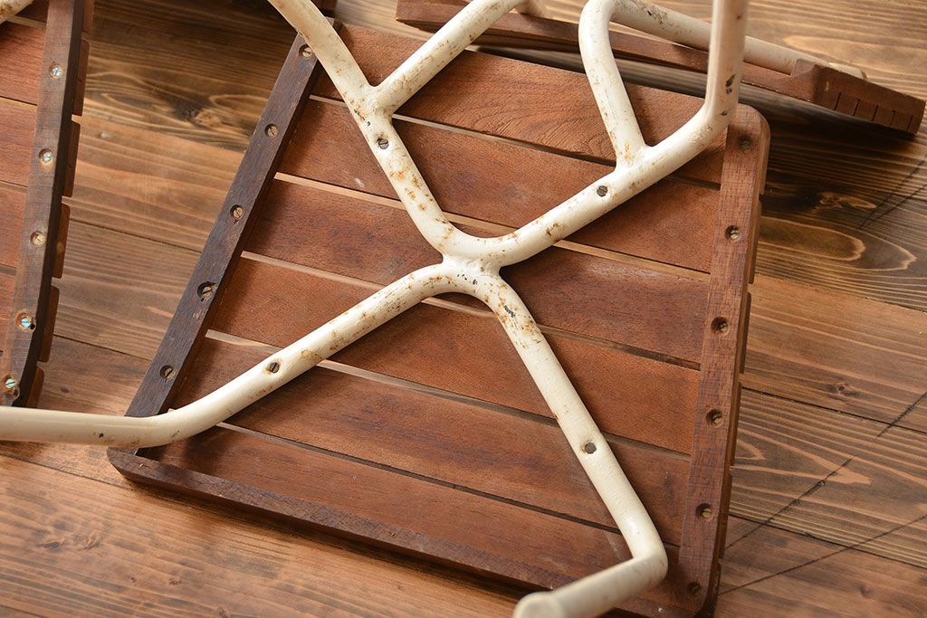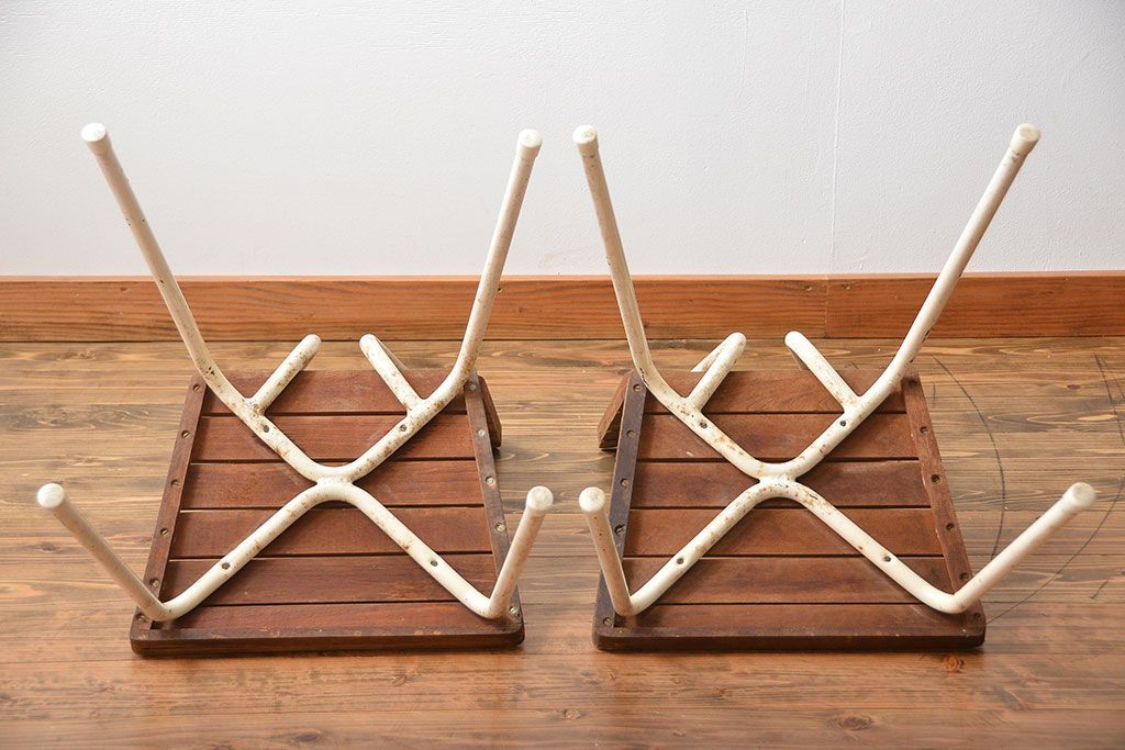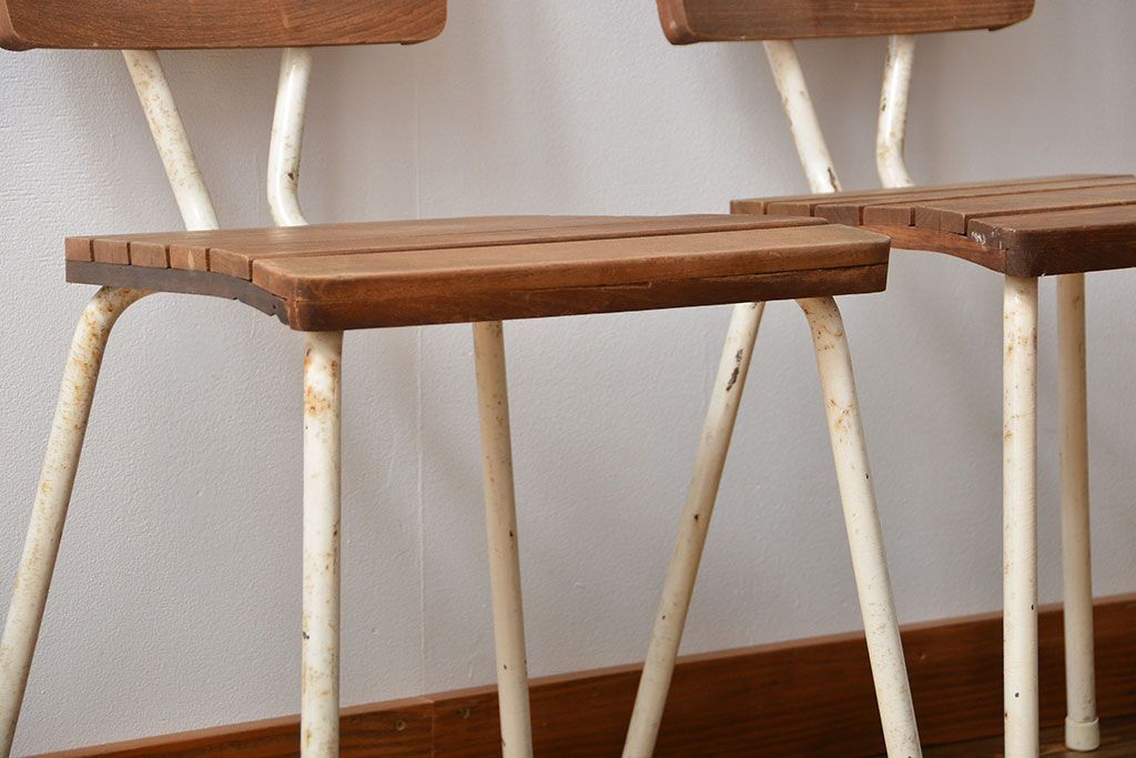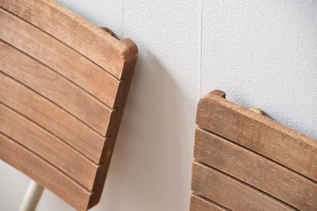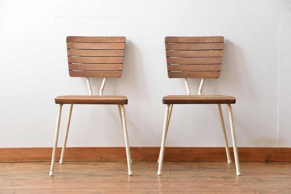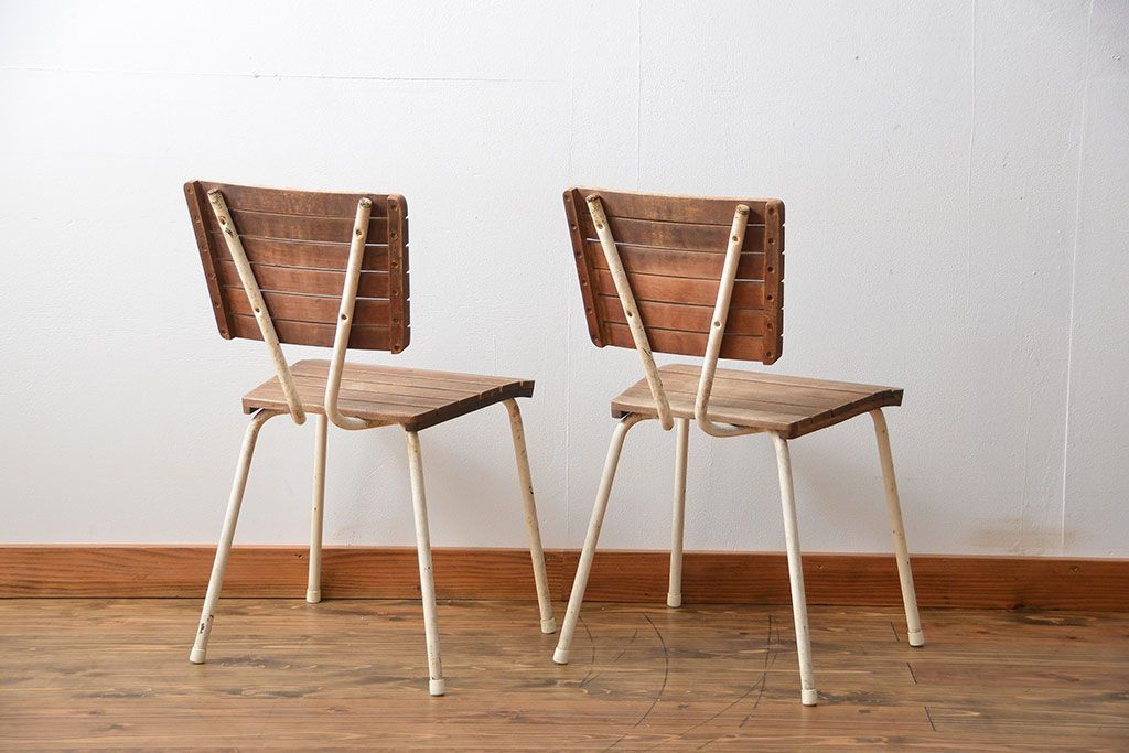 アンティーク家具 イギリスアンティーク ペンキのはげたガーデンチェア2脚セット(1)(椅子、イス)