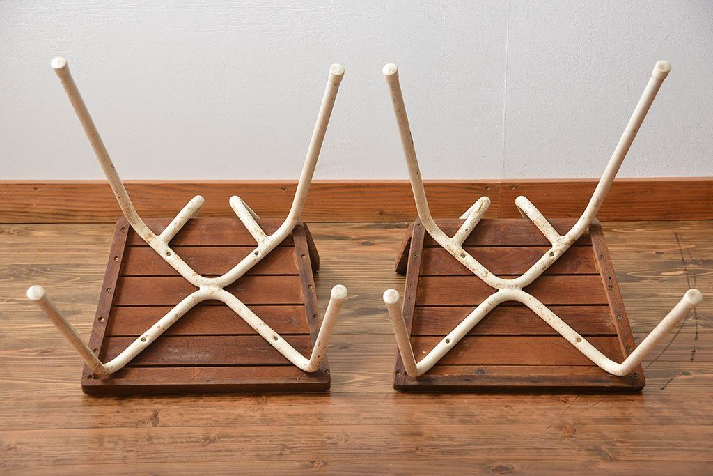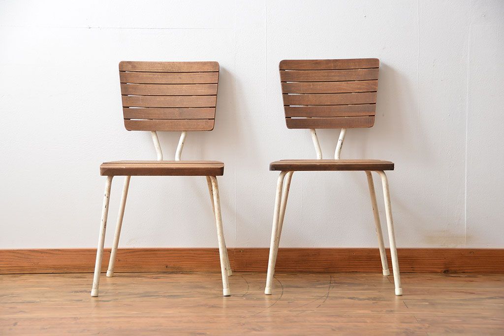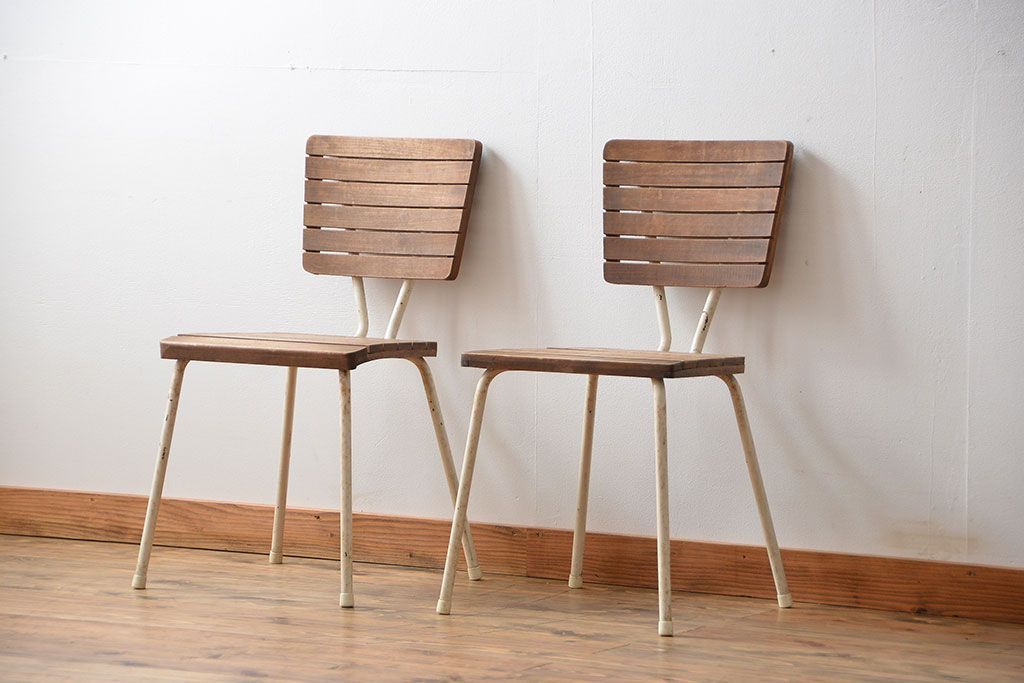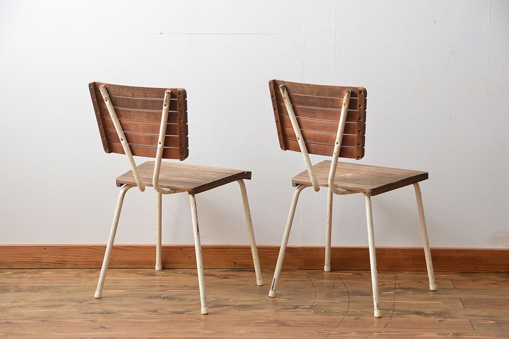 アンティーク家具 イギリスアンティーク ペンキのはげたガーデンチェア2脚セット(2)(椅子、イス)