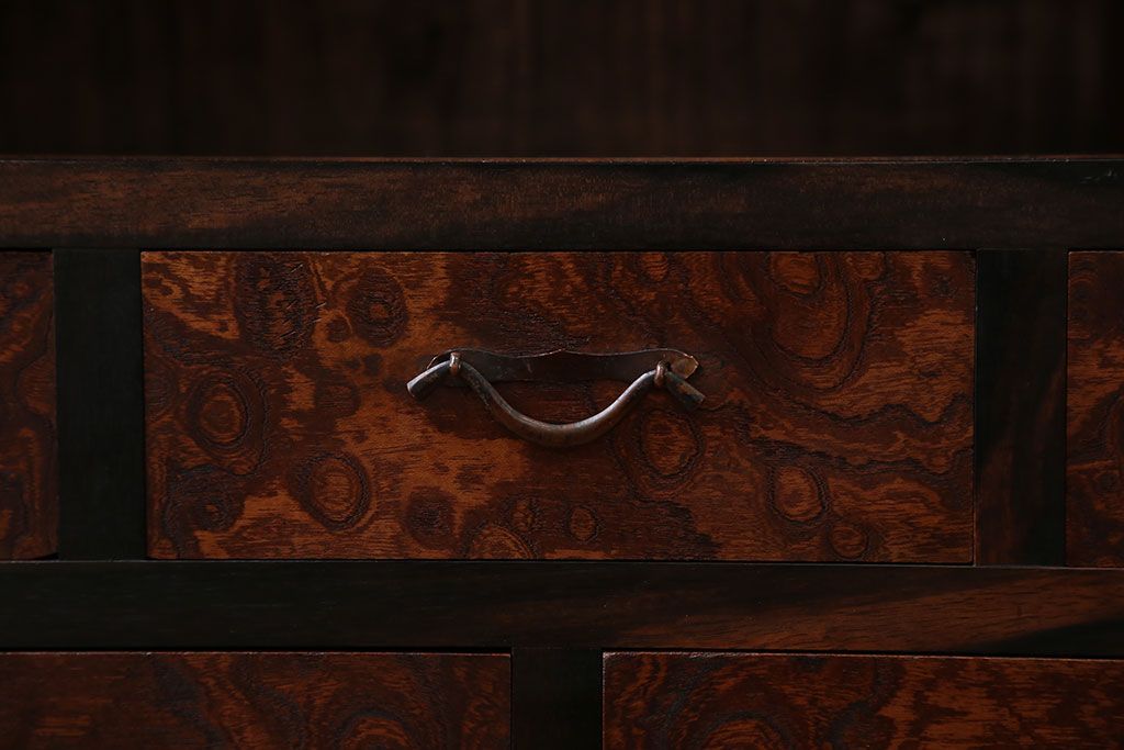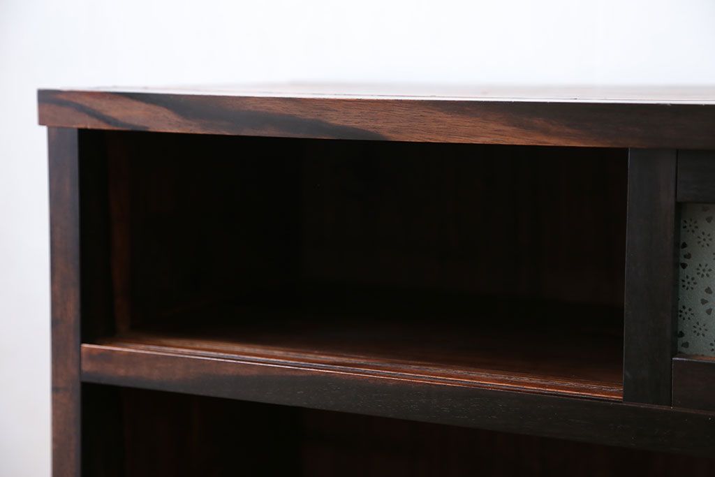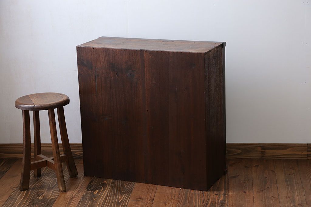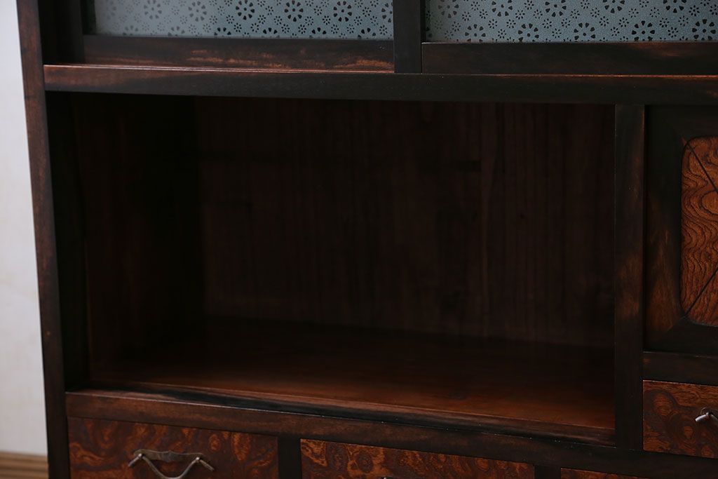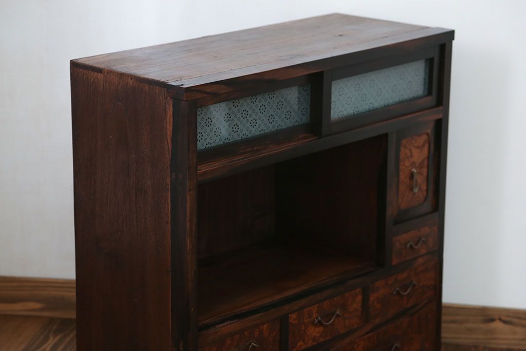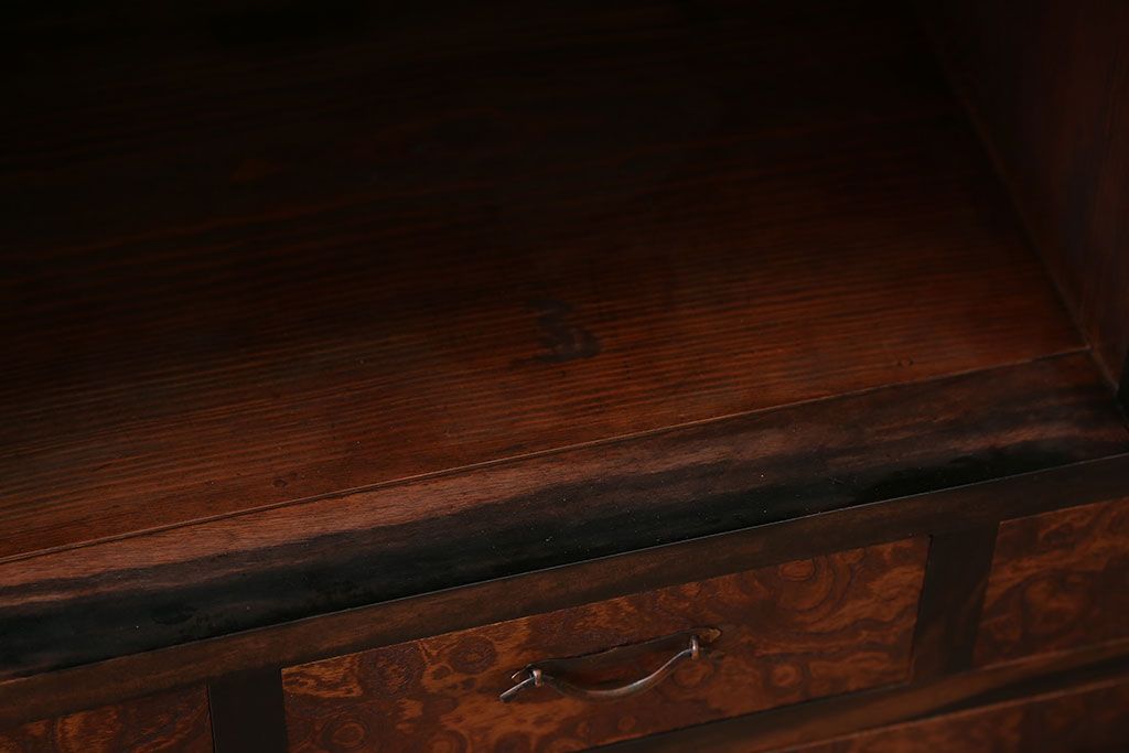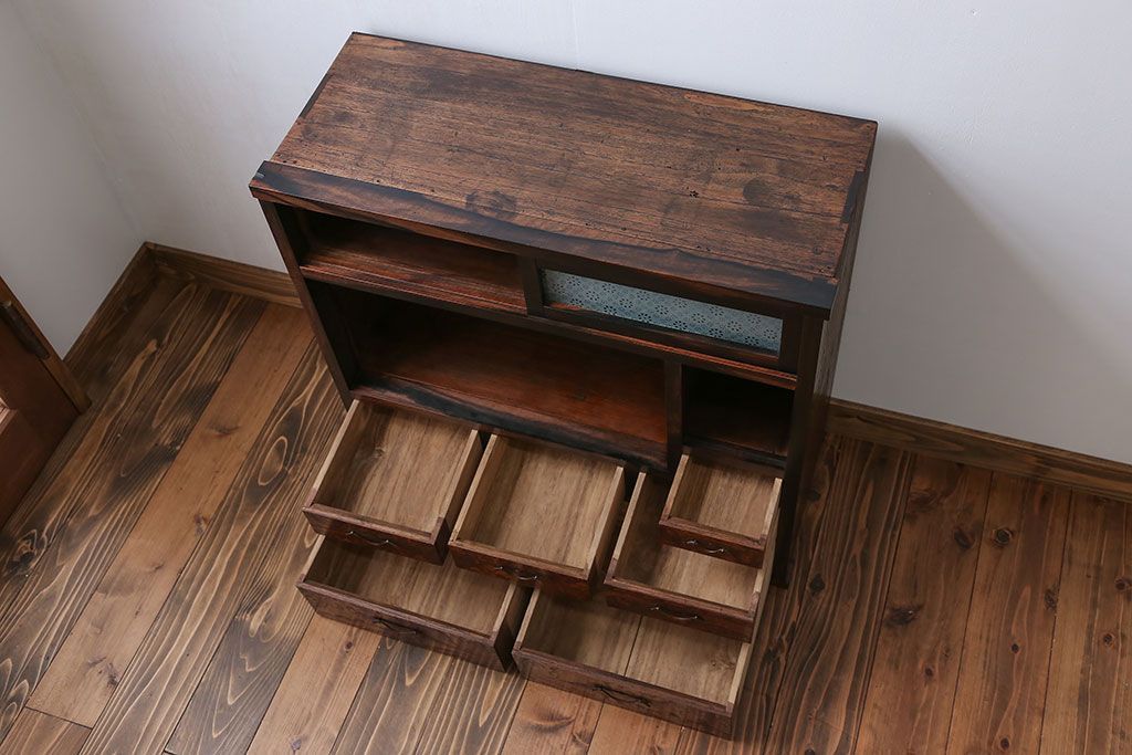 アンティーク家具 アンティーク 前面欅材と黒柿無垢材の小さな茶箪笥(茶棚、飾り棚)