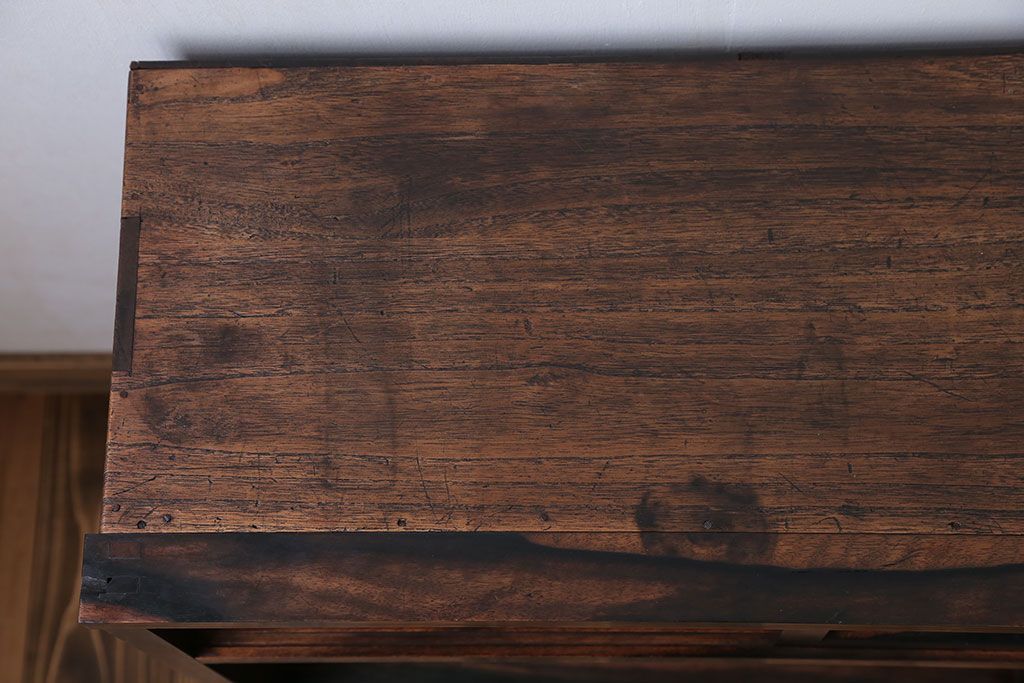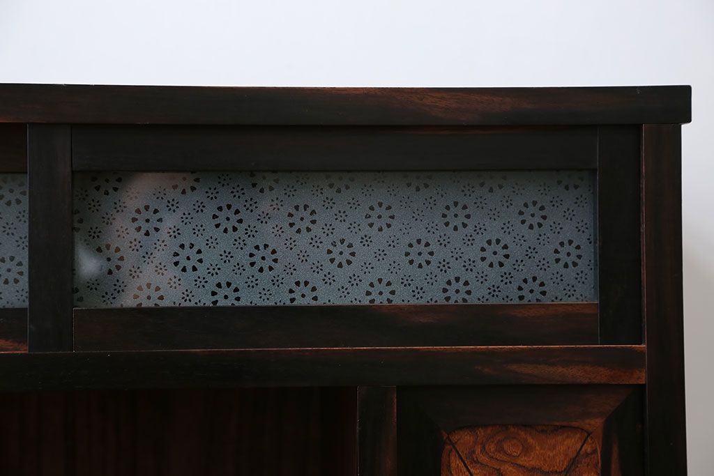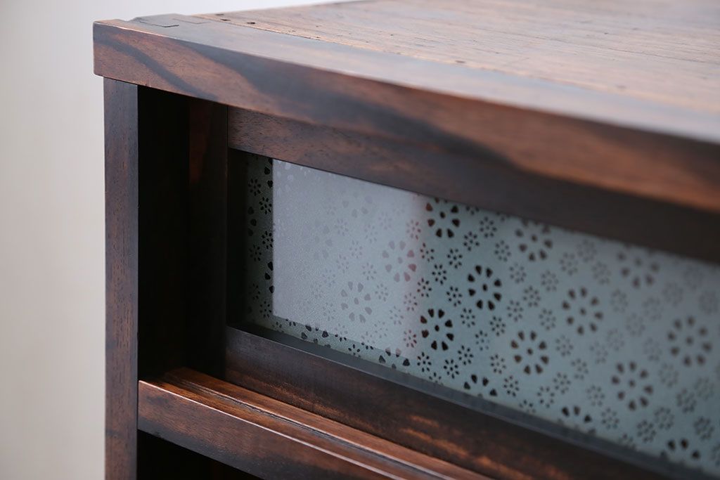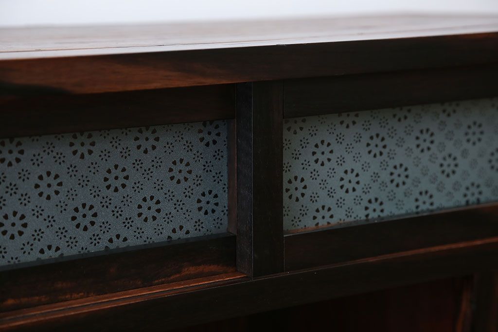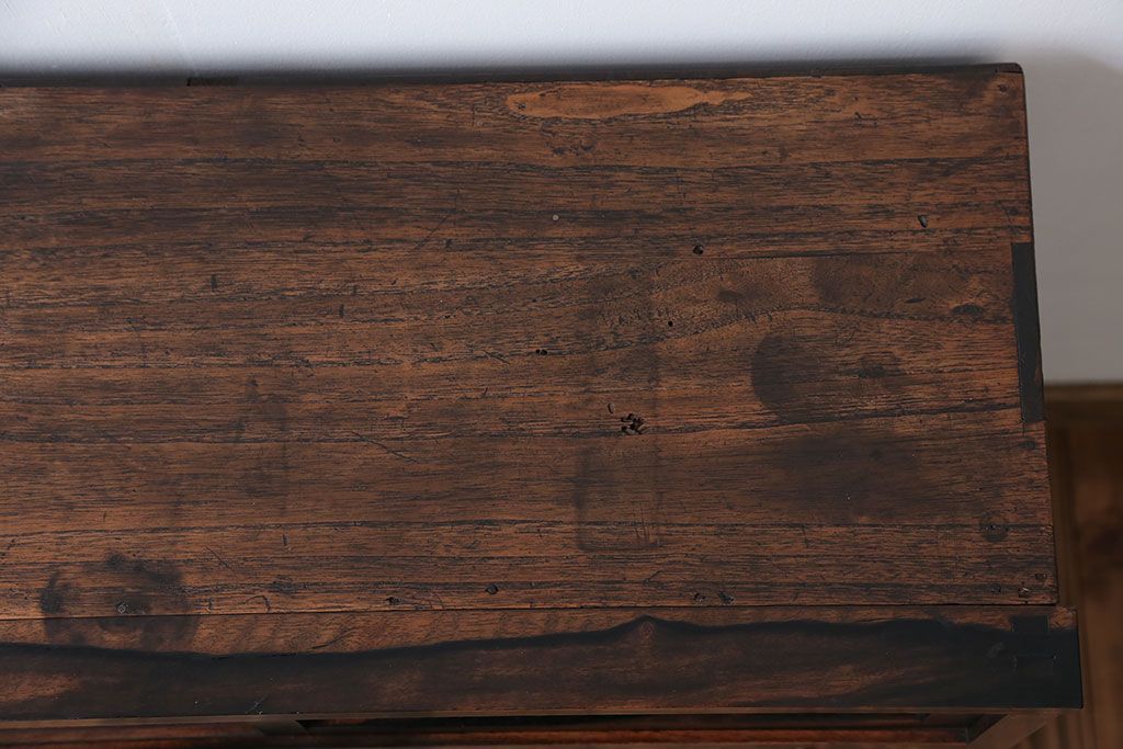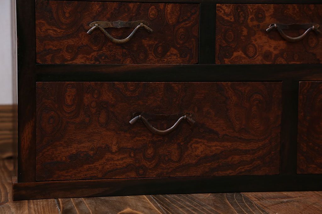 アンティーク家具 アンティーク 前面欅材と黒柿無垢材の小さな茶箪笥(茶棚、飾り棚)