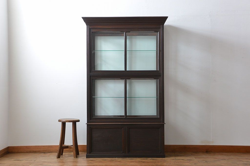 ラフジュ工房> キャビネット・戸棚> 食器棚・カップボード > アンティーク家具 大正ロマン 古いナラ材!アンティークガラスケース(ショーケース、飾り棚)