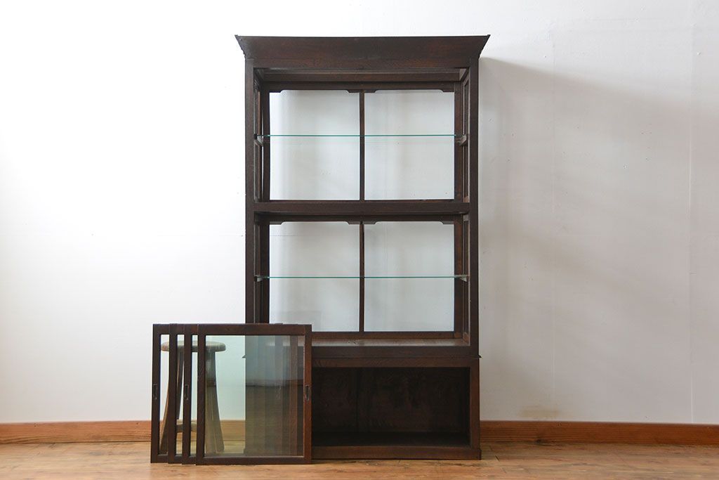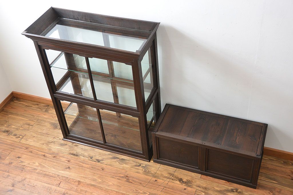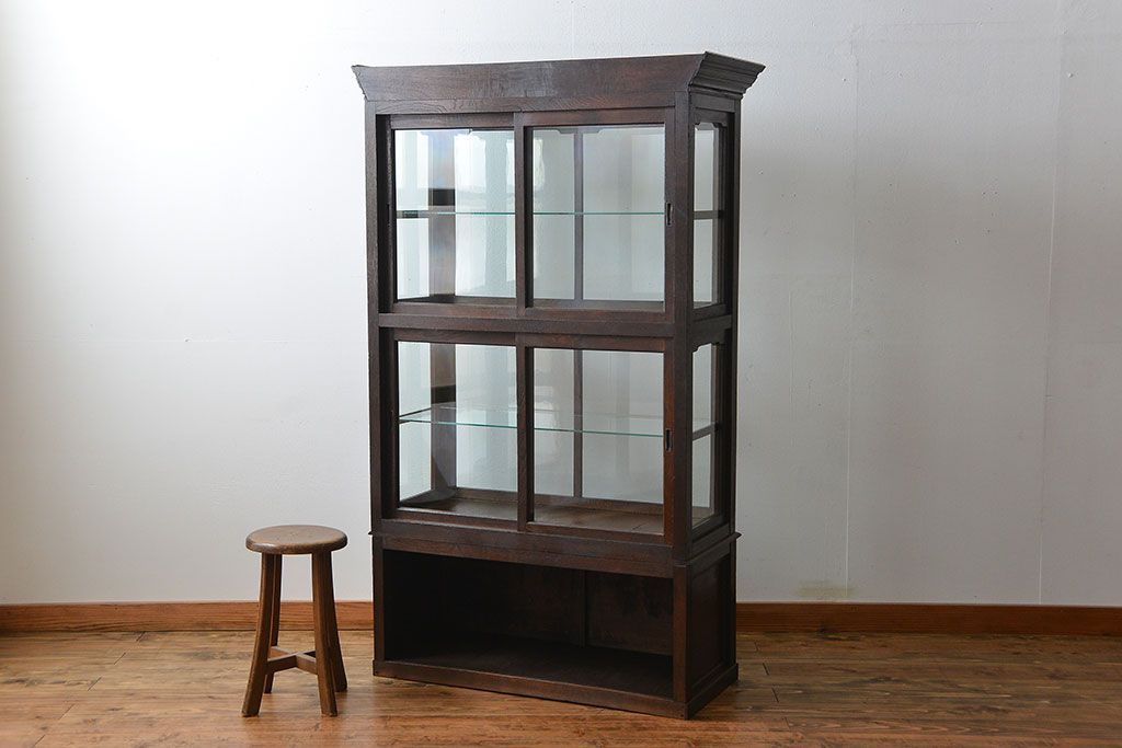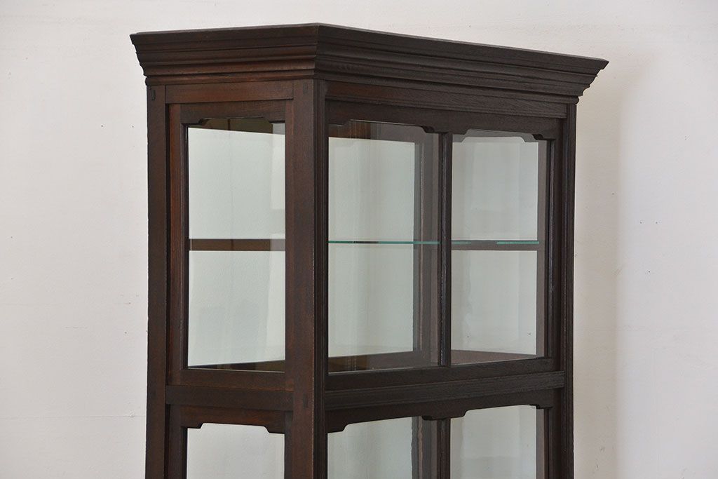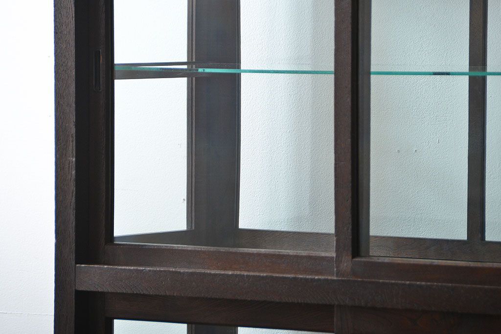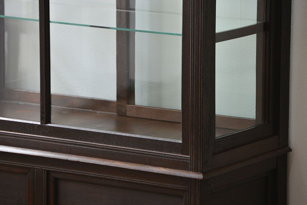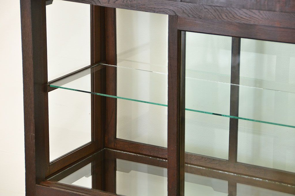 アンティーク家具 大正ロマン 古いナラ材!アンティークガラスケース(ショーケース、飾り棚)