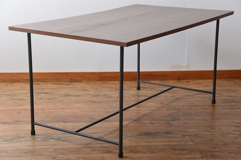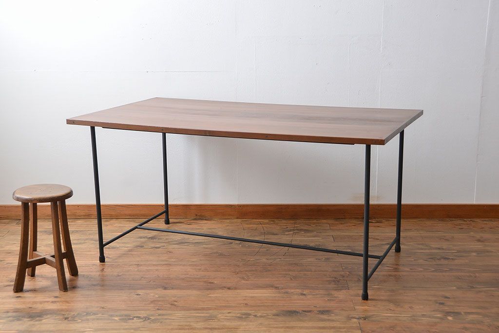 ラフジュ工房オリジナル 古材天板のシンプルなペイント鉄脚ダイニングテーブル