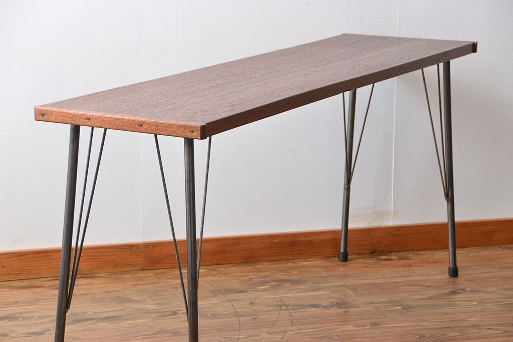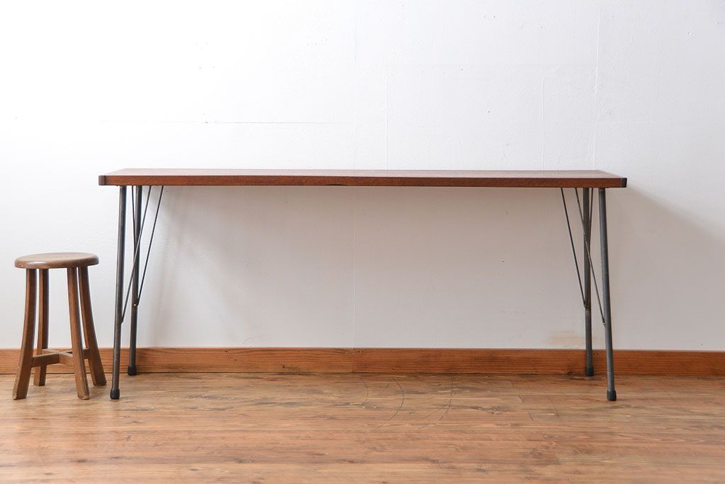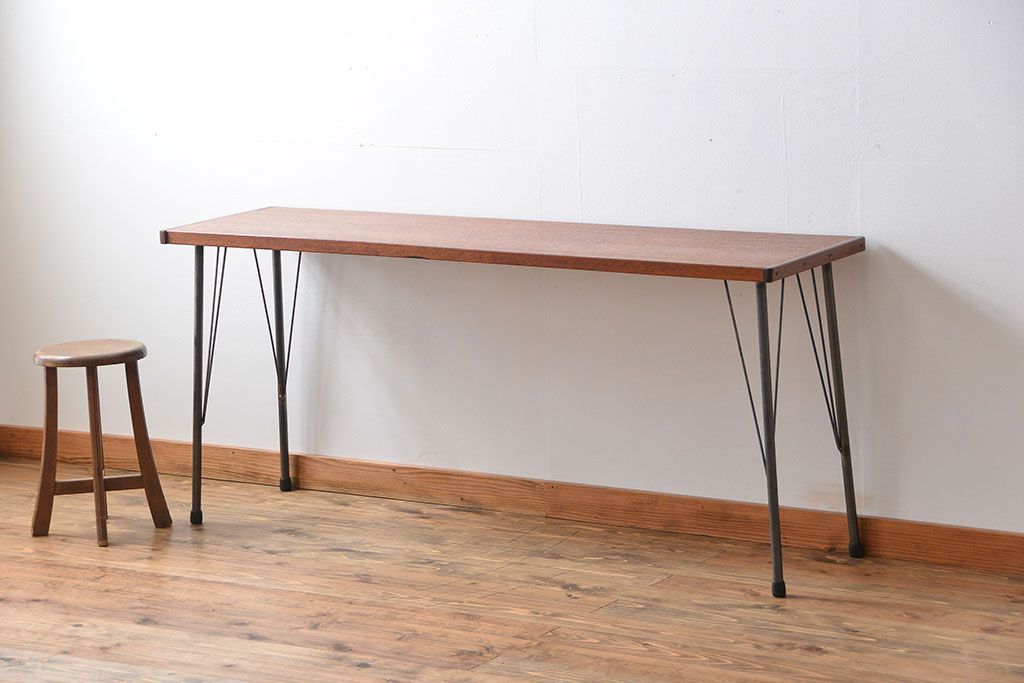 アンティーク家具 アンティーク 天板一枚板 古材の鉄脚テーブル(2)(机、作業台)