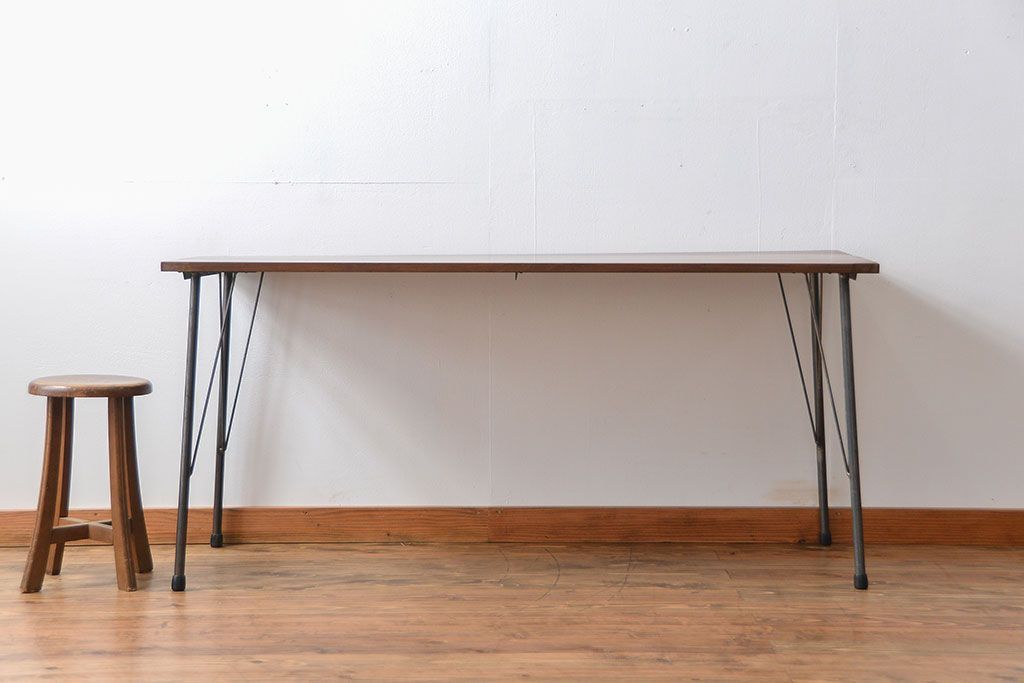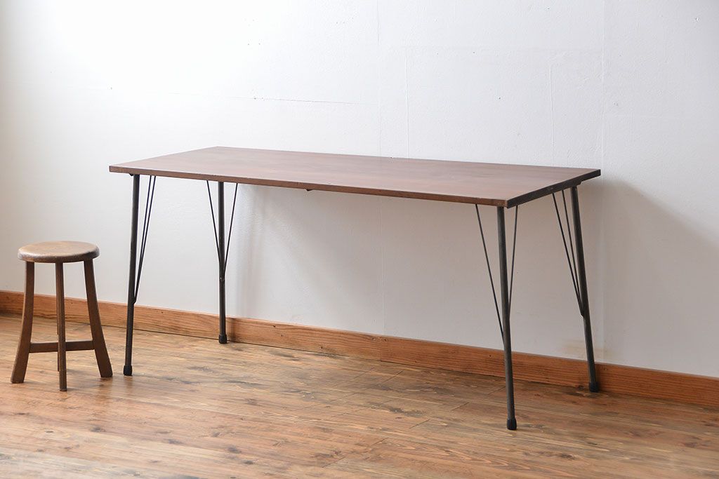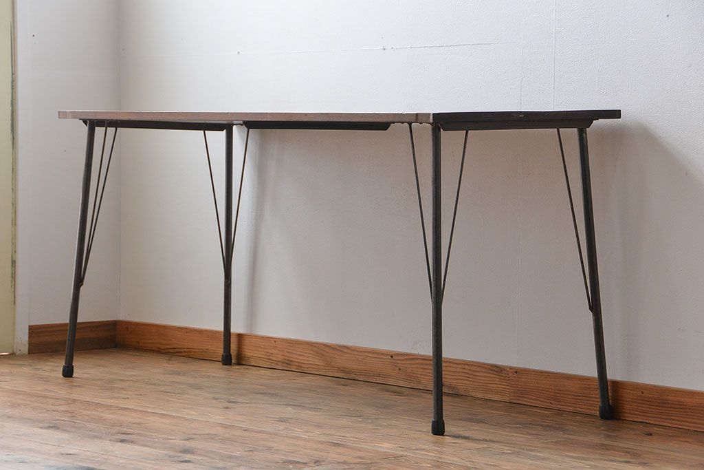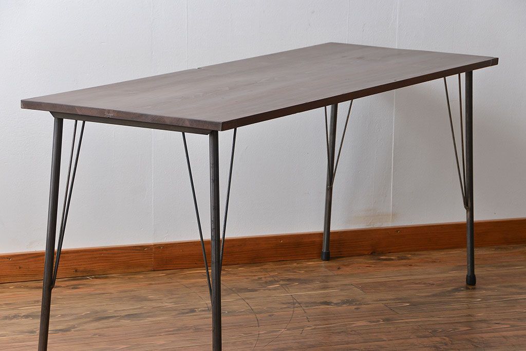 アンティーク家具 アンティーク 天板一枚板 古材の鉄脚テーブル(5)(机、作業台)