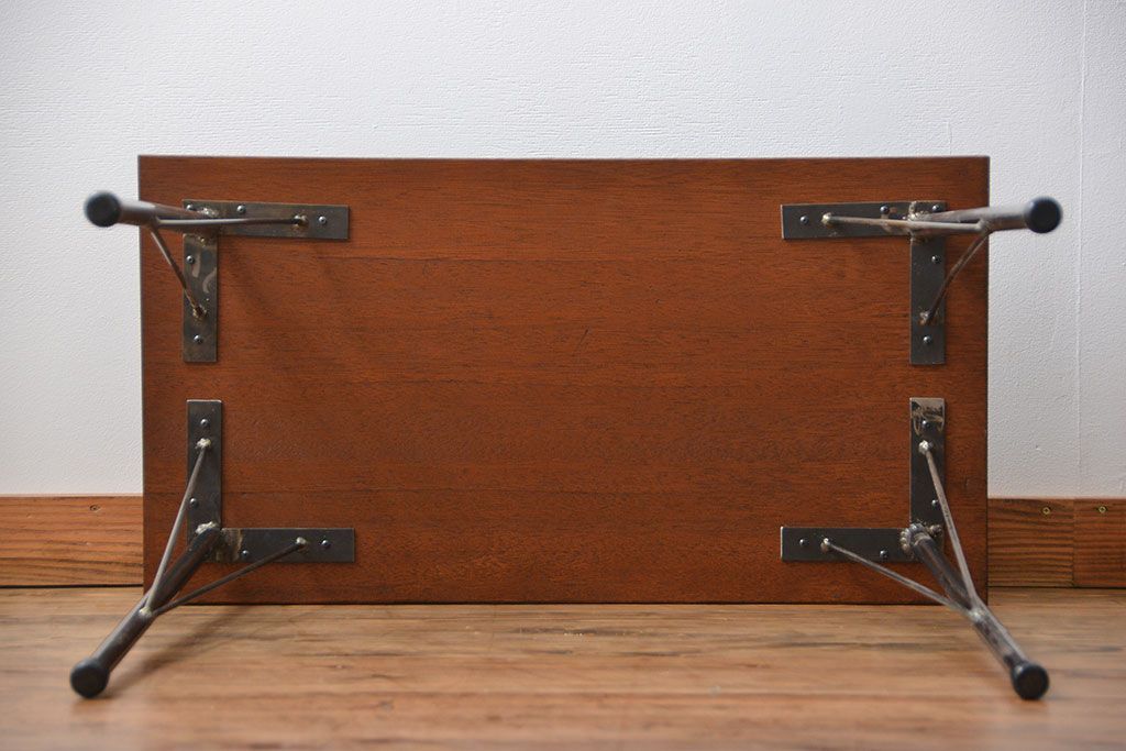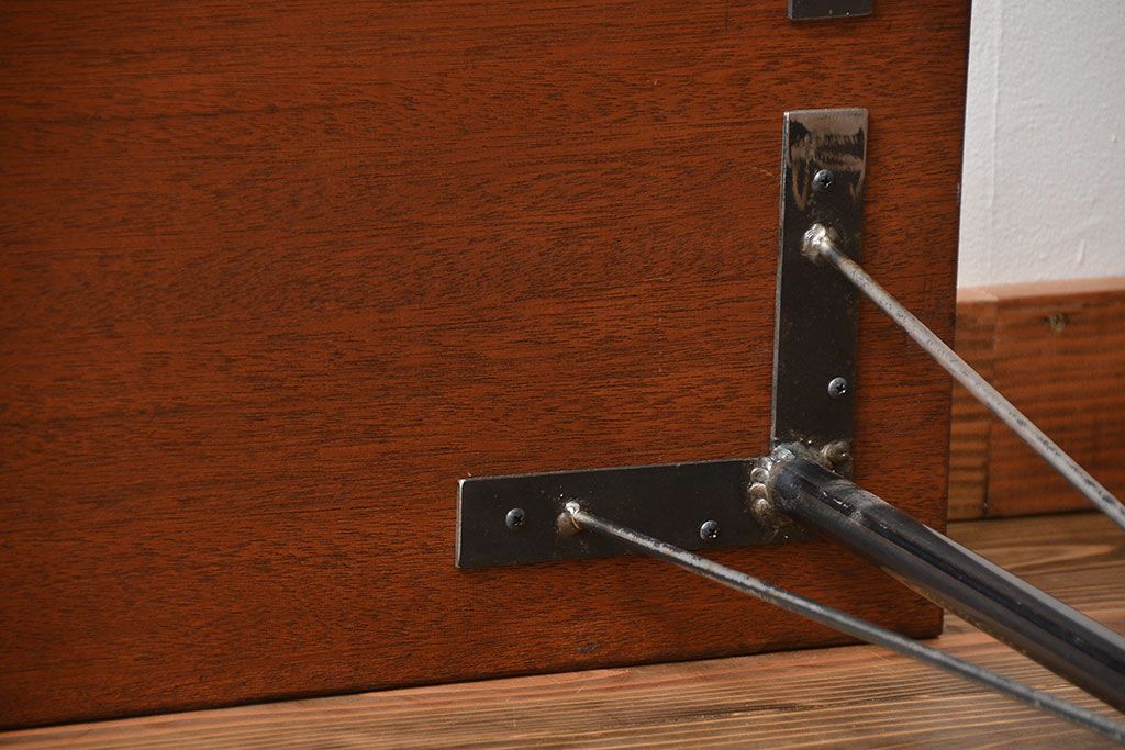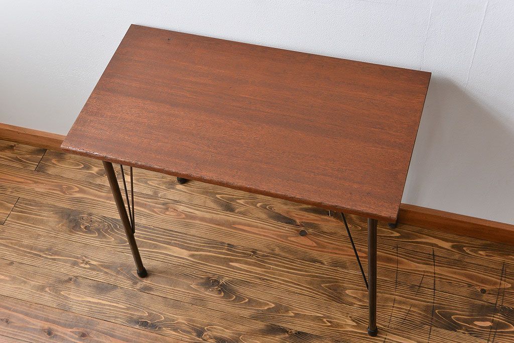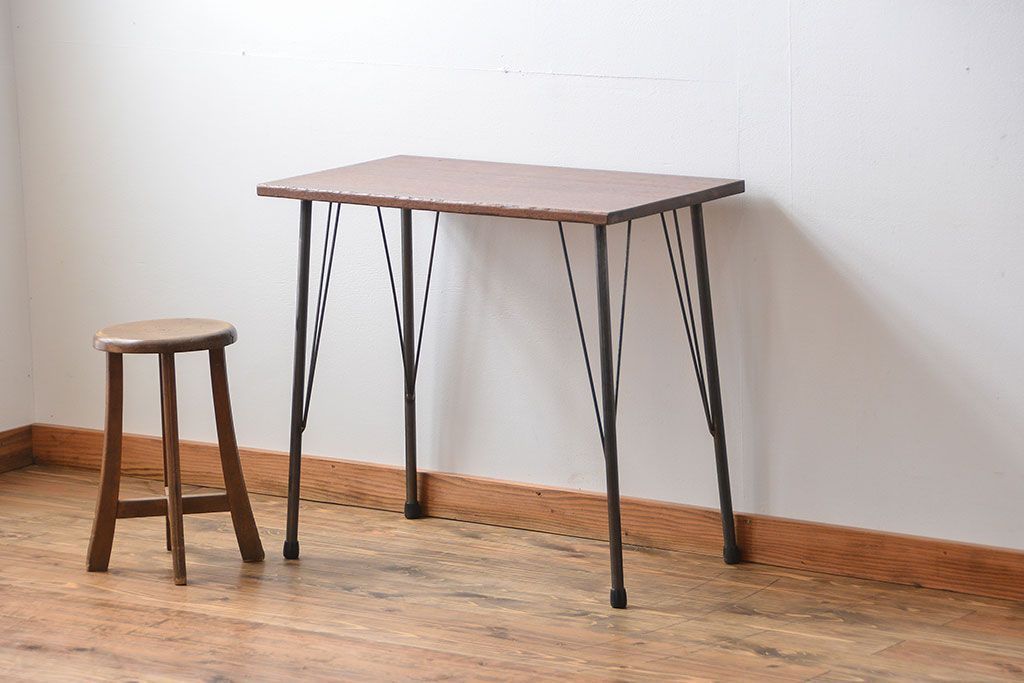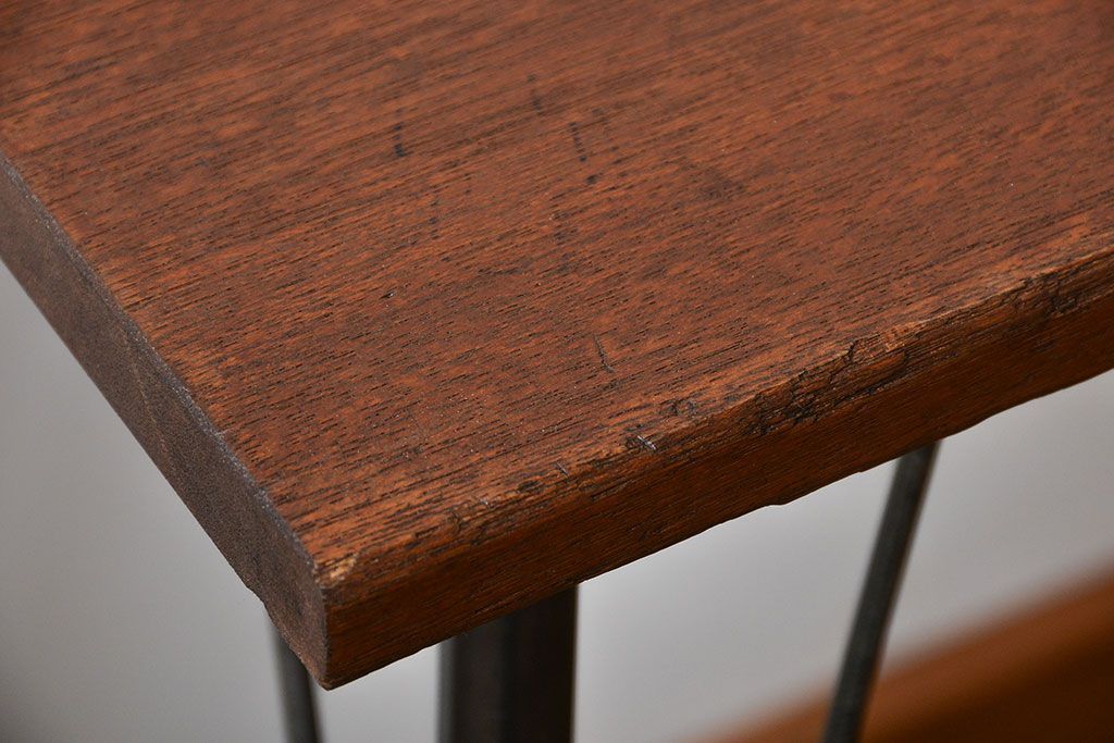 アンティーク家具 アンティーク 天板一枚板!古材を使った鉄脚テーブル(7)(作業台、机)