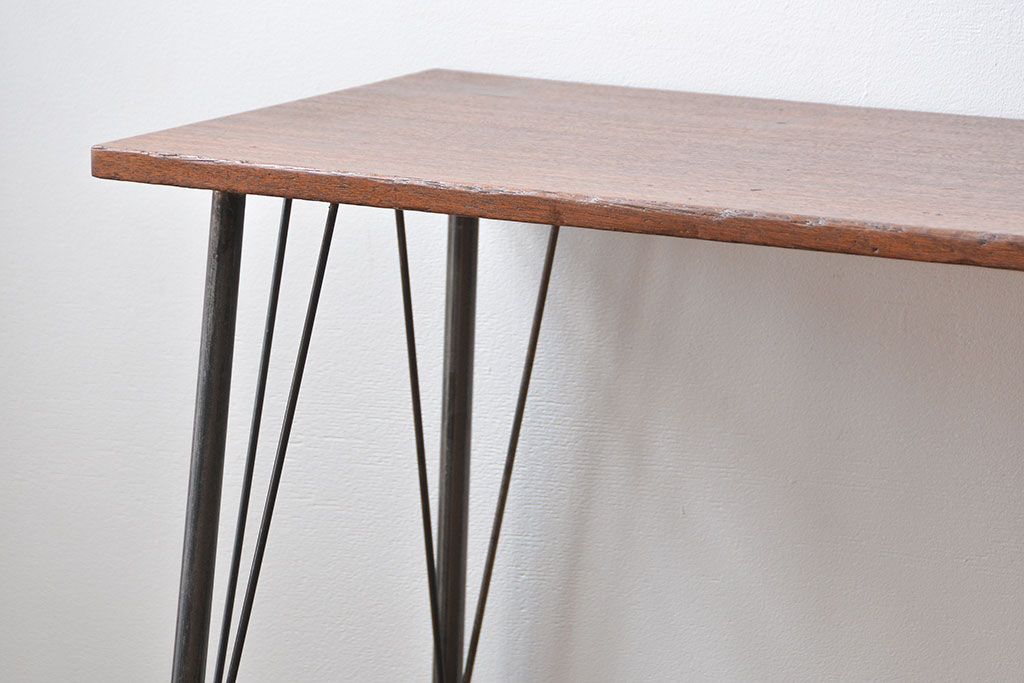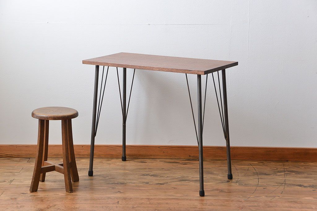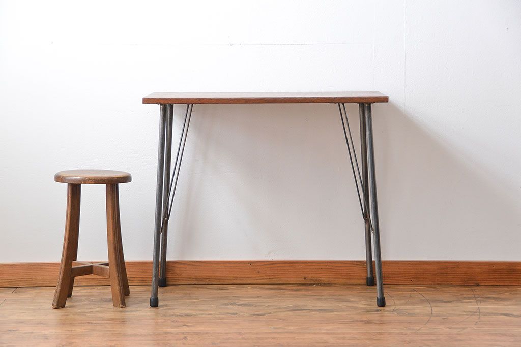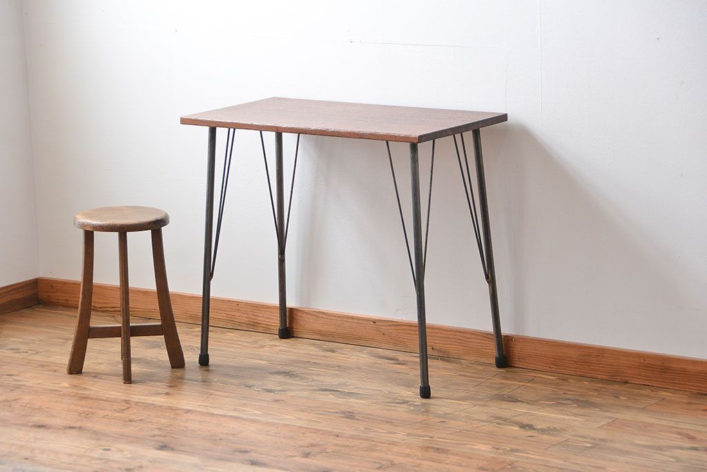 アンティーク家具 アンティーク 天板一枚板 古材を使った鉄脚テーブル(8)(作業台、机)