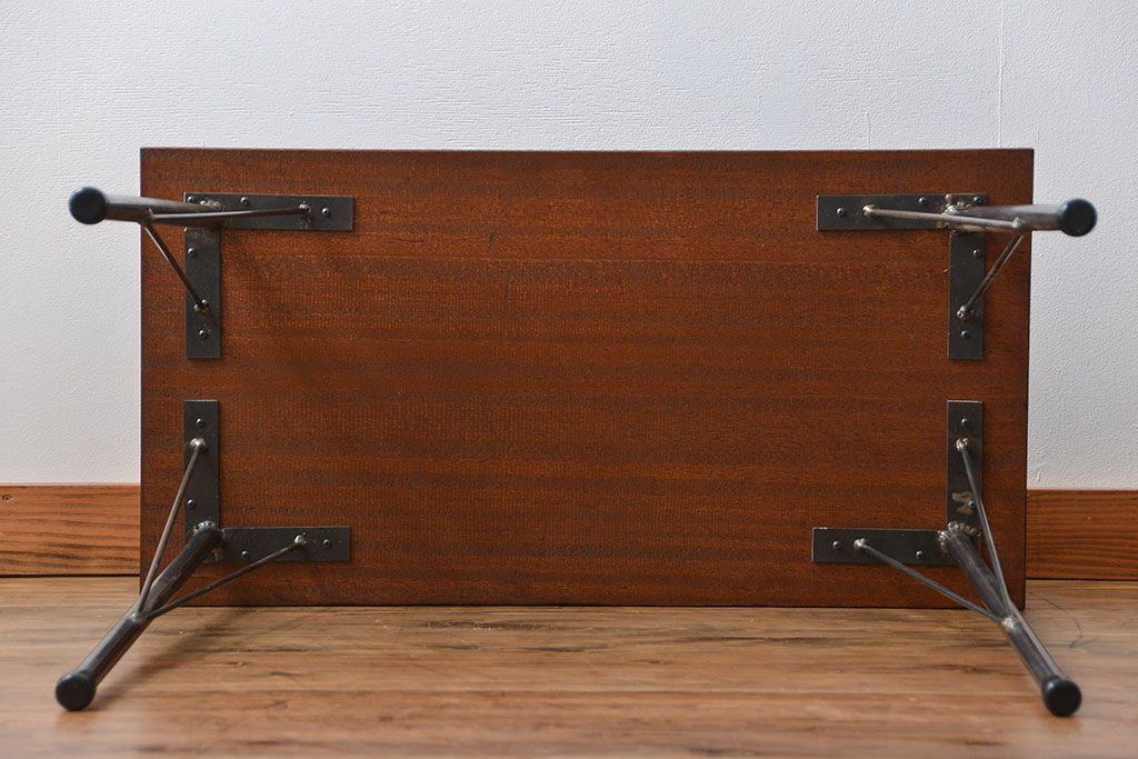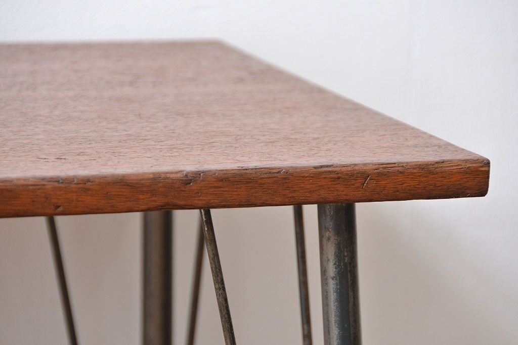 アンティーク 天板一枚板 古材を使った鉄脚テーブル(8)(作業台、机)です。