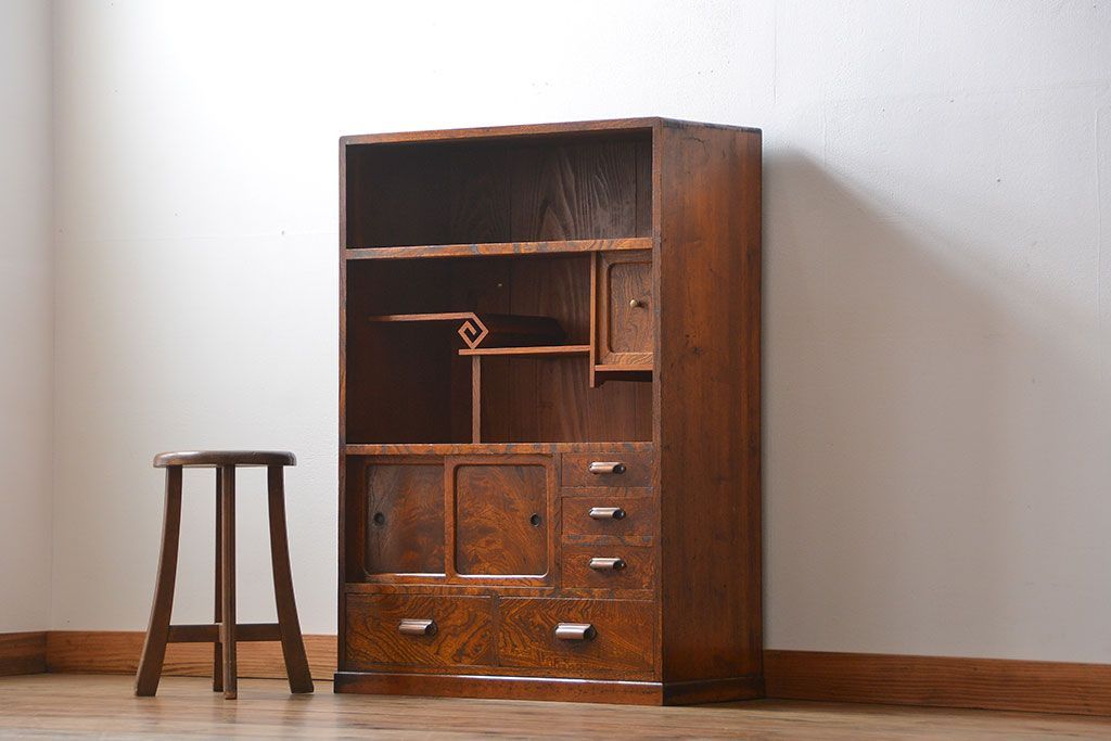 アンティーク家具 アンティーク 前面欅材の小振りな茶箪笥(引き戸なし)