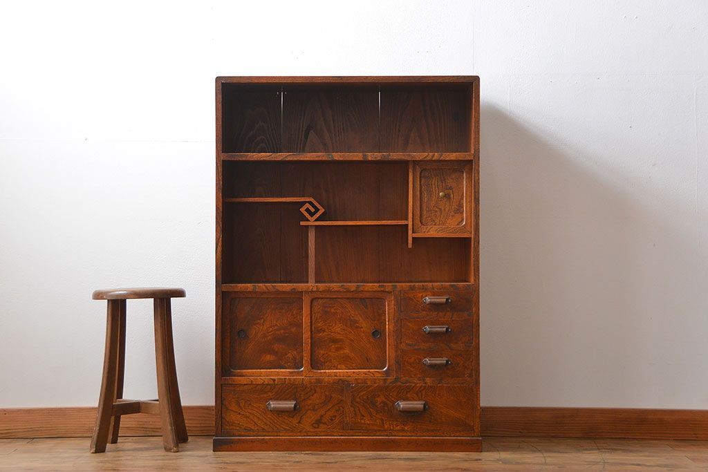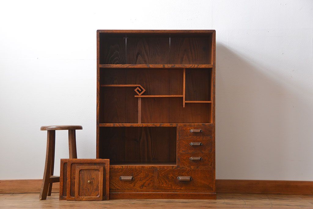 アンティーク 前面欅材の小振りな茶箪笥(引き戸なし)です。