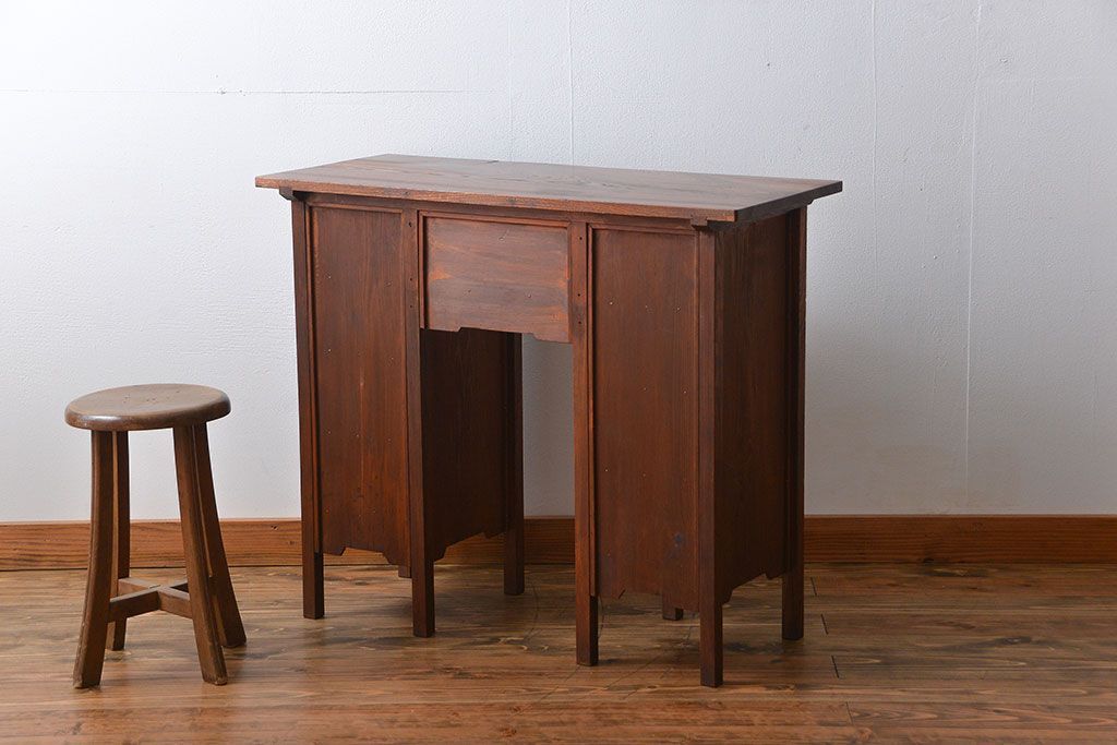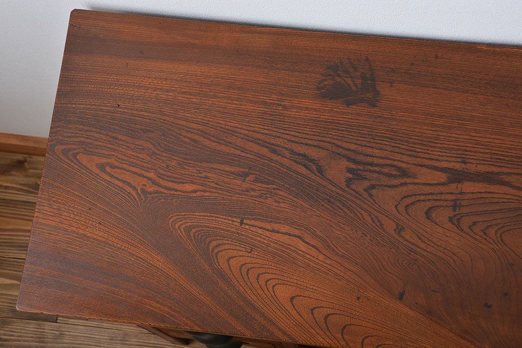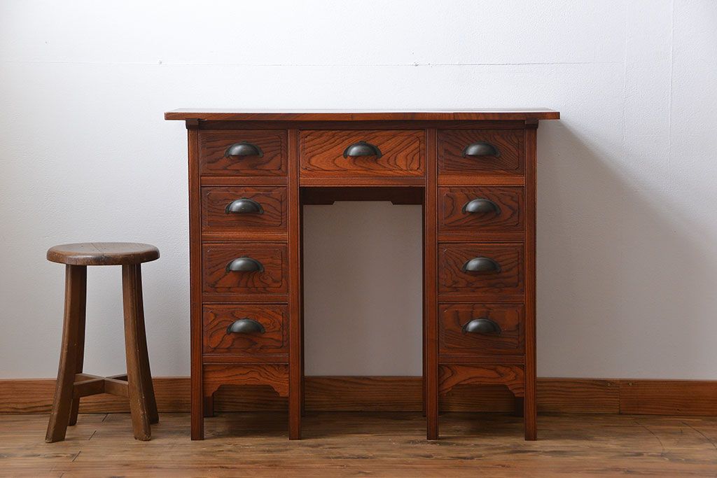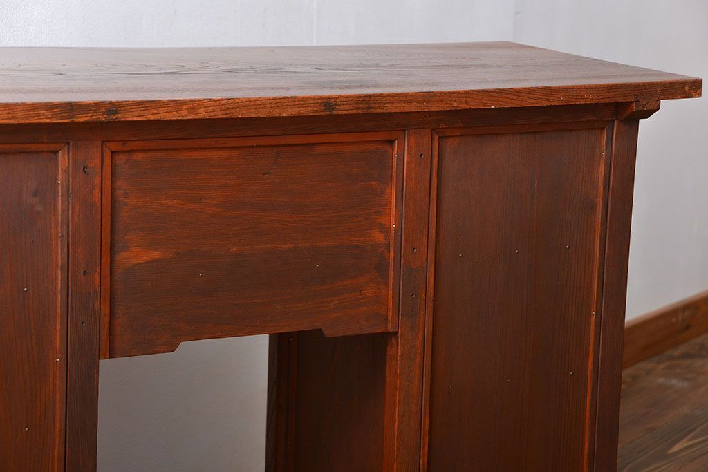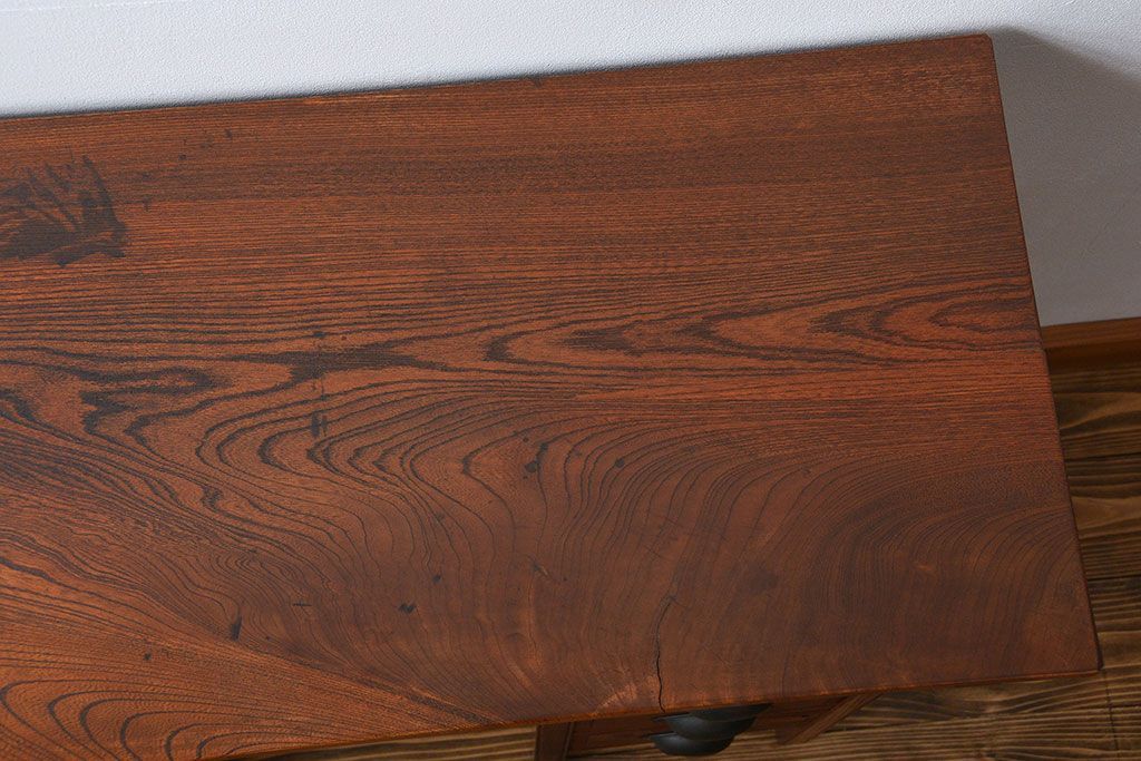 アンティーク家具 アンティーク 古い欅材の薄型両袖机(サイドテーブル)