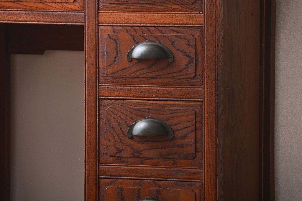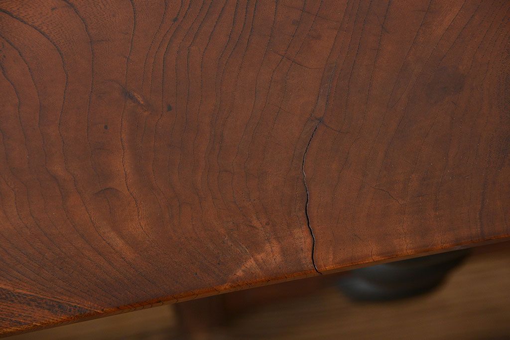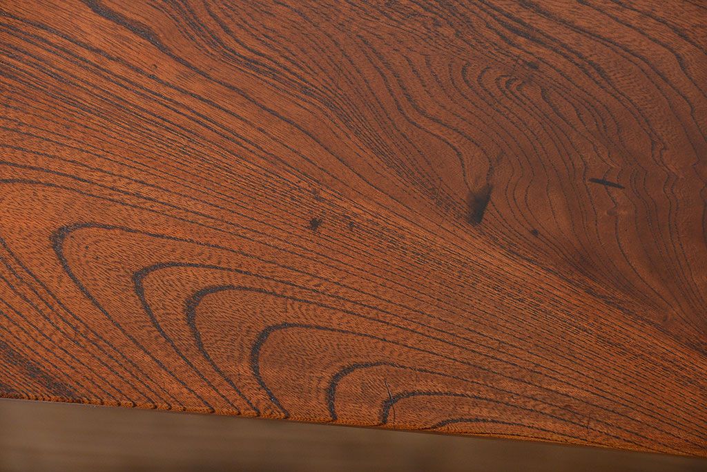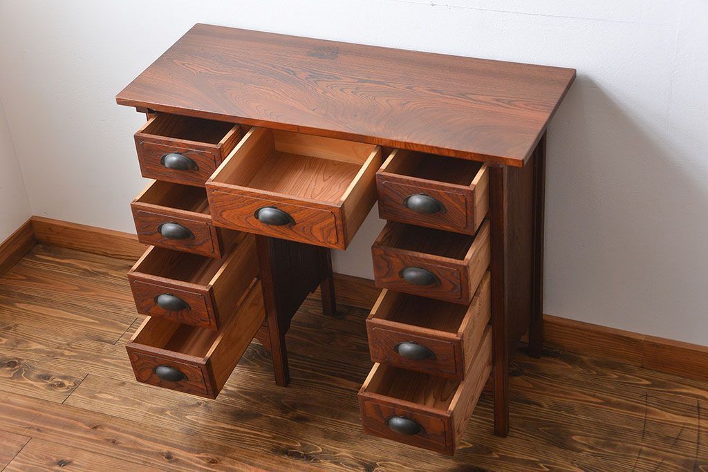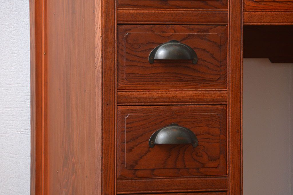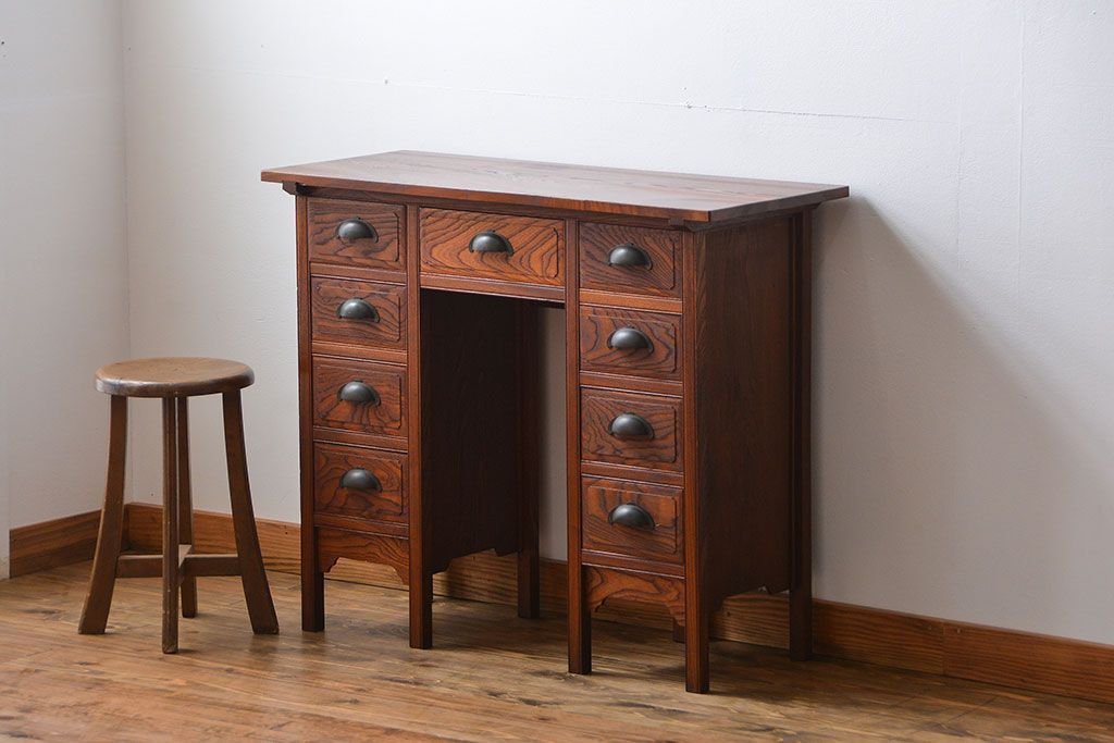 アンティーク家具 アンティーク 古い欅材の薄型両袖机(サイドテーブル)