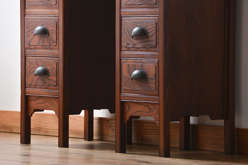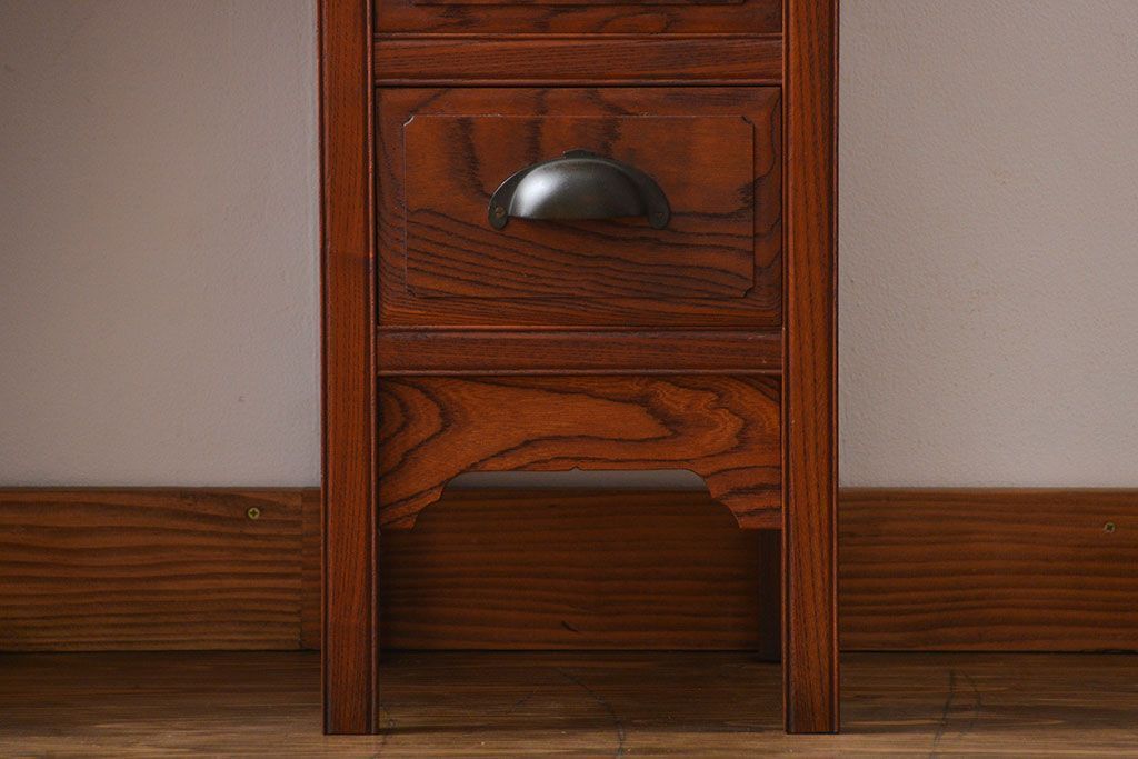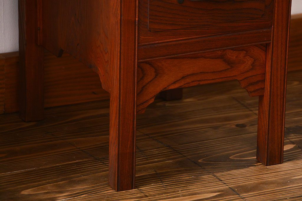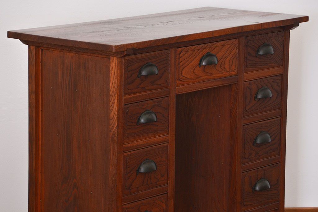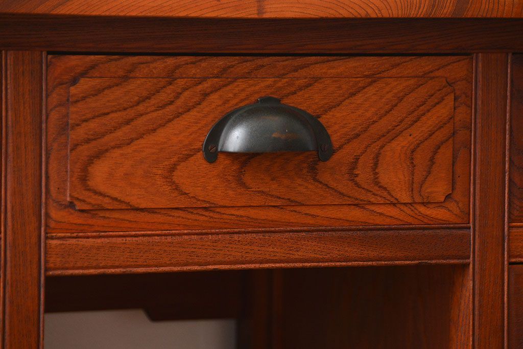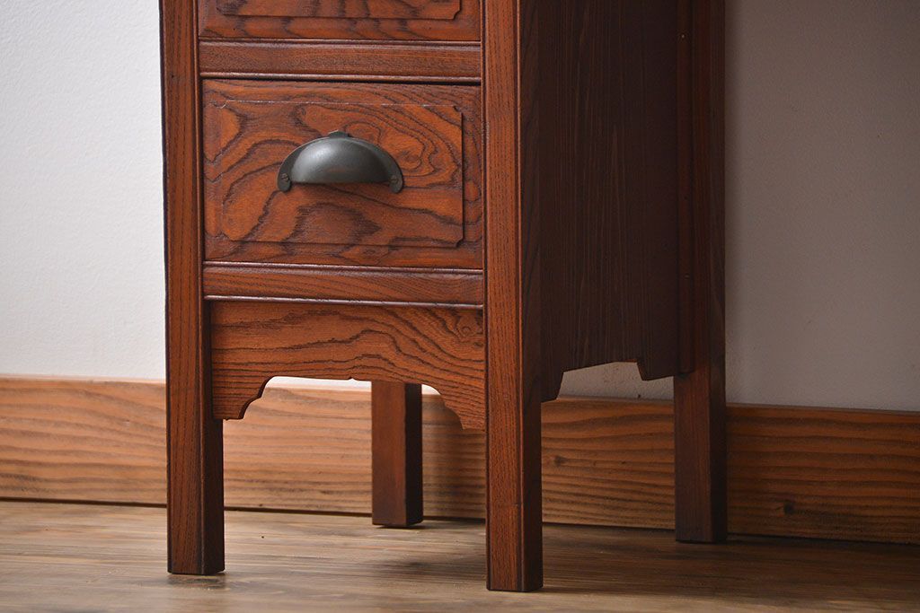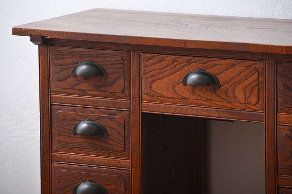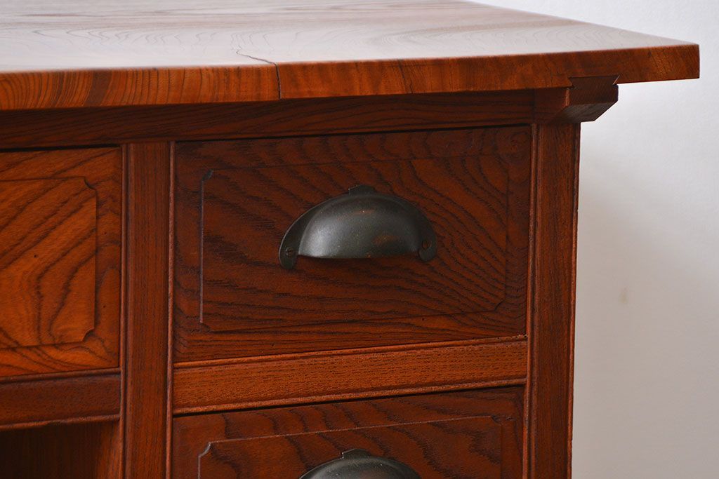 アンティーク 古い欅材の薄型両袖机(サイドテーブル)です。