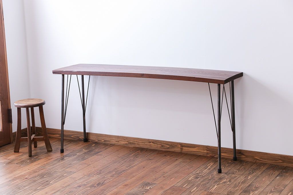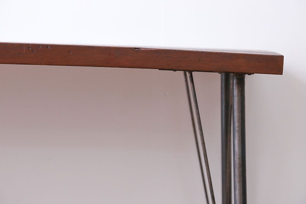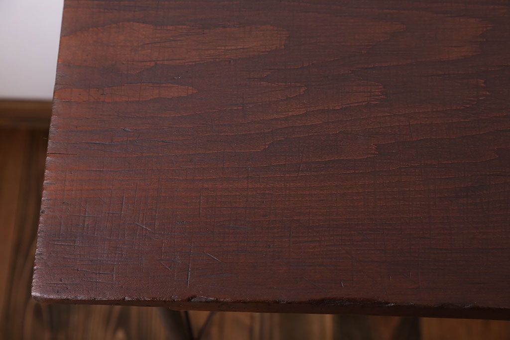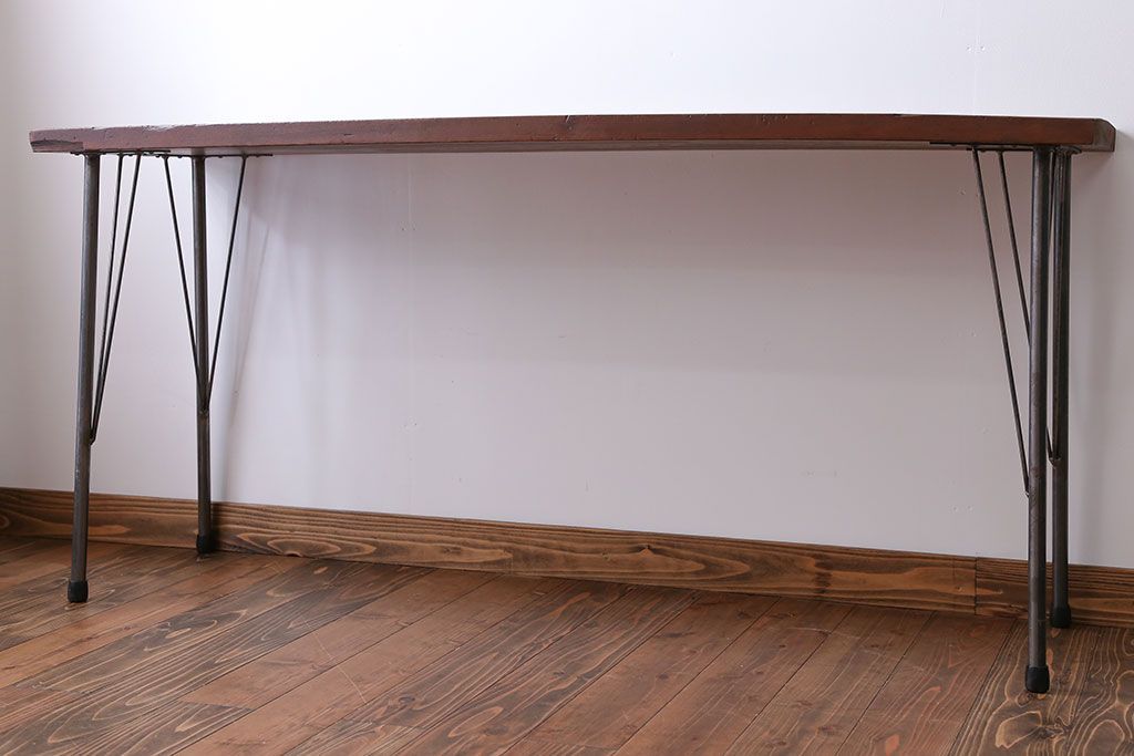 アンティーク家具 アンティーク 天板一枚板 鉄脚横長テーブル(作業台)