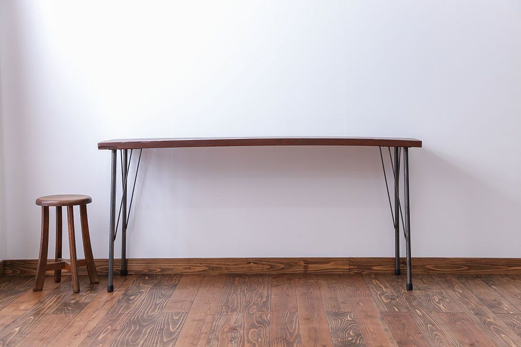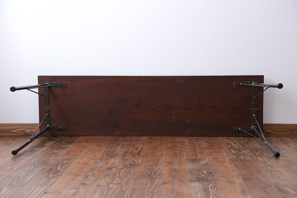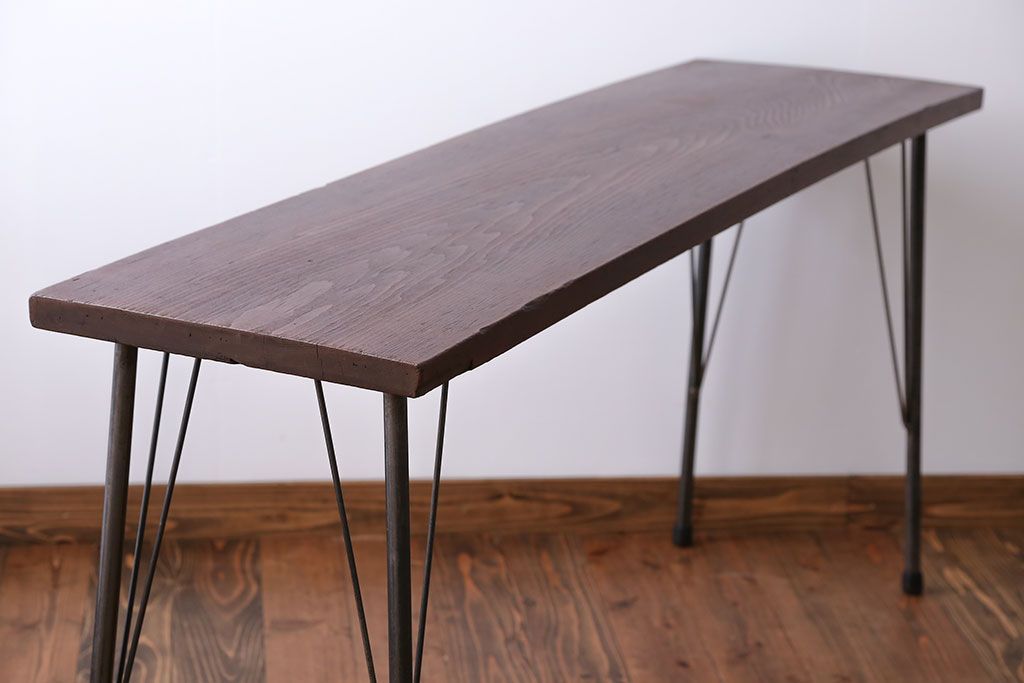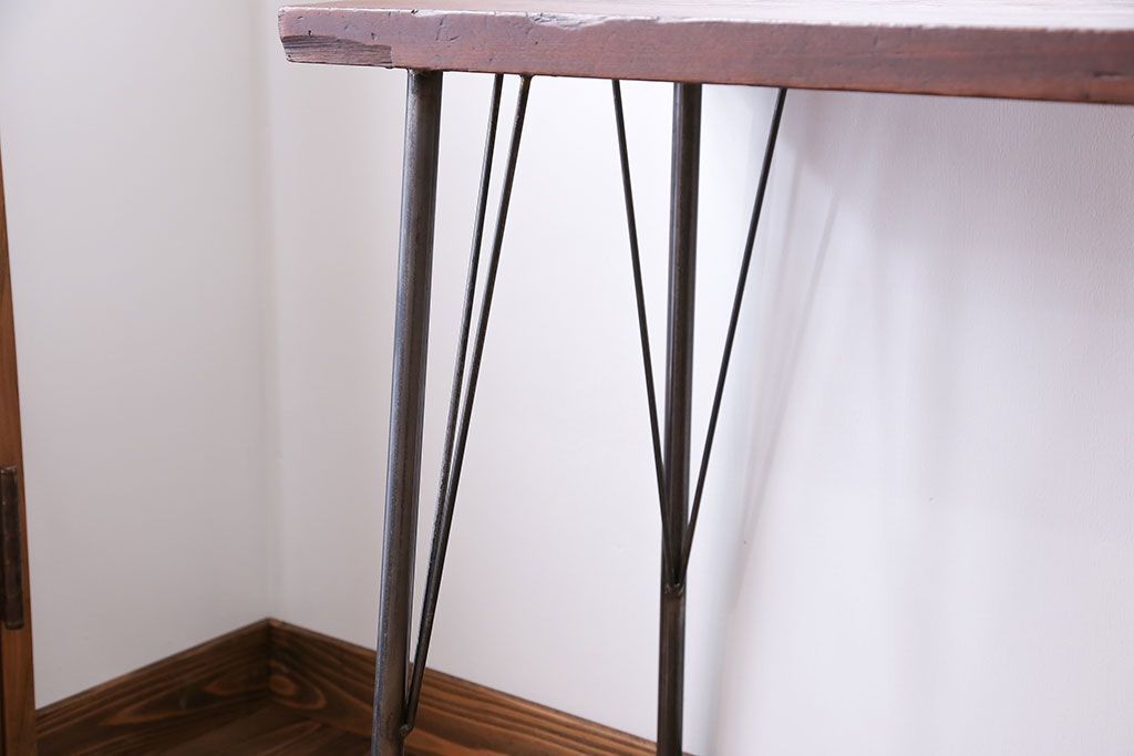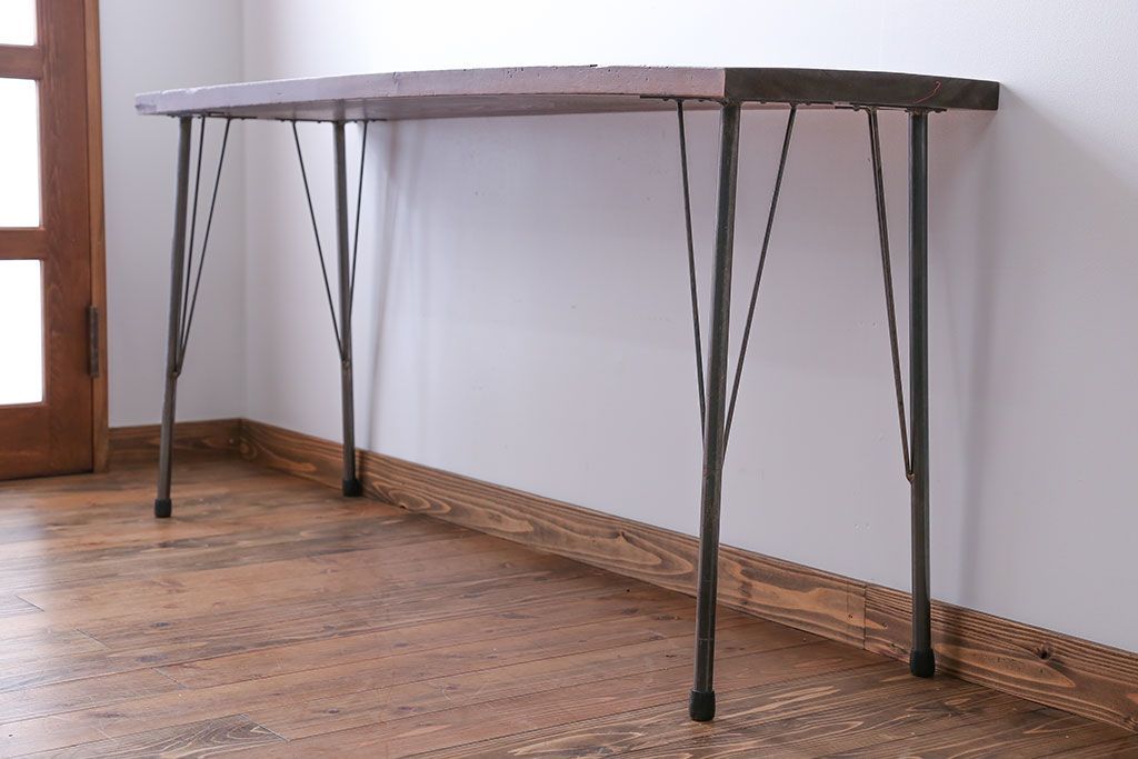 アンティーク家具 アンティーク 天板一枚板 鉄脚横長テーブル(作業台)