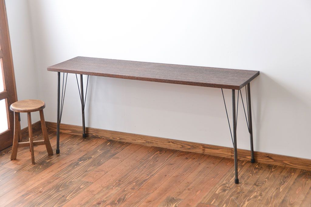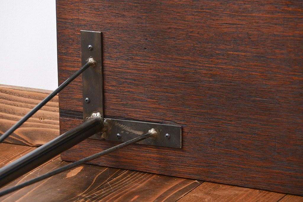 アンティーク家具 アンティーク 天板一枚板!古材を使った鉄脚テーブル(1)(作業台)