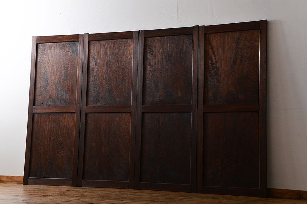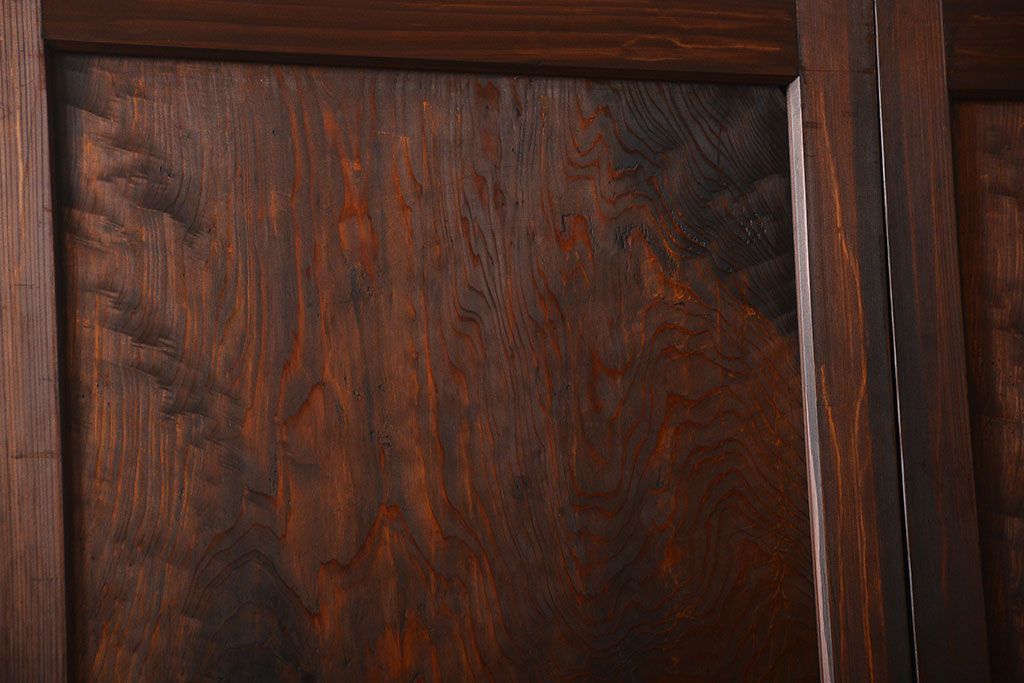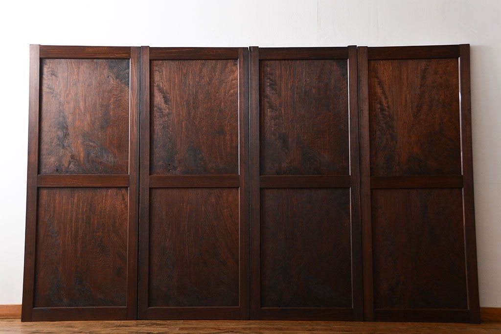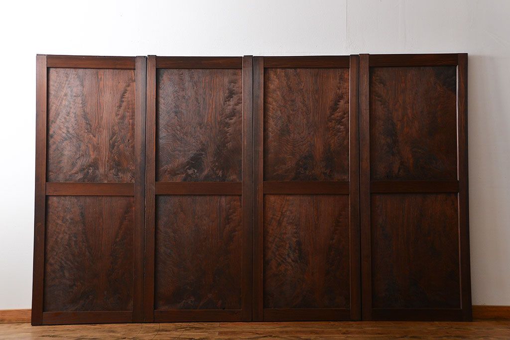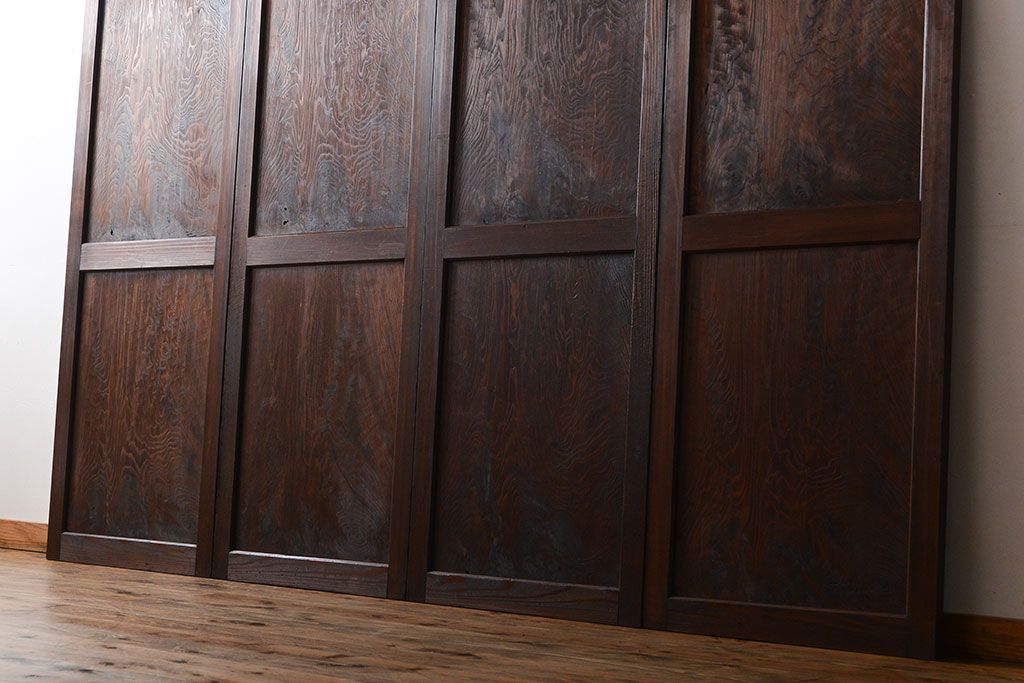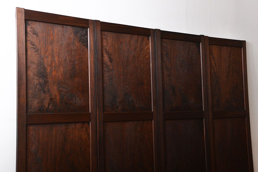 アンティーク 太い框組 杢目の良い杉材一枚板 幅せま帯戸 4枚セット( 板戸、引き戸)