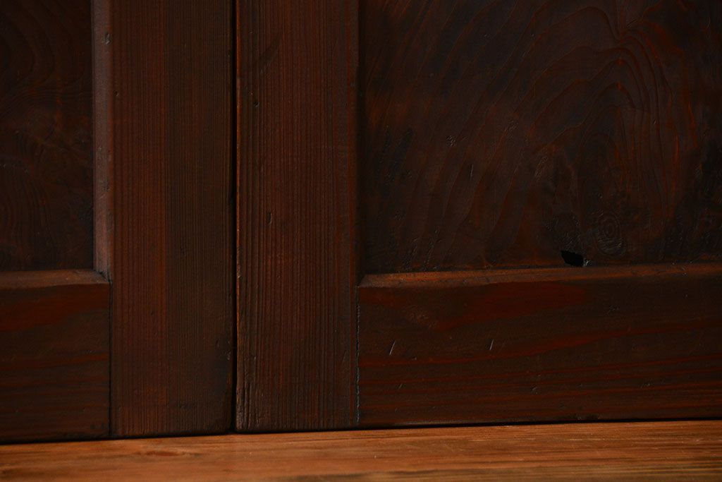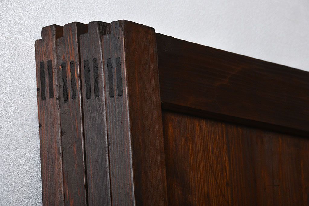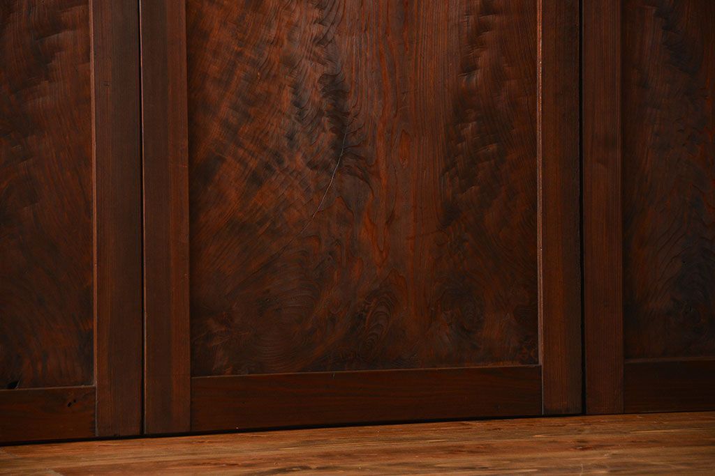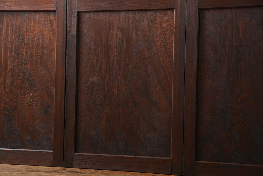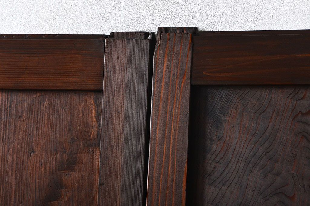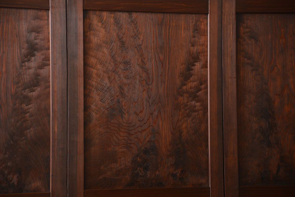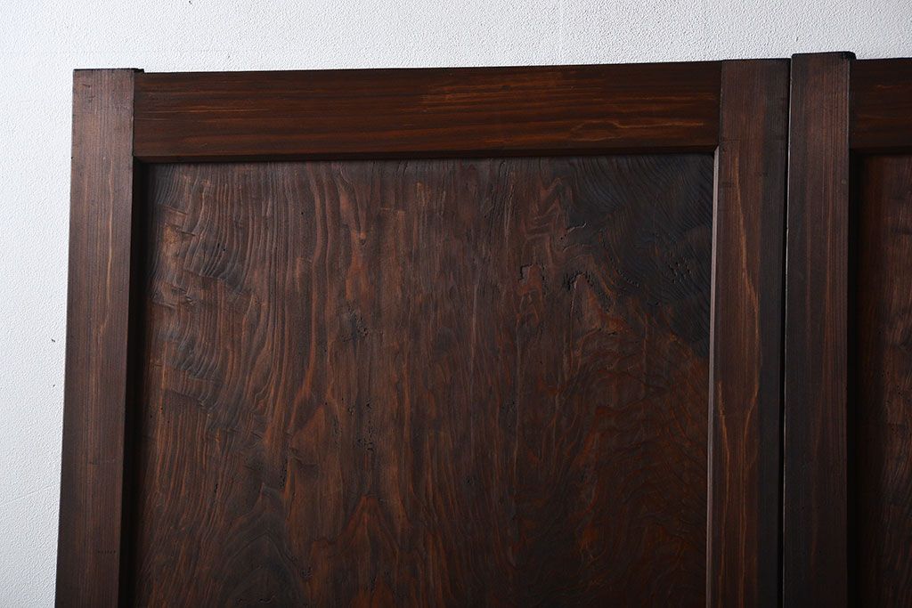 アンティーク 太い框組 杢目の良い杉材一枚板 幅せま帯戸 4枚セット( 板戸、引き戸)