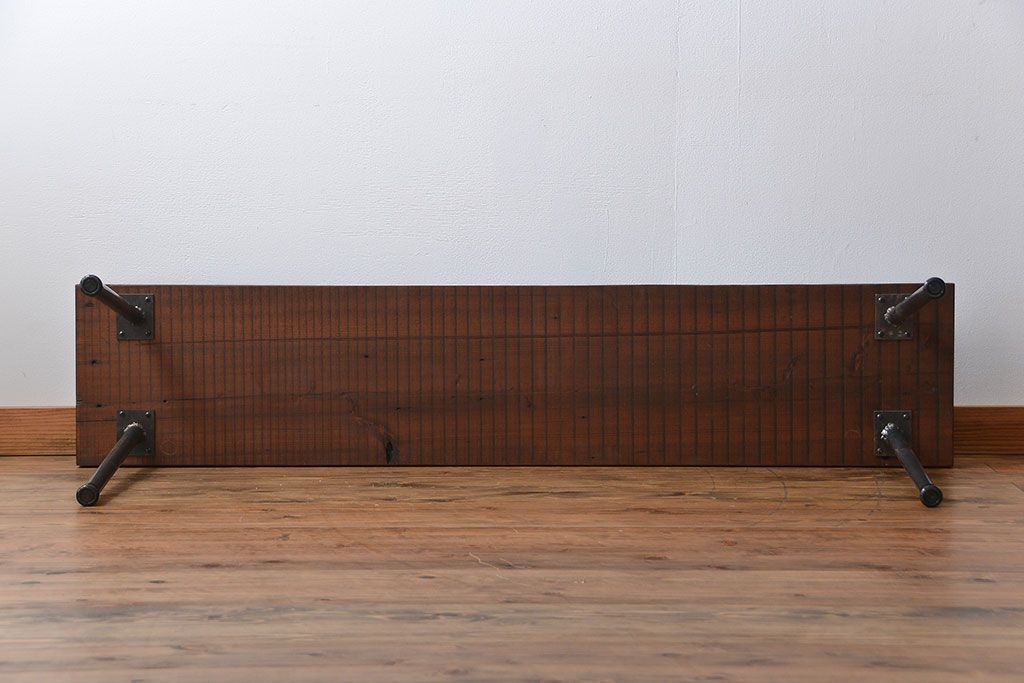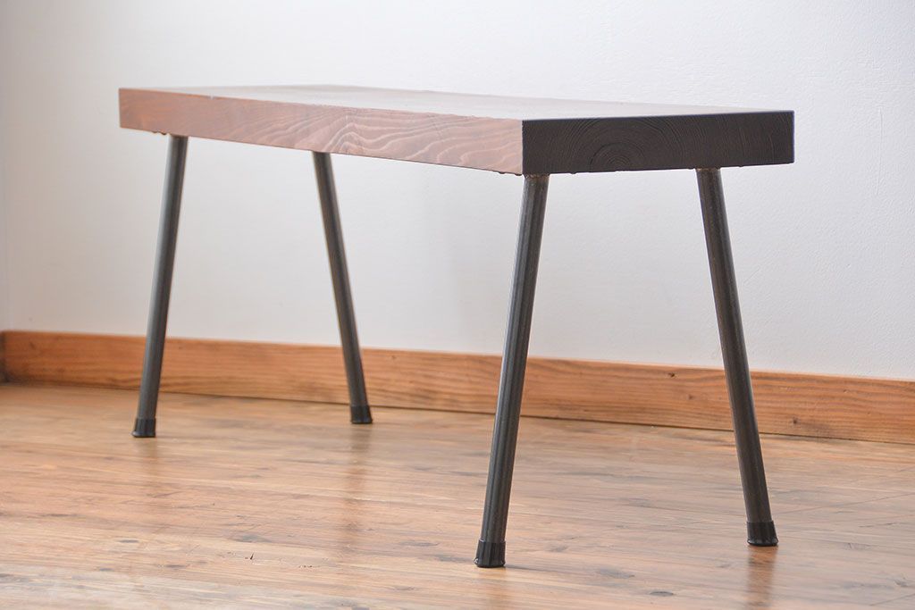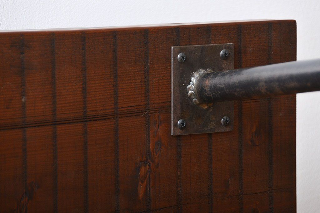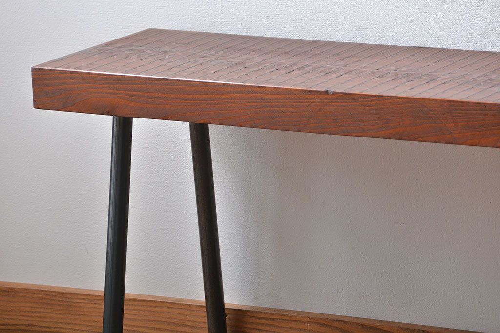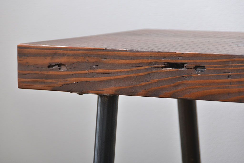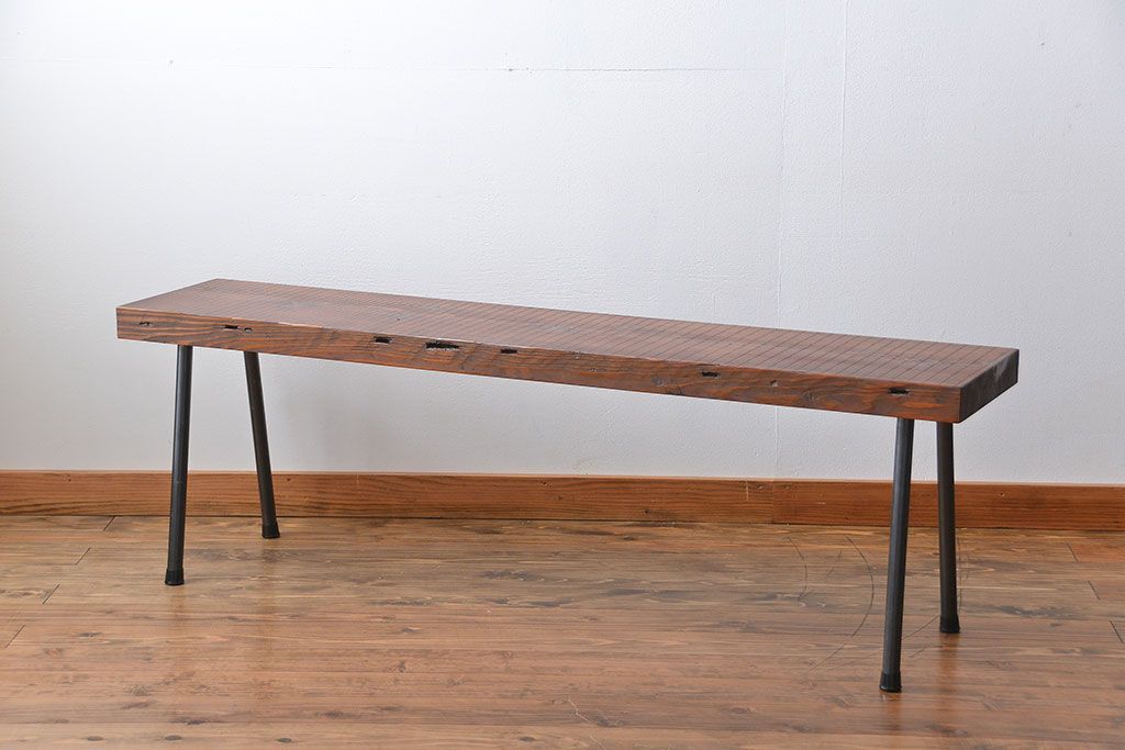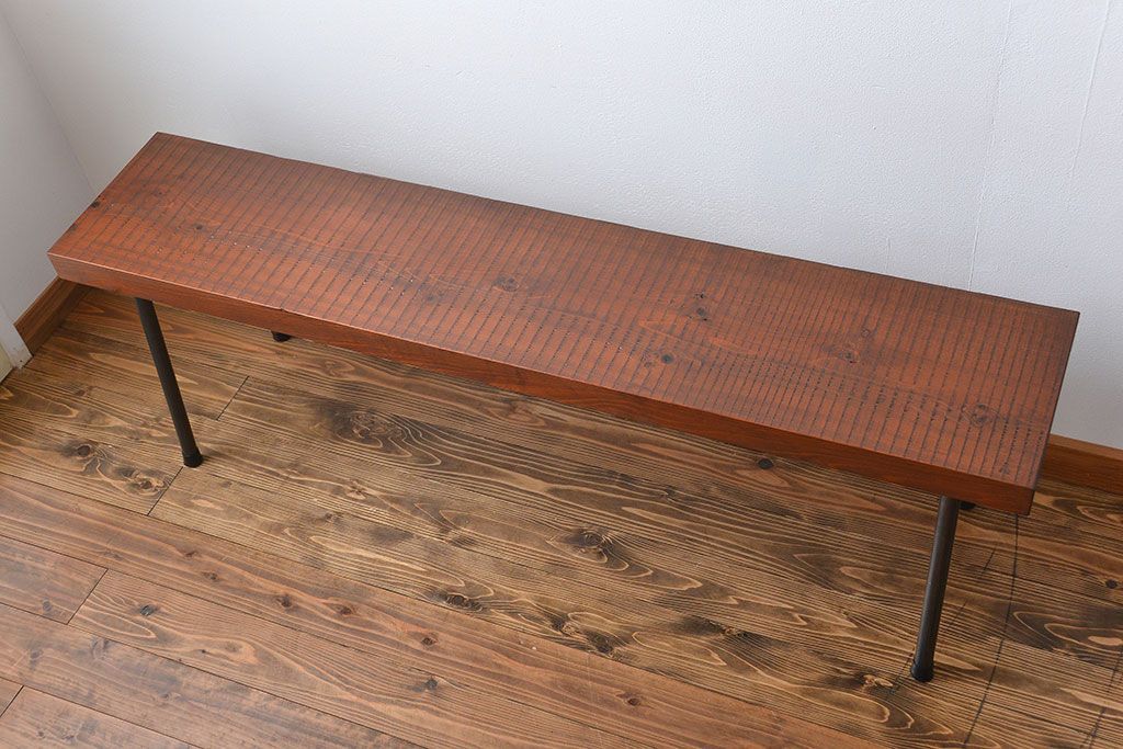 レトロ家具 昭和レトロ 天板一枚板 古材を使った鉄脚ベンチ(3)