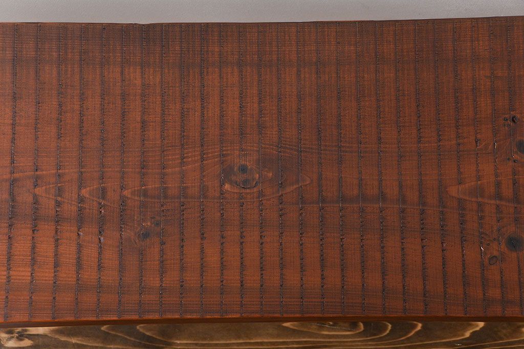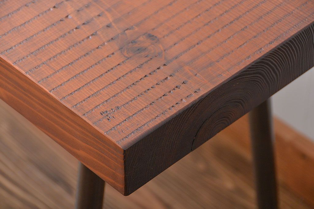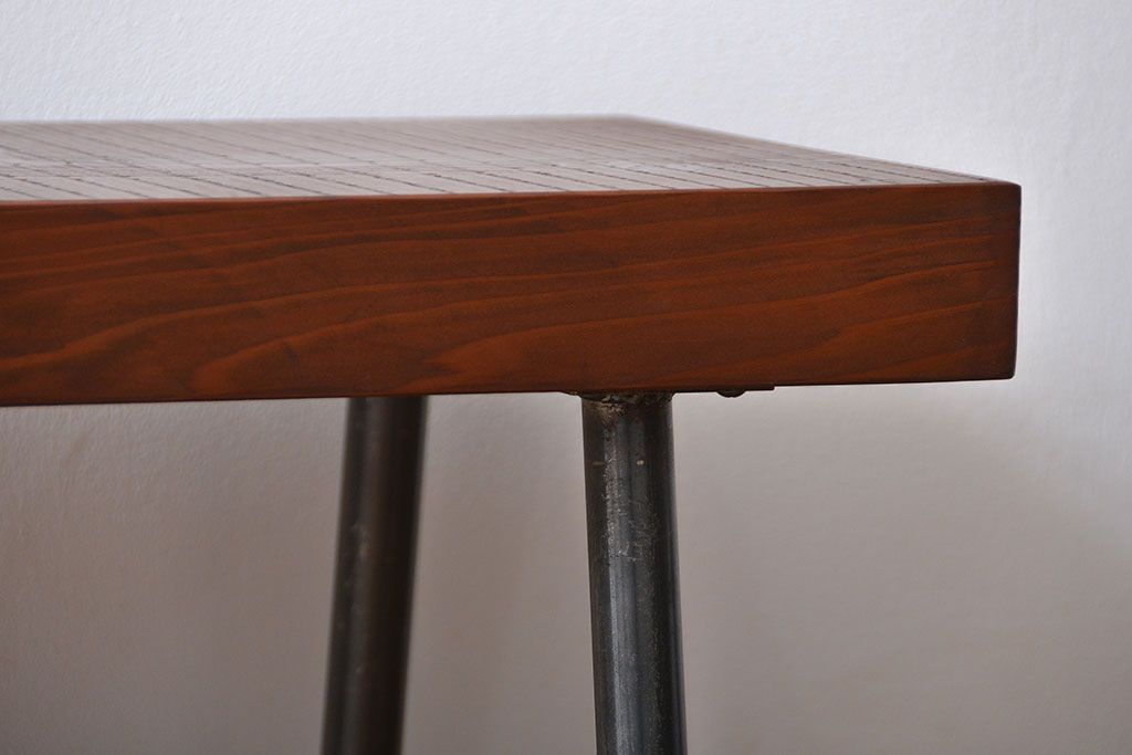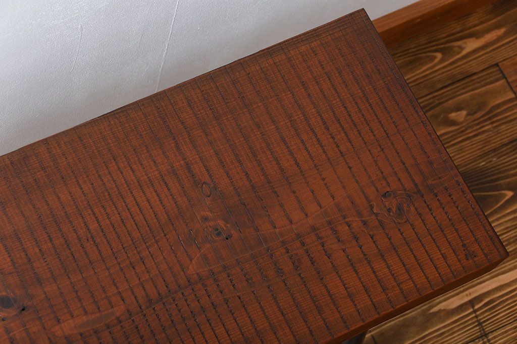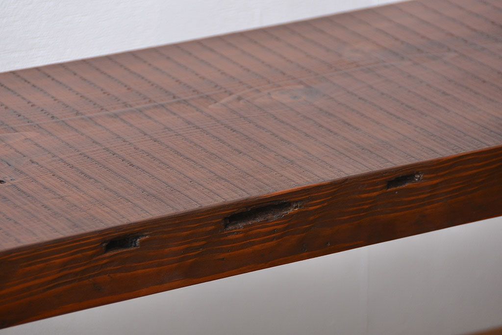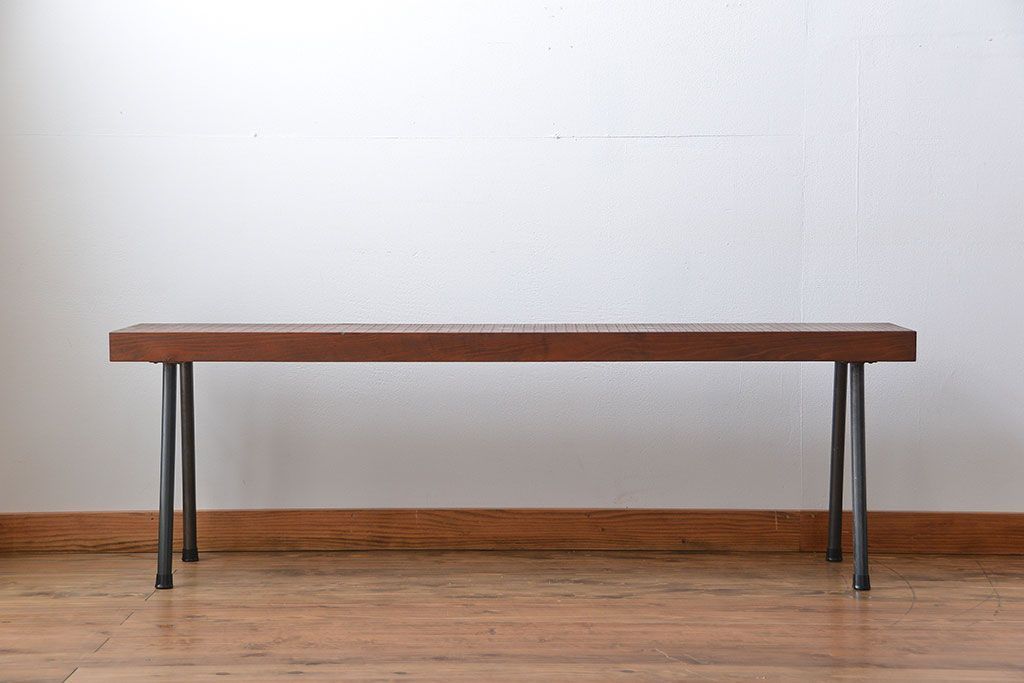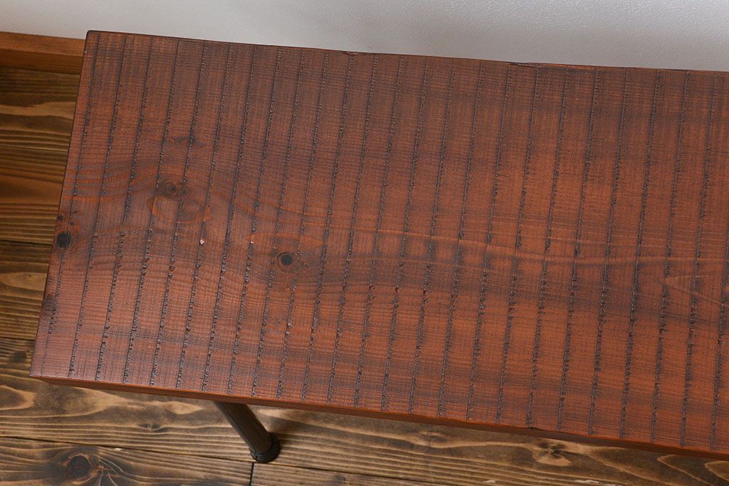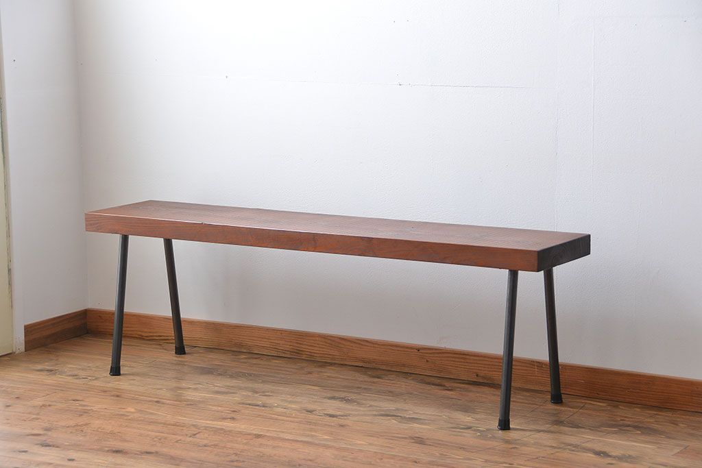 レトロ家具 昭和レトロ 天板一枚板 古材を使った鉄脚ベンチ(3)