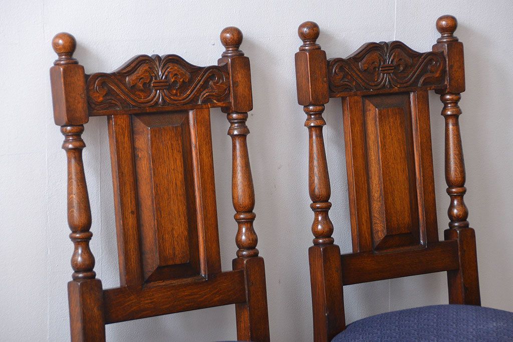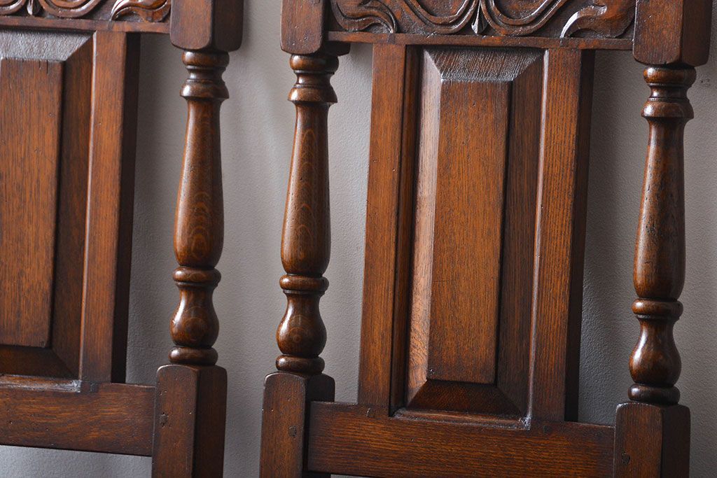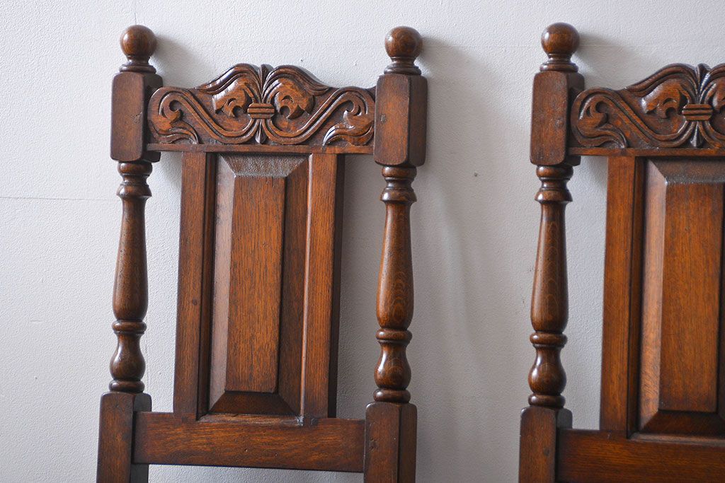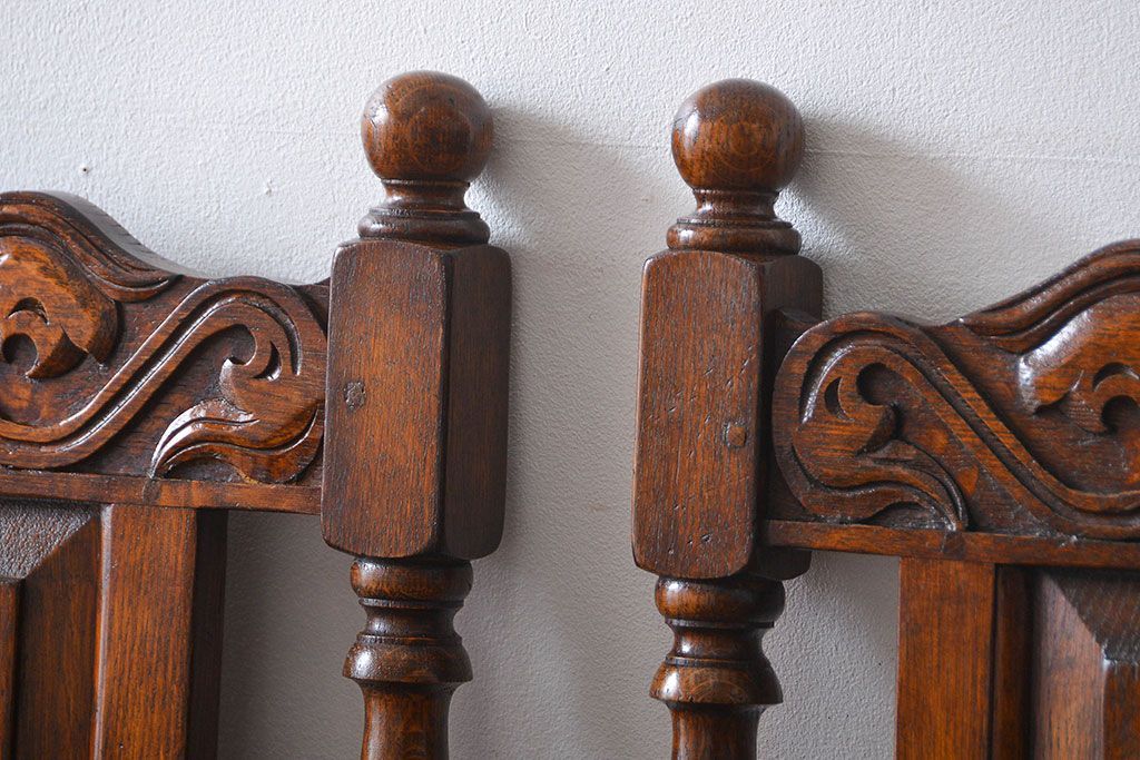 アンティーク家具 イギリスアンティーク 豪華絢爛!オーク材 彫刻の美しいダイニングチェア2脚セット(3)