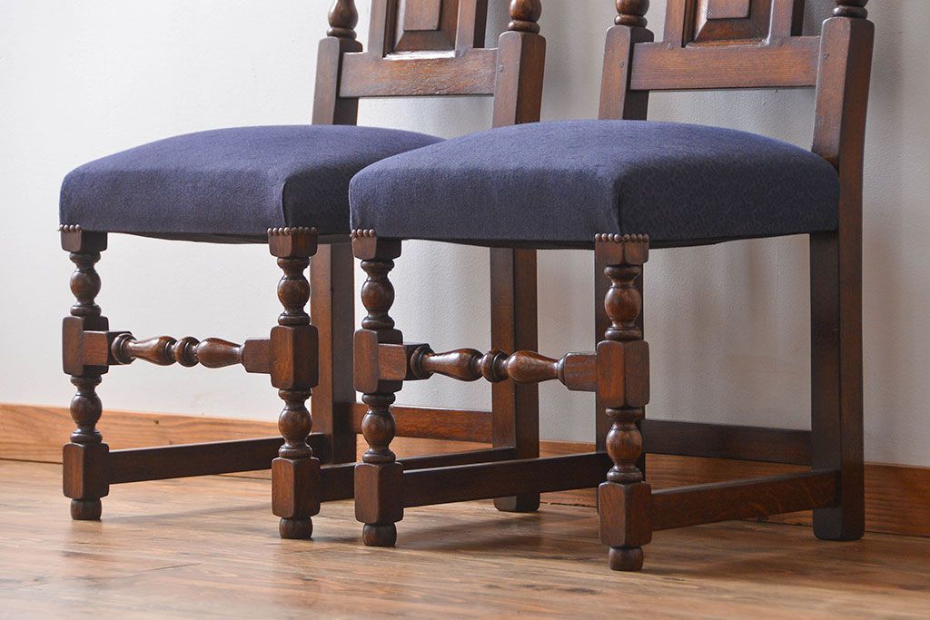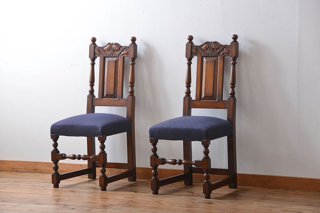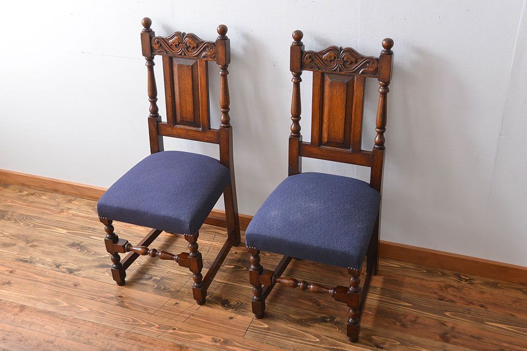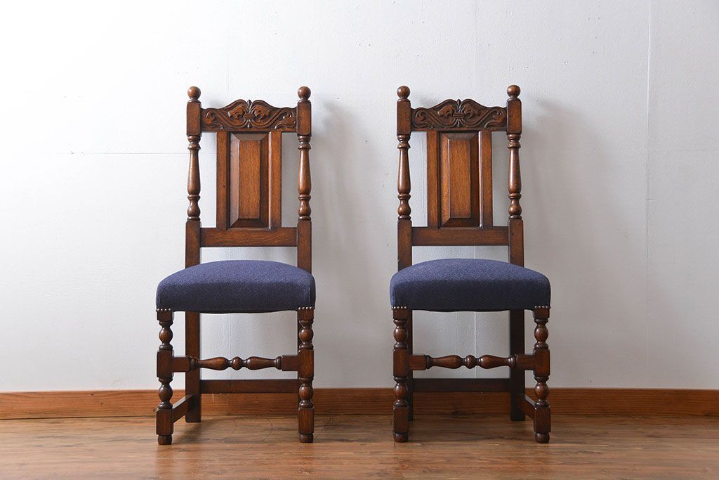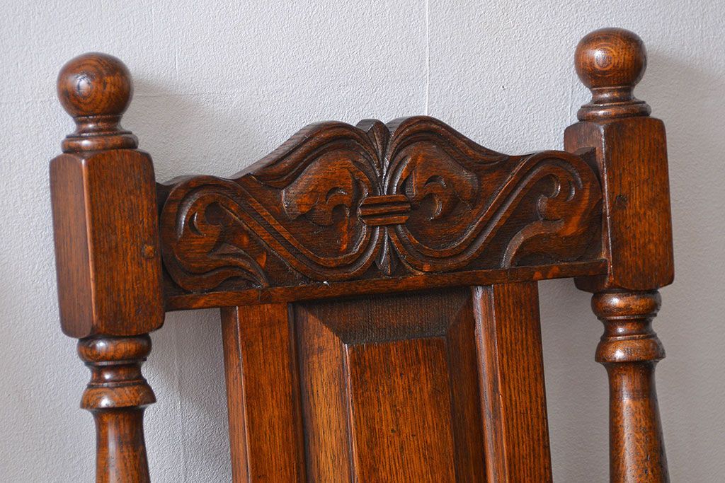 アンティーク家具 イギリスアンティーク 豪華絢爛!オーク材 彫刻の美しいダイニングチェア2脚セット(3)
