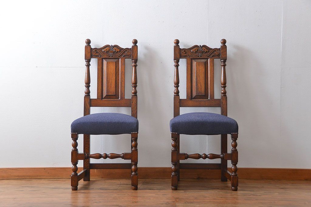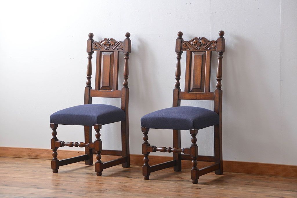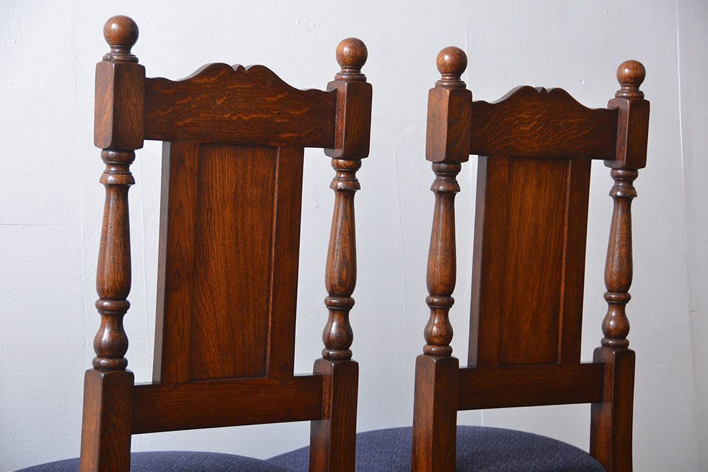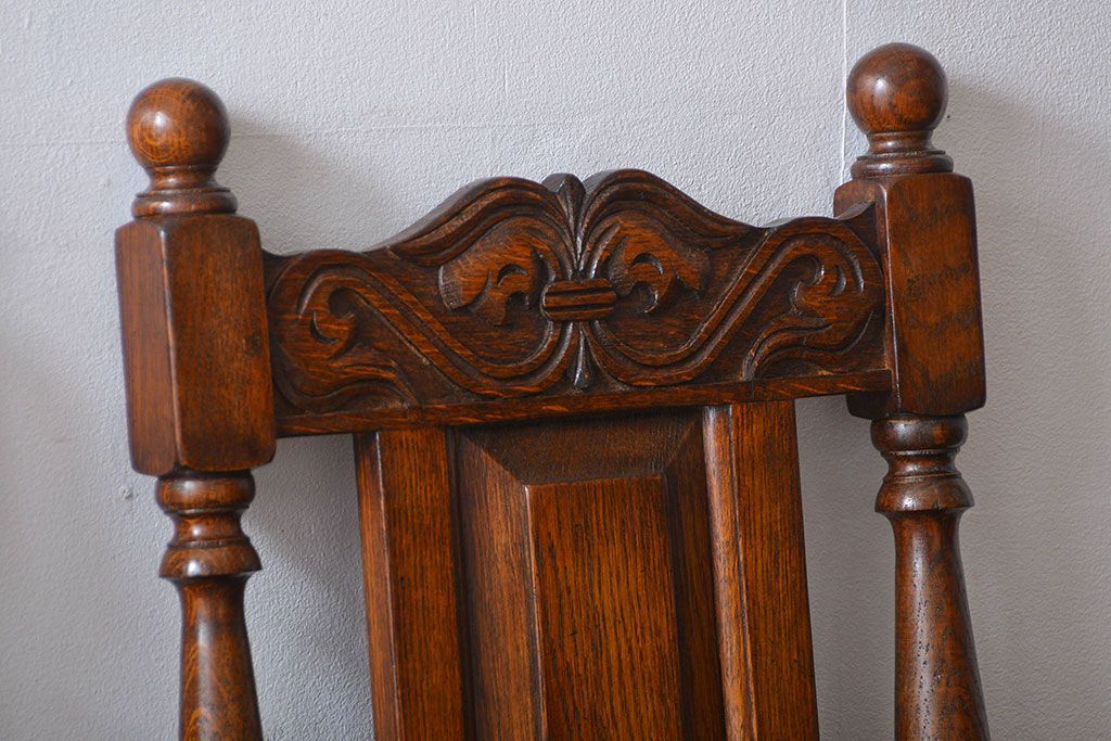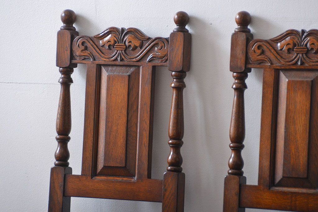 アンティーク家具 イギリスアンティーク 豪華絢爛!オーク材 彫刻の美しいダイニングチェア2脚セット(4)