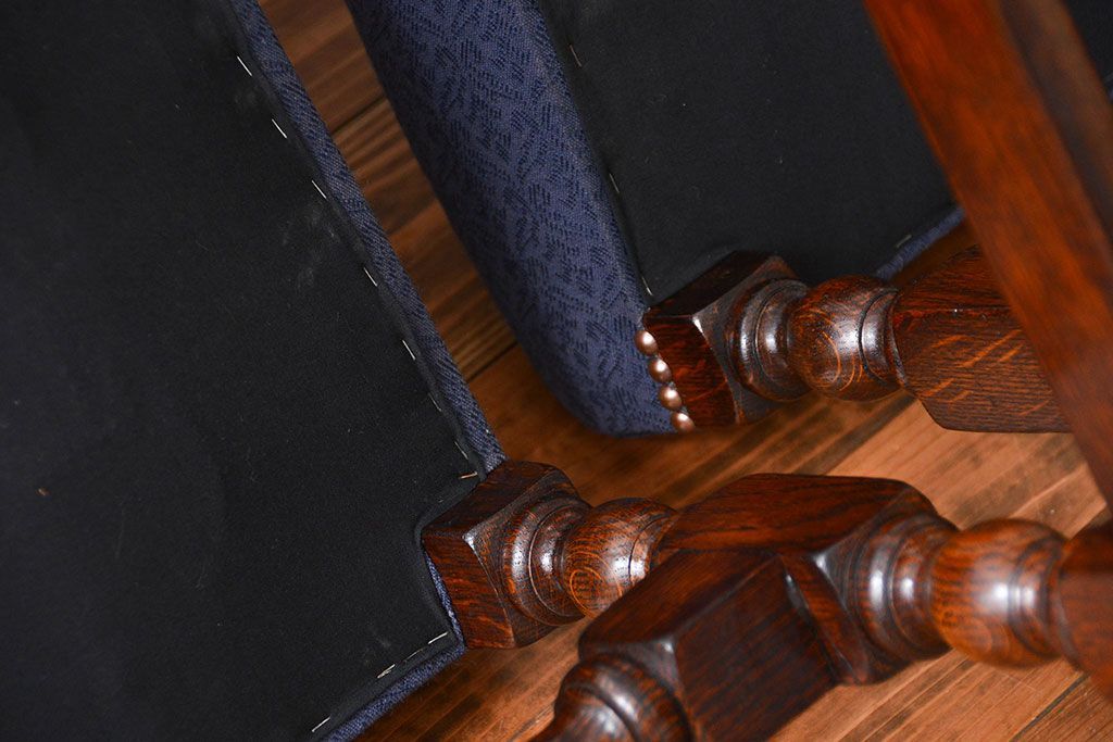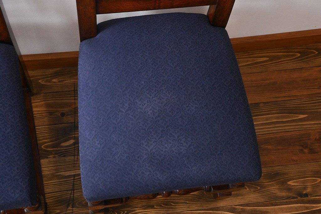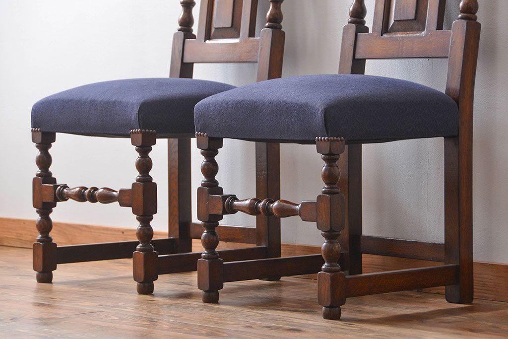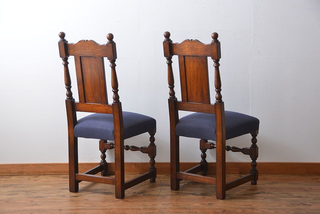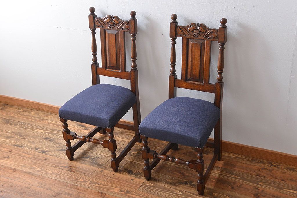 アンティーク家具 イギリスアンティーク 豪華絢爛!オーク材 彫刻の美しいダイニングチェア2脚セット(4)