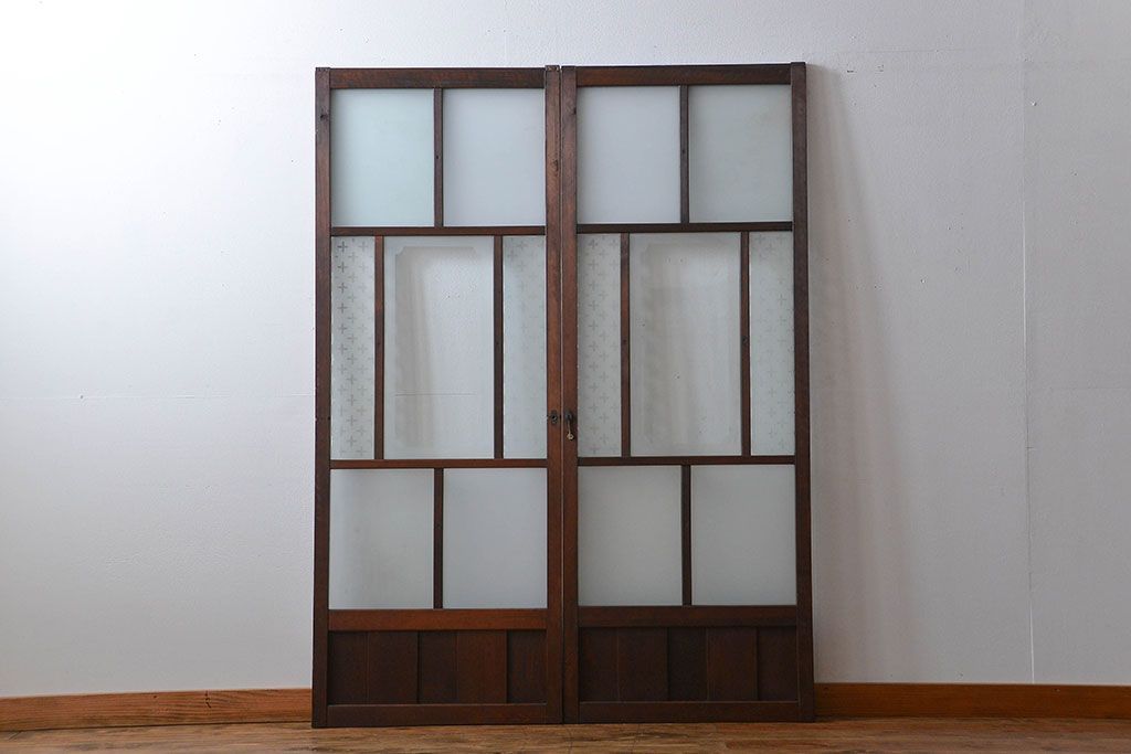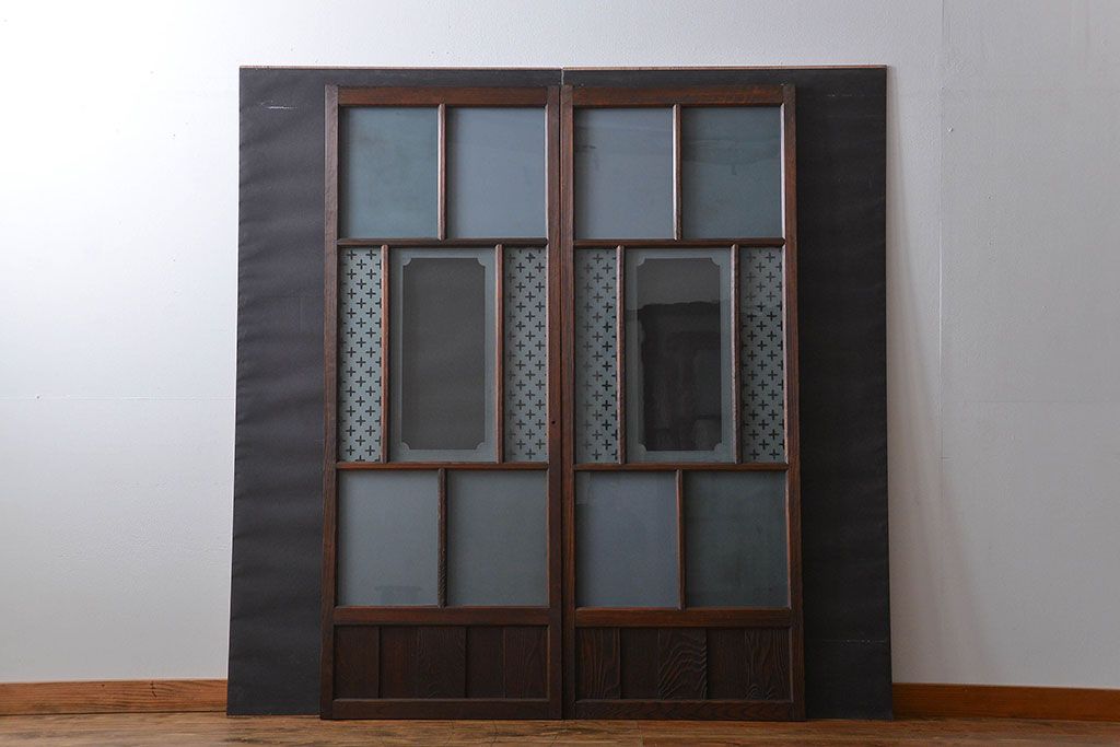 すりガラスと模様ガラス入りガラス戸2枚です。