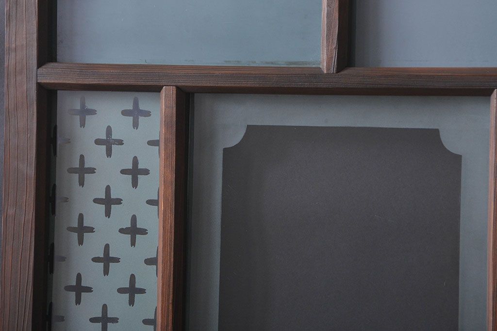 古い木の味のある質感とすりガラスの優しい質感とが相まって、