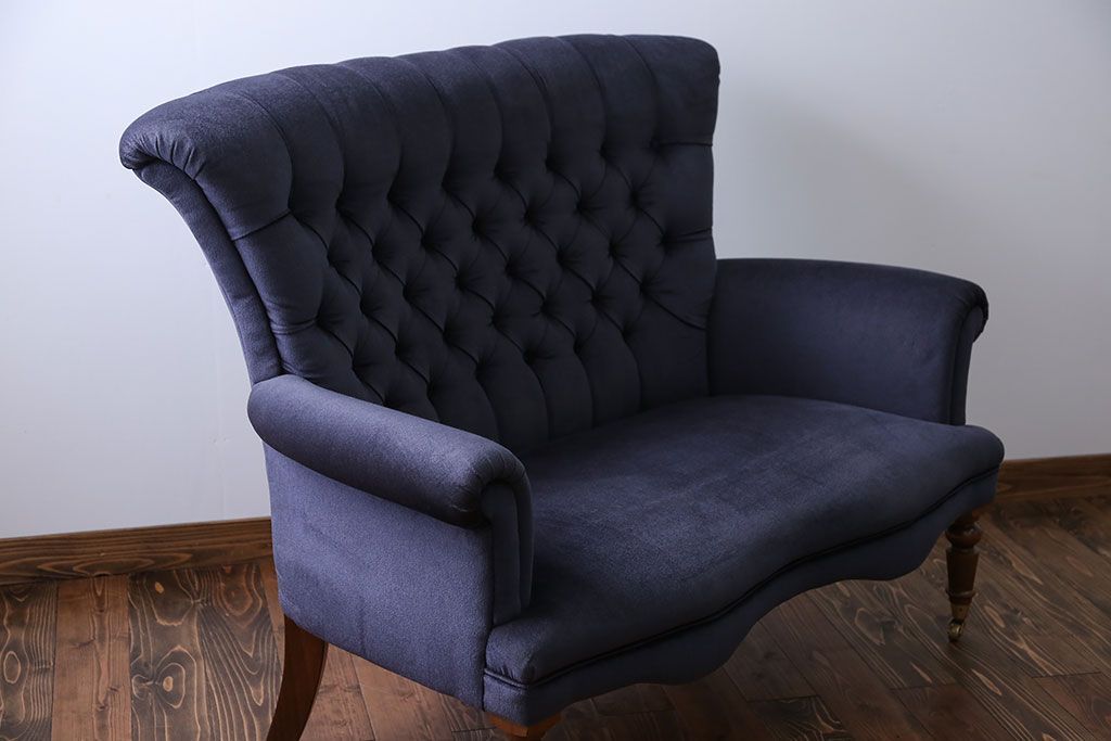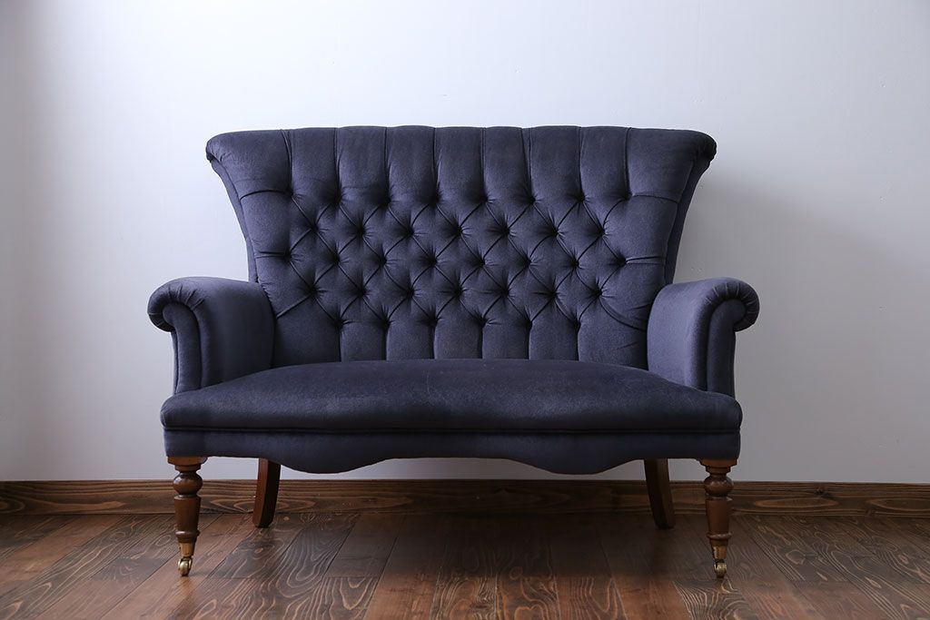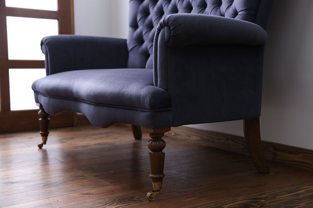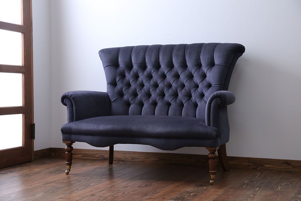 アンティーク家具 イギリスアンティーク 上質!小振りなウィングバック2Pラブソファ(ウイングバックソファ)